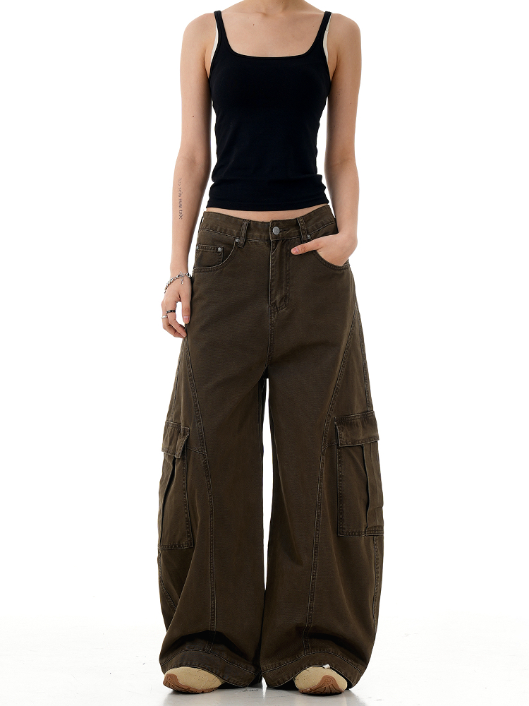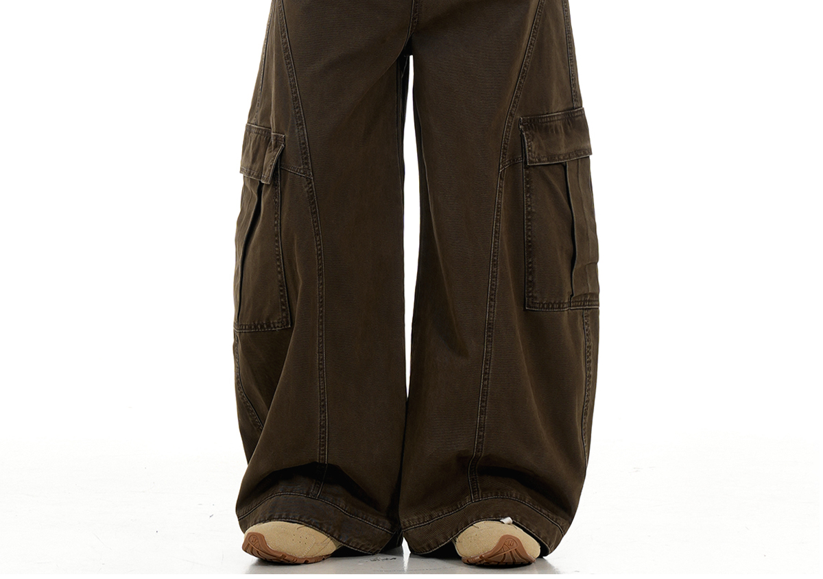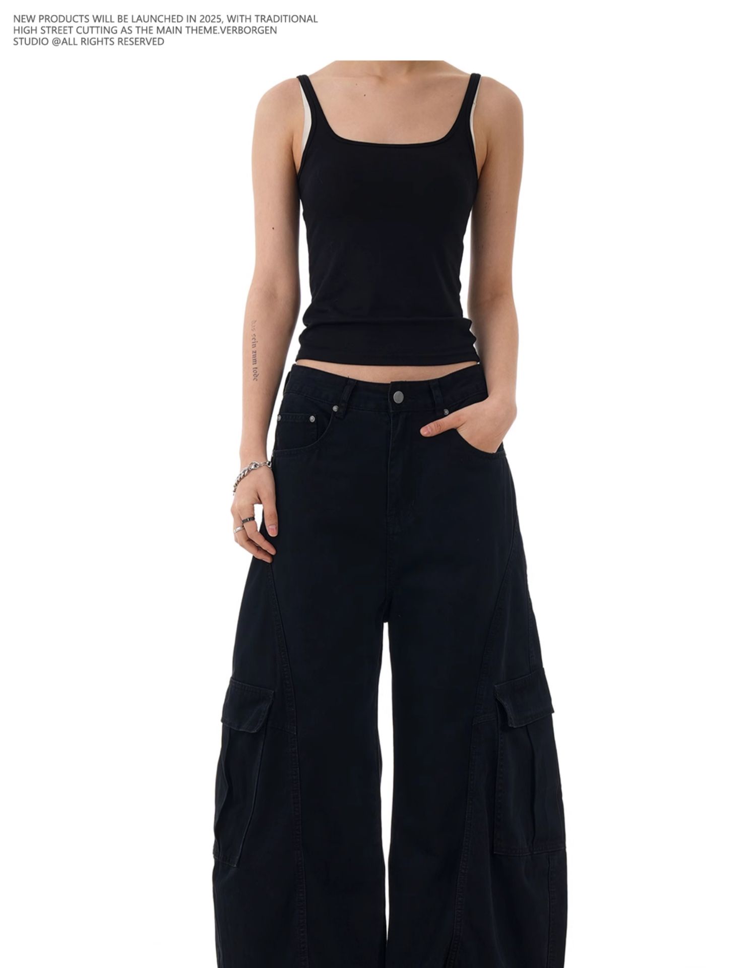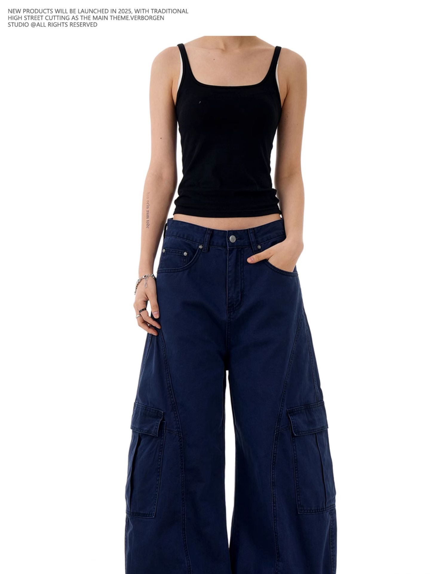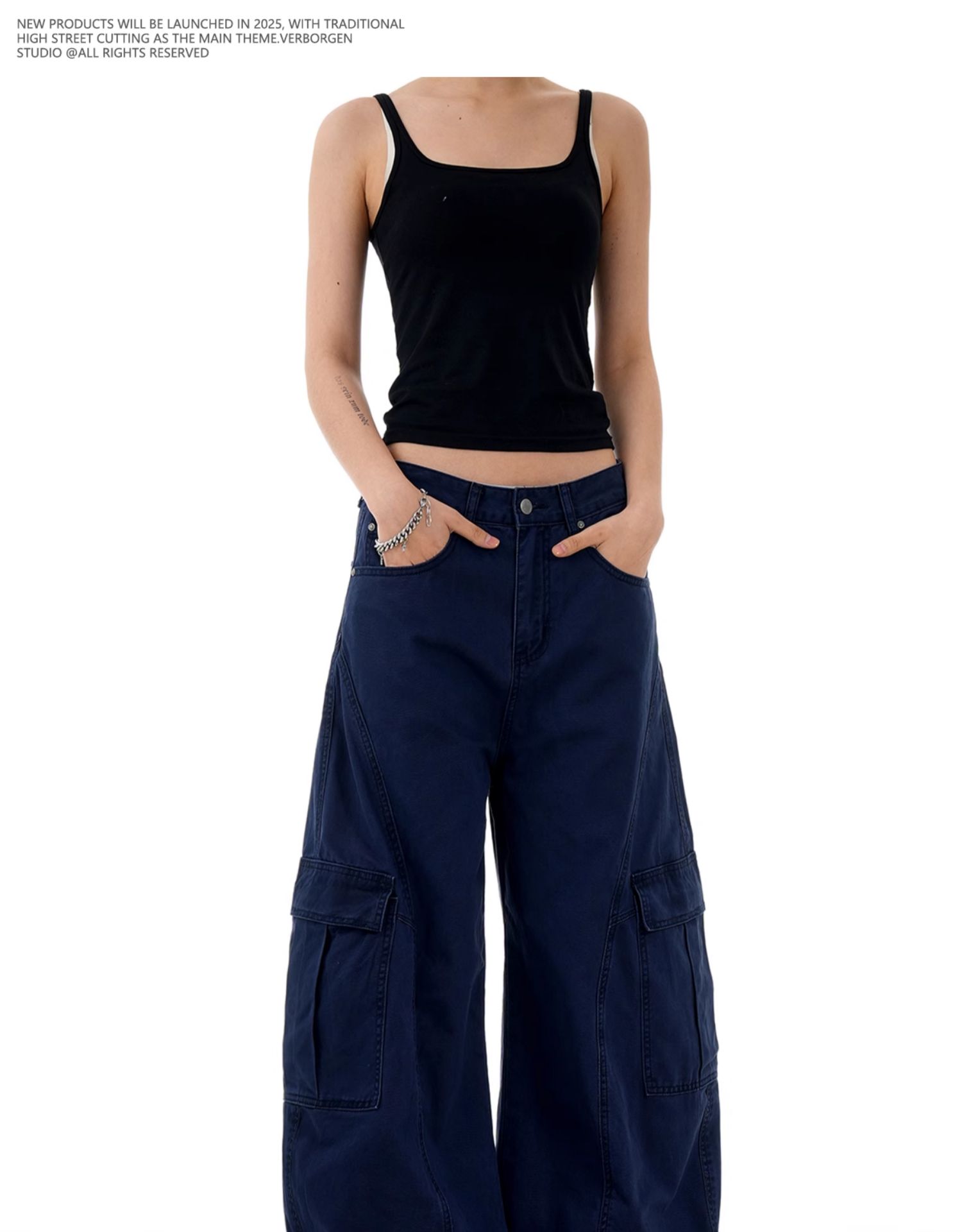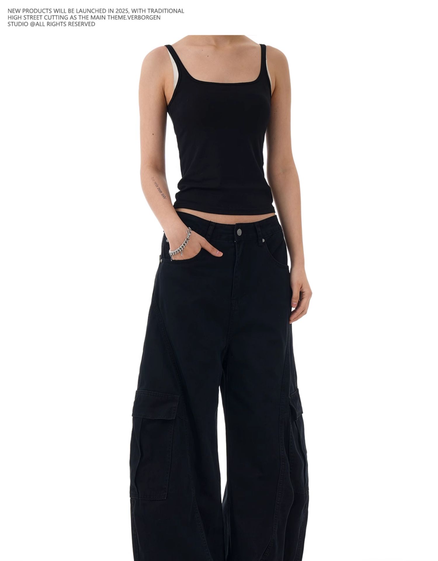 热卖Verborgen美式复古解构绿色弯刀工装裤潮牌男女宽松阔腿baggy裤
