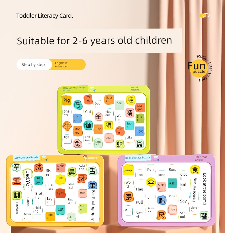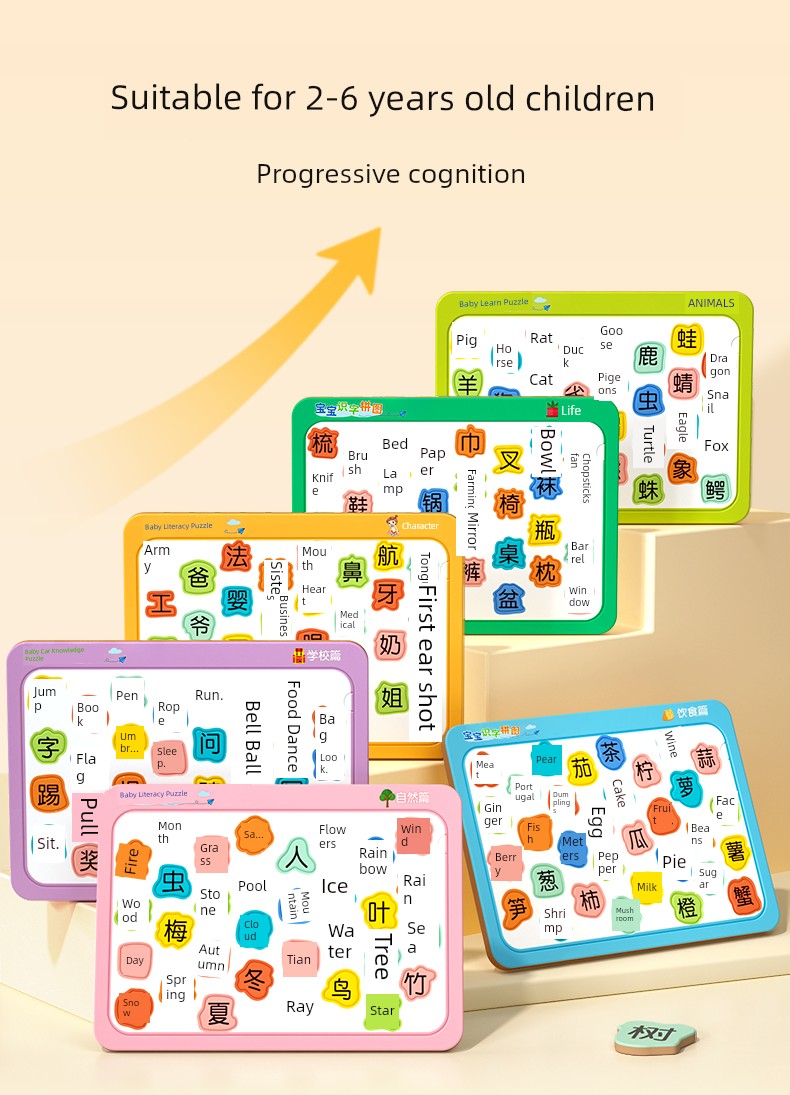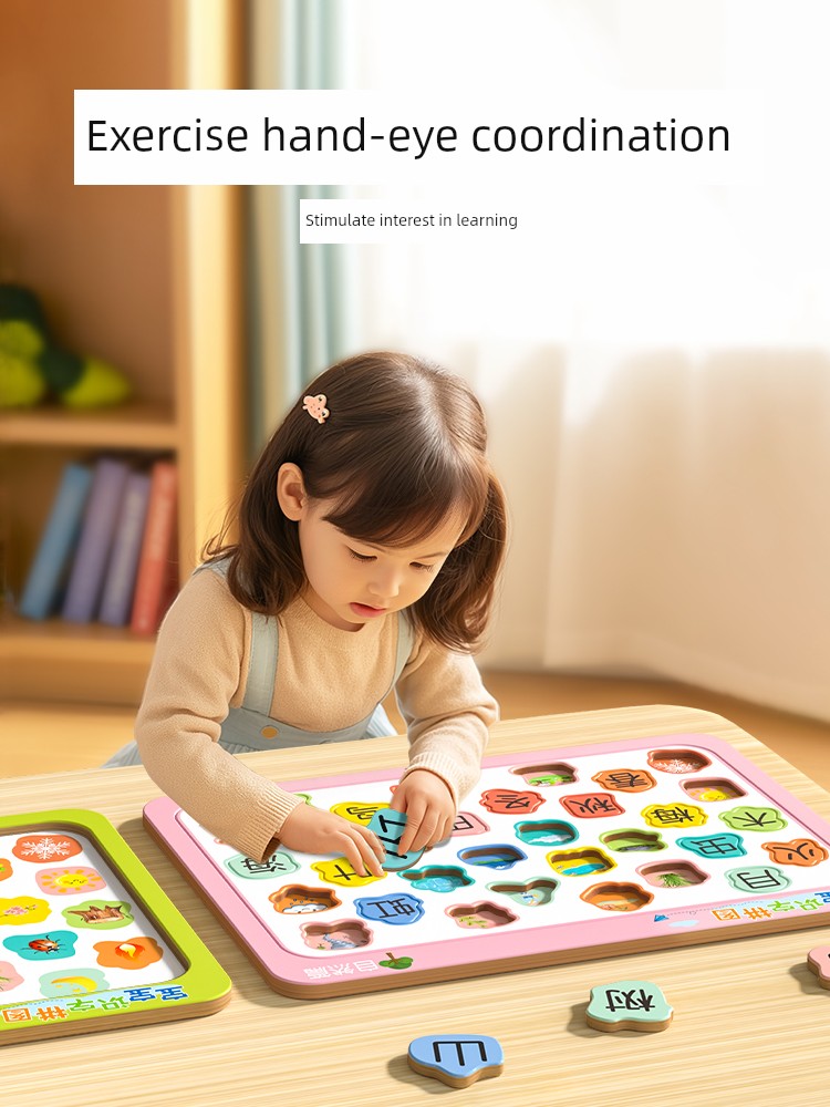 热卖宝宝识字卡片学前专注力早教拼图
