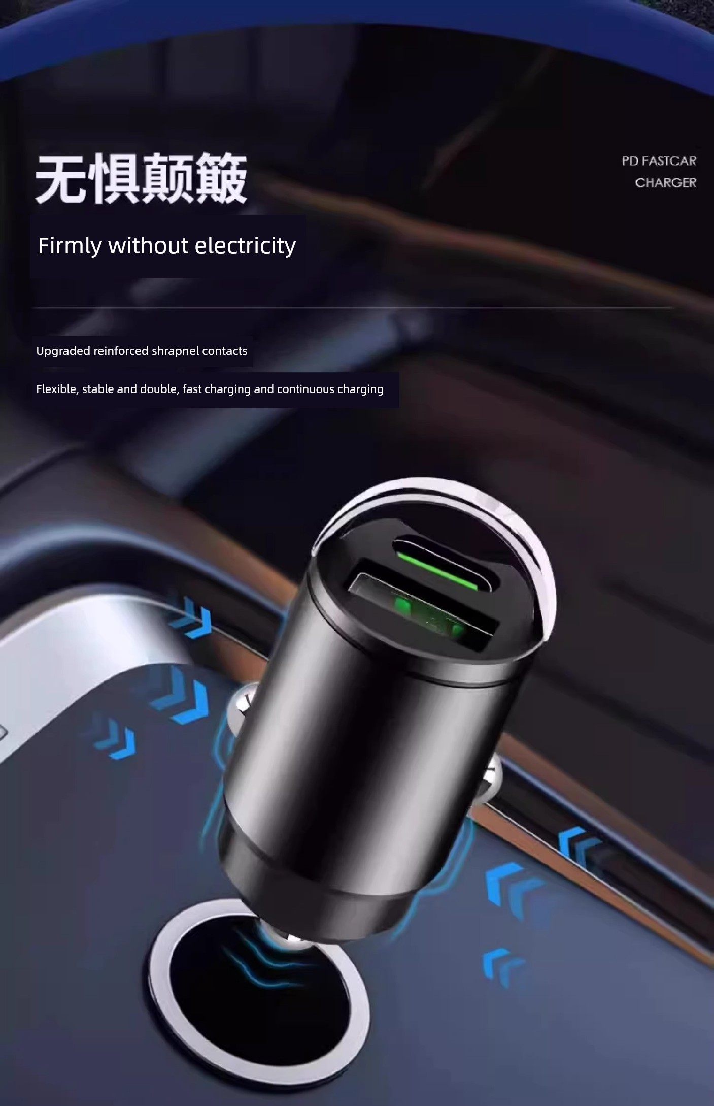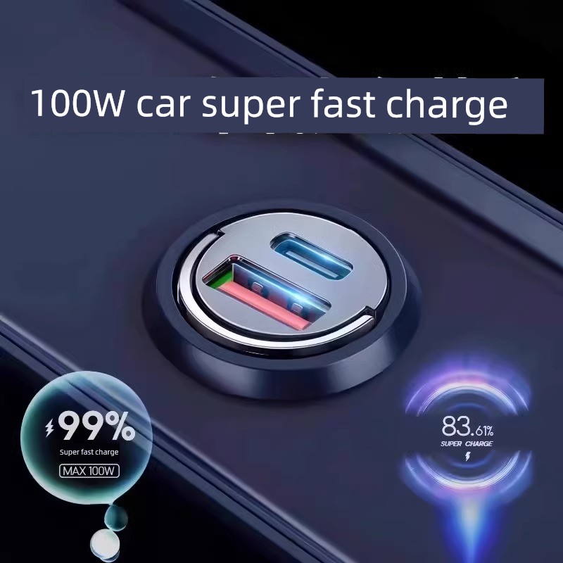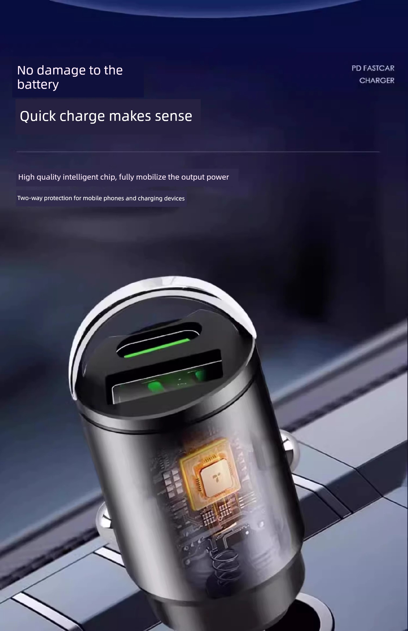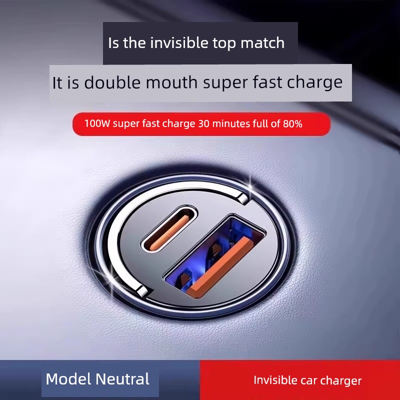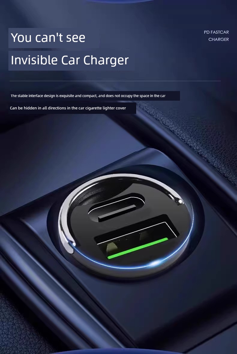 热卖隐形车充车载充电器手机超级快充苹果安卓汽车一拖二点烟器闪插头