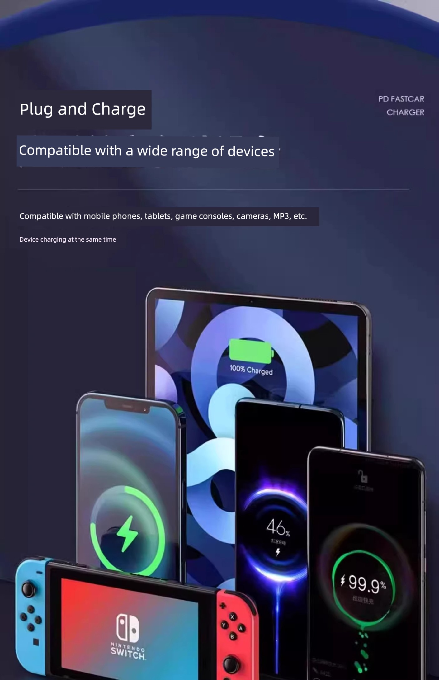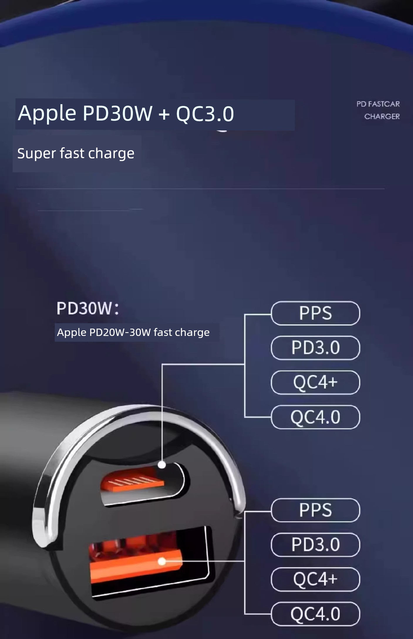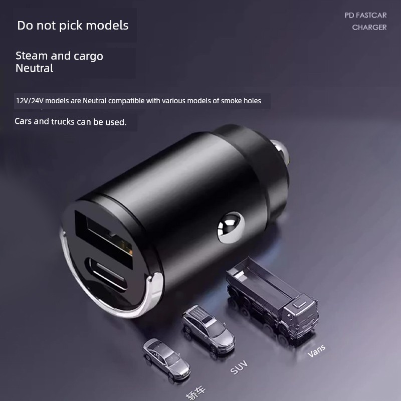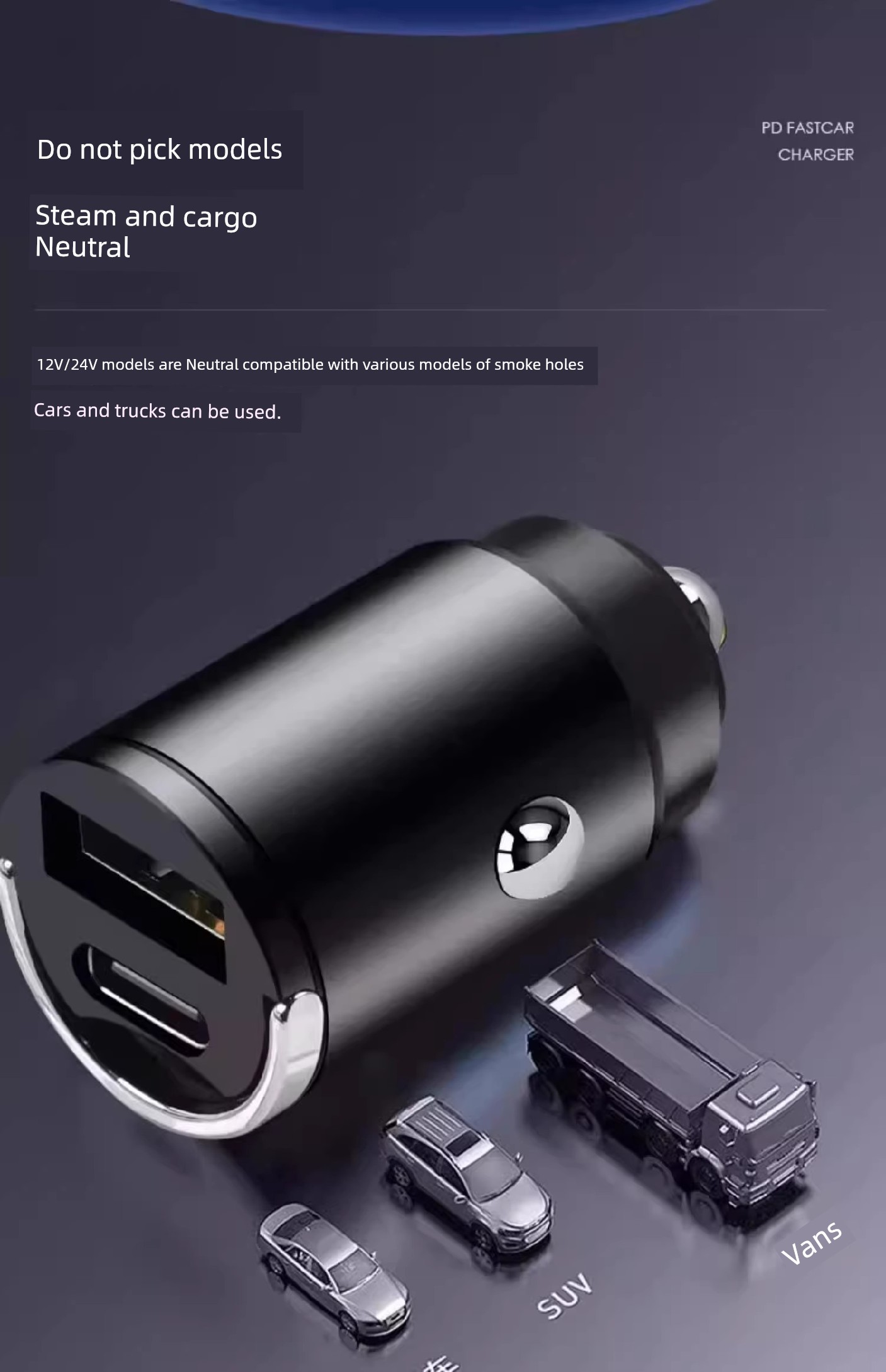 热卖隐形车充车载充电器手机超级快充苹果安卓汽车一拖二点烟器闪插头