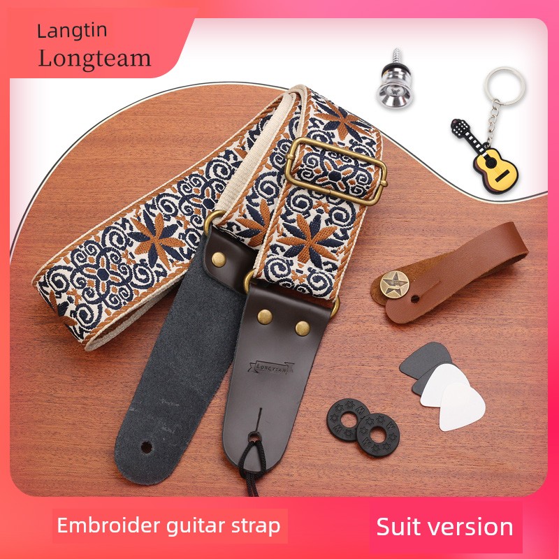 热卖民谣木吉他背带刺绣电吉他贝斯尾钉背带个性波西米亚吉他加宽肩带