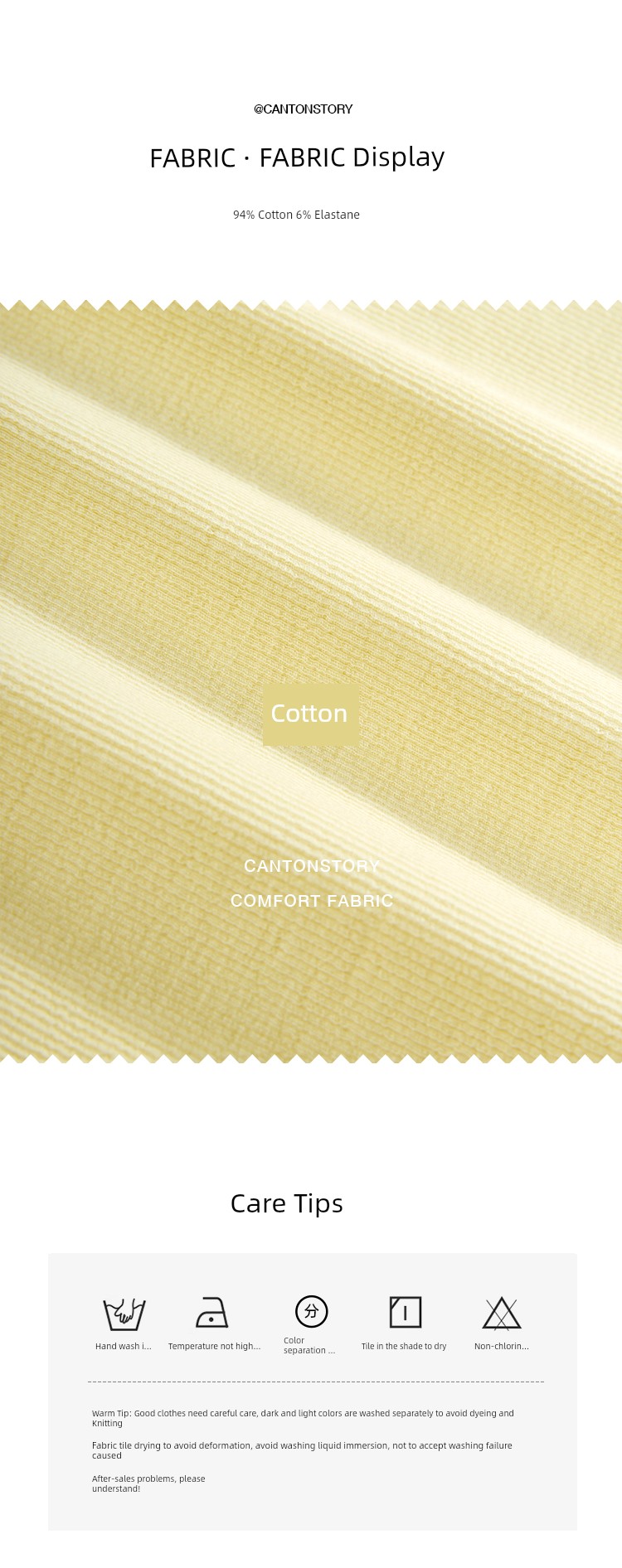 材质成分: 棉94% 聚氨酯弹性纤维(氨纶)6%