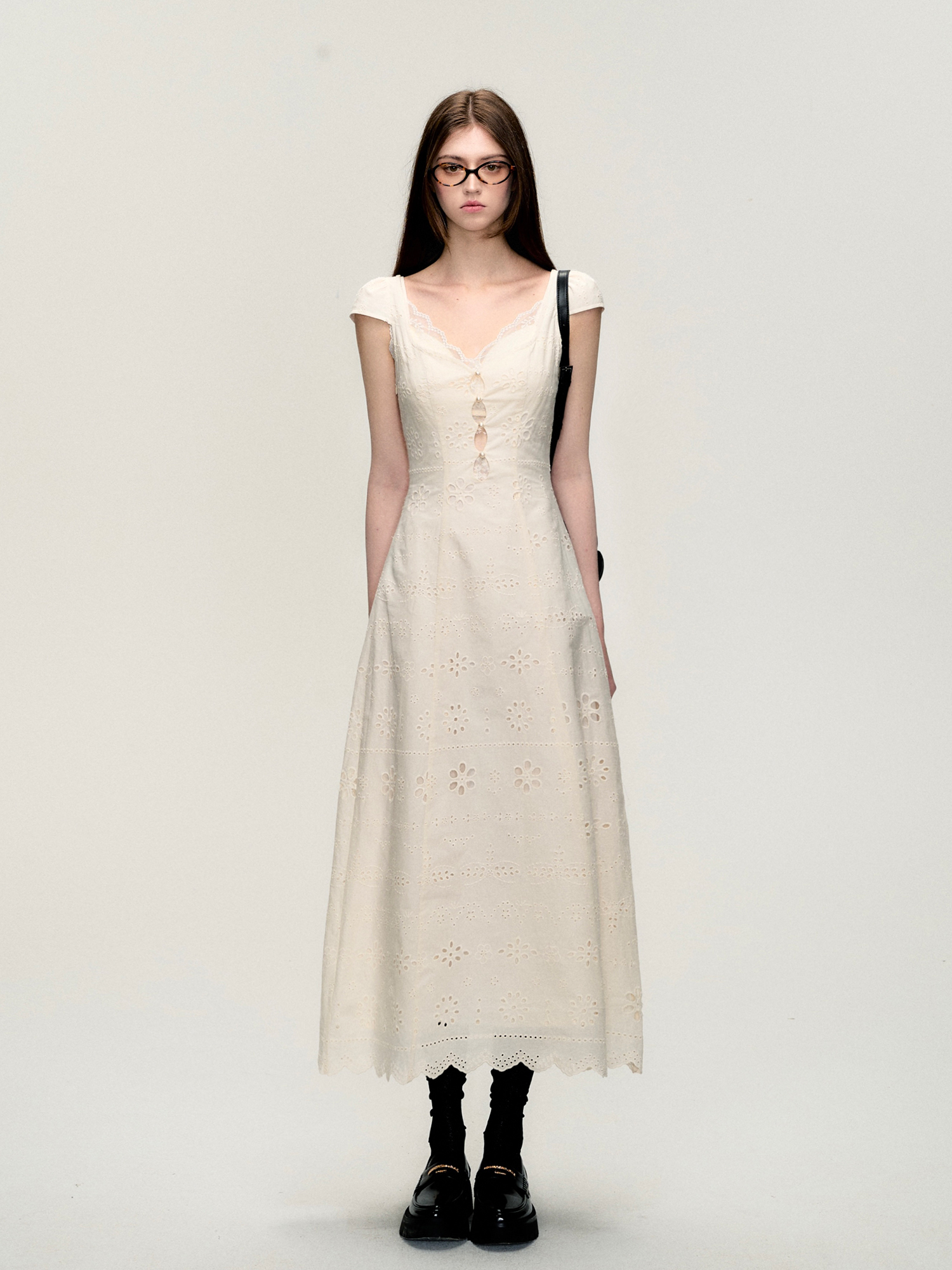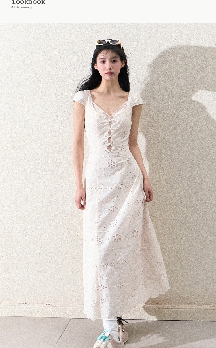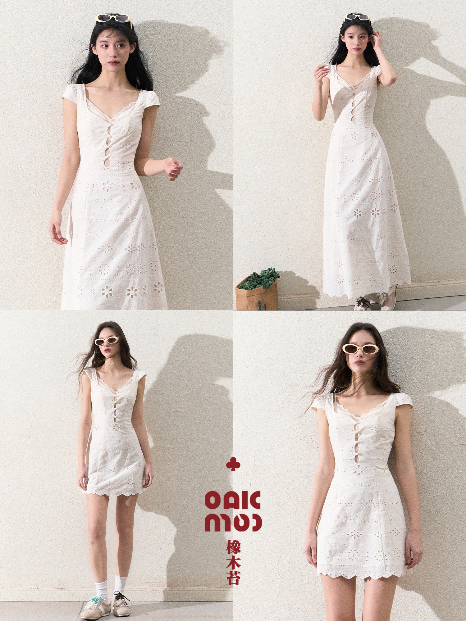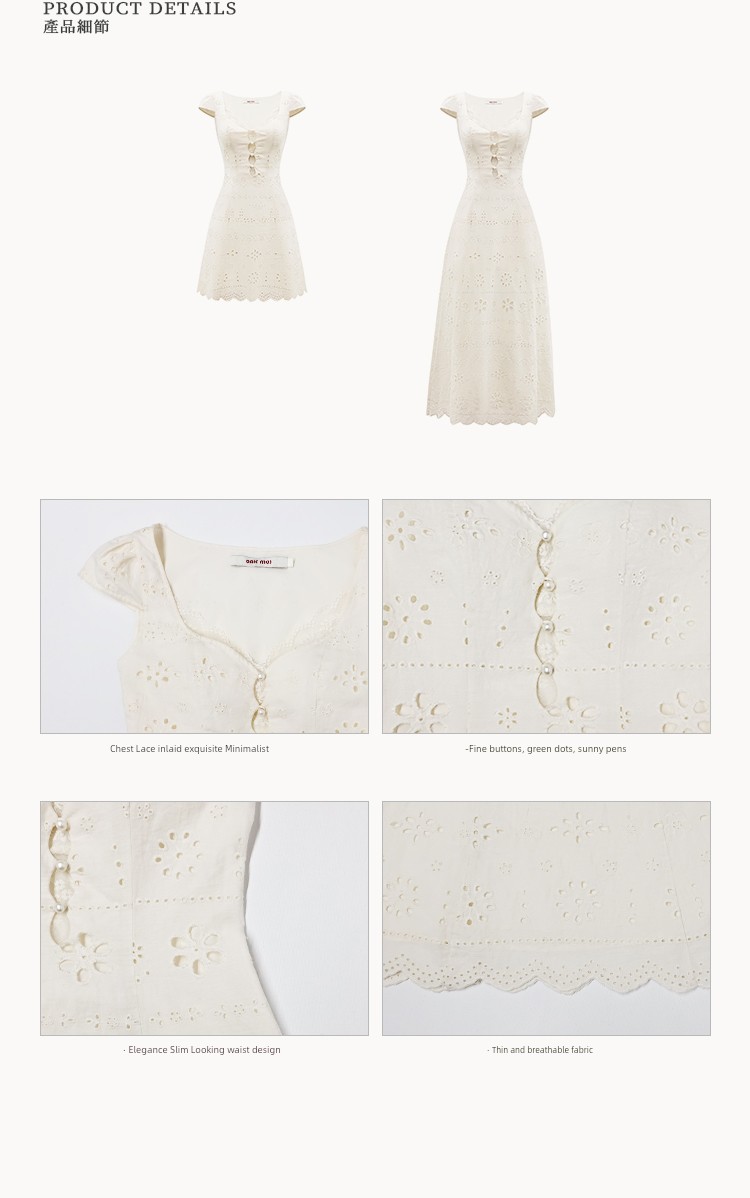 热卖OAKMOO/ "悸动的时光"奶油白简约修身蕾丝拼接连衣裙女夏季肌理感