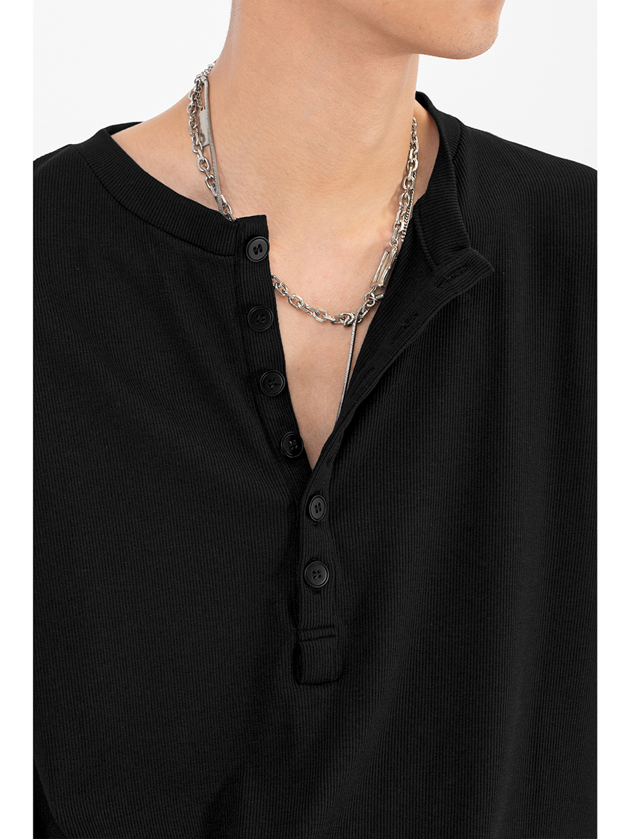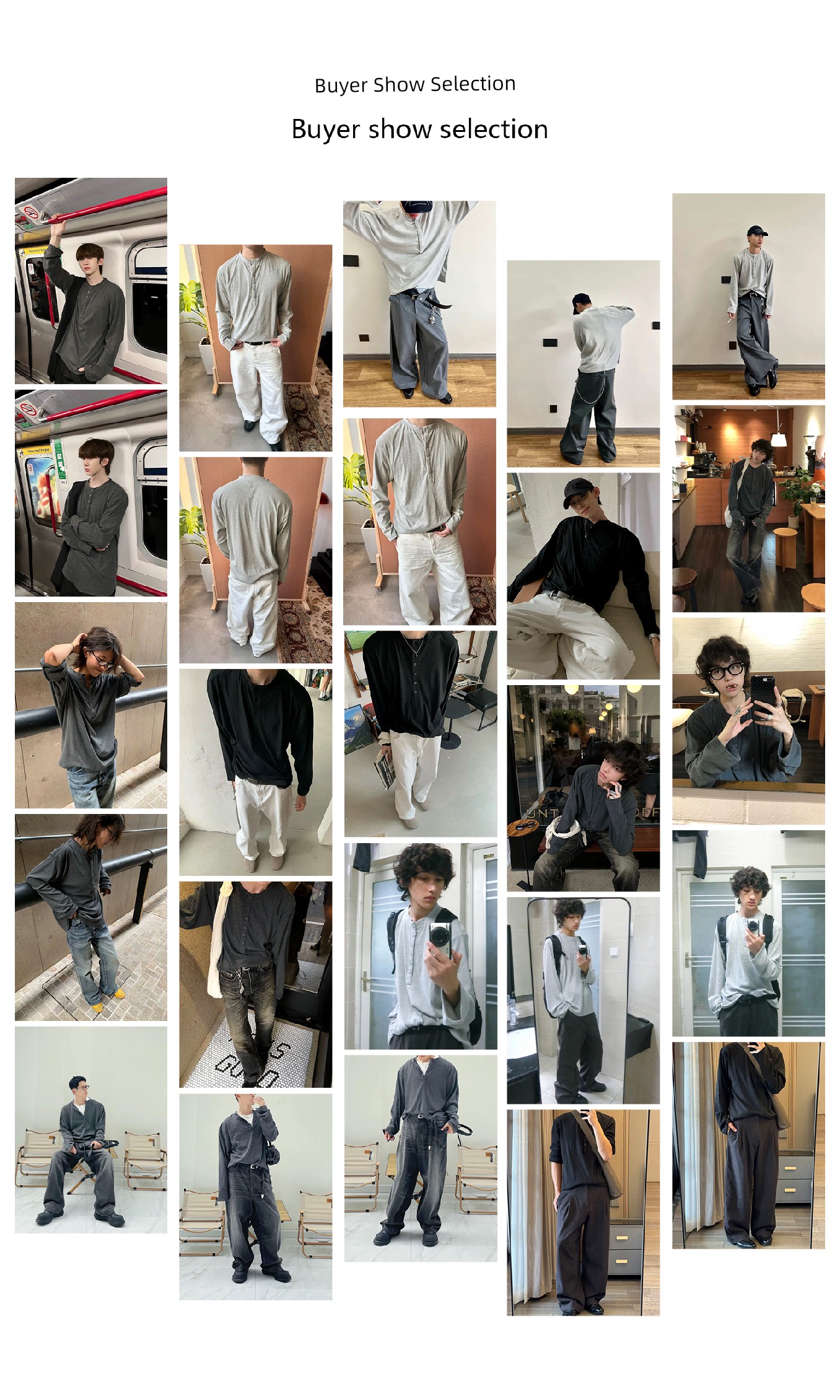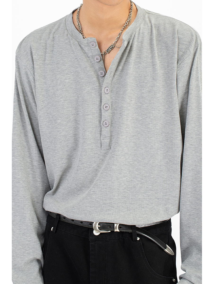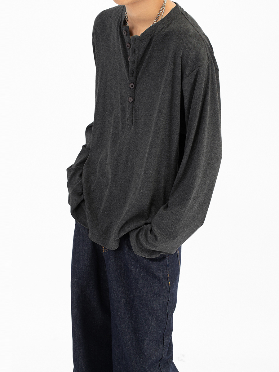 热卖GANGURRUROW风高级纯色透气亲肤亨利领长袖t恤垂感丝滑通勤打底衫