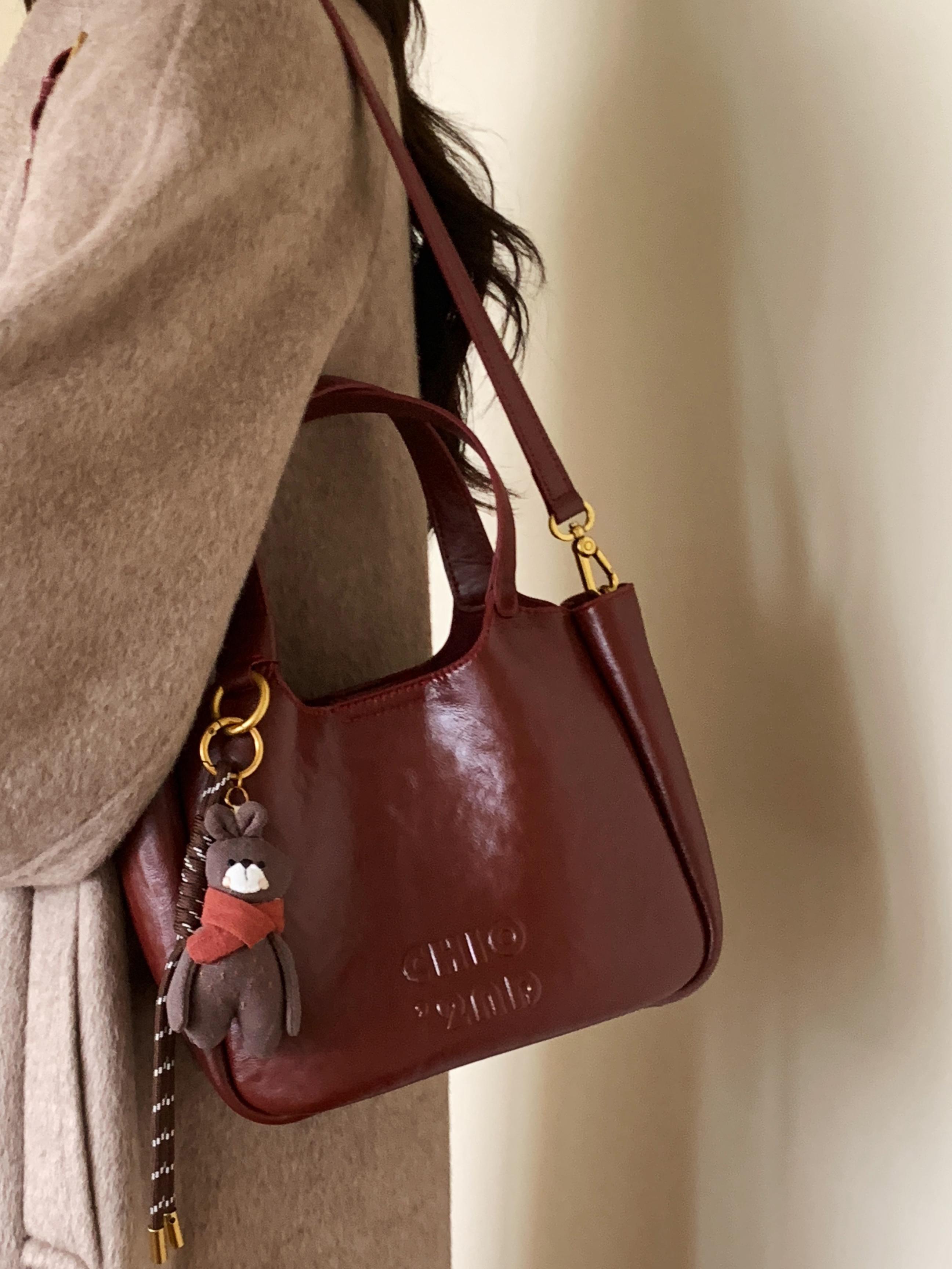 热卖南风Chio2nd 冬月童话真皮牛皮小托特包包女秋冬红色手提单肩斜挎