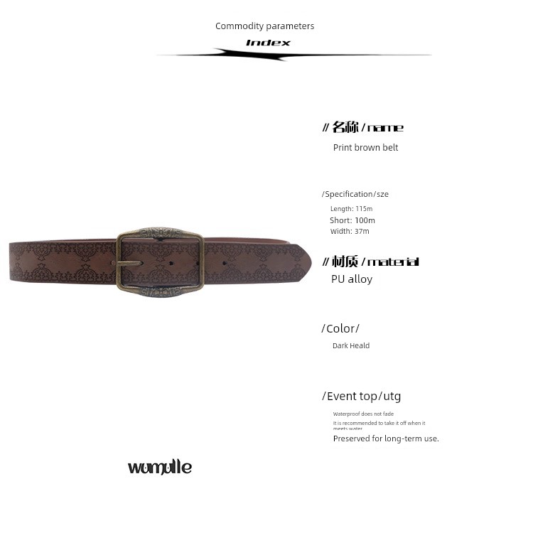 热卖wumulle 古铜印花棕系复古做旧80s颓靡皮带腰带 一年四季必有一条