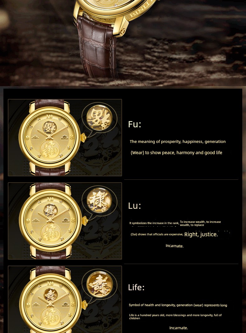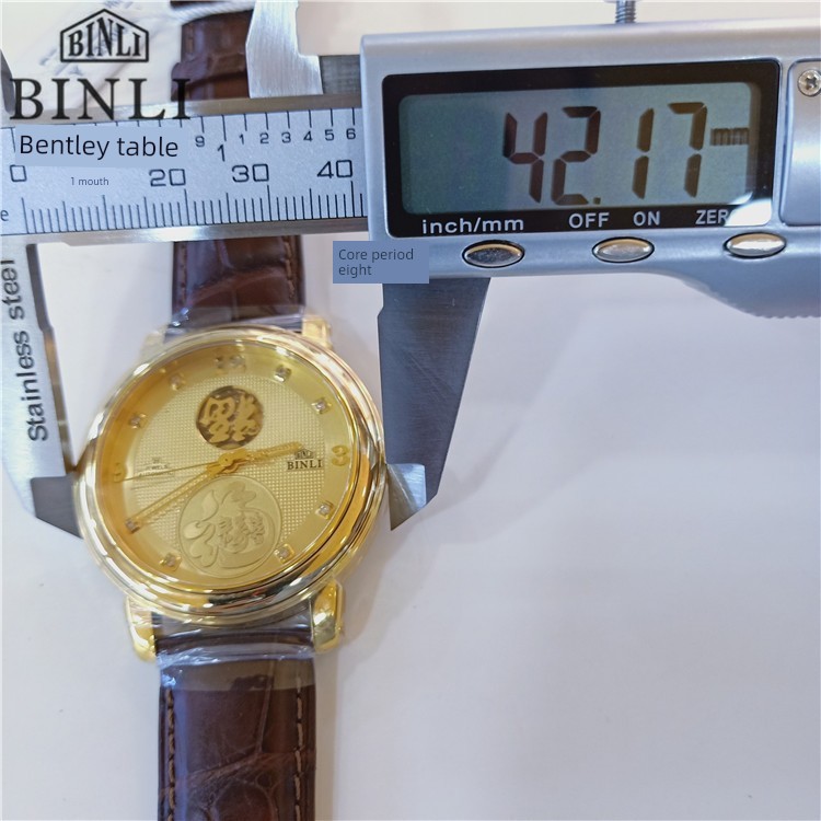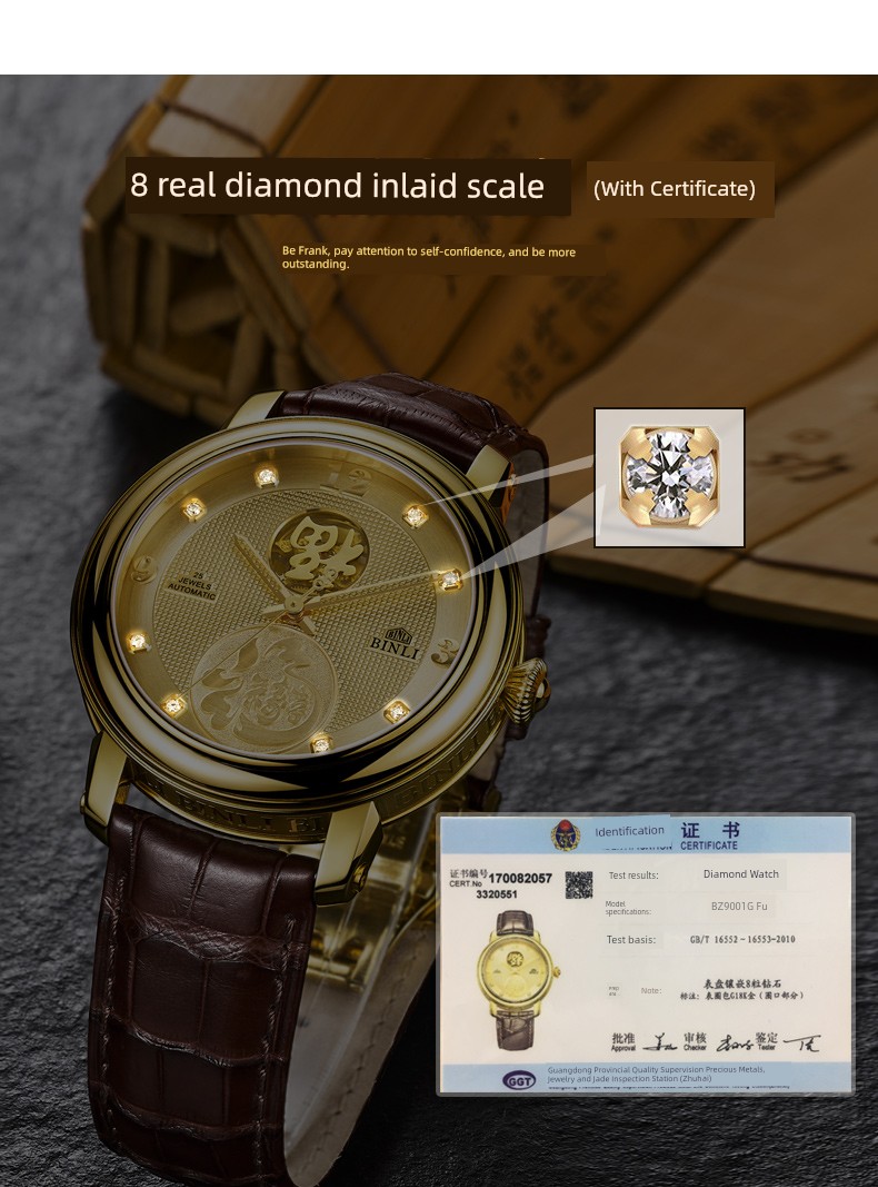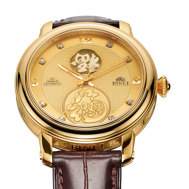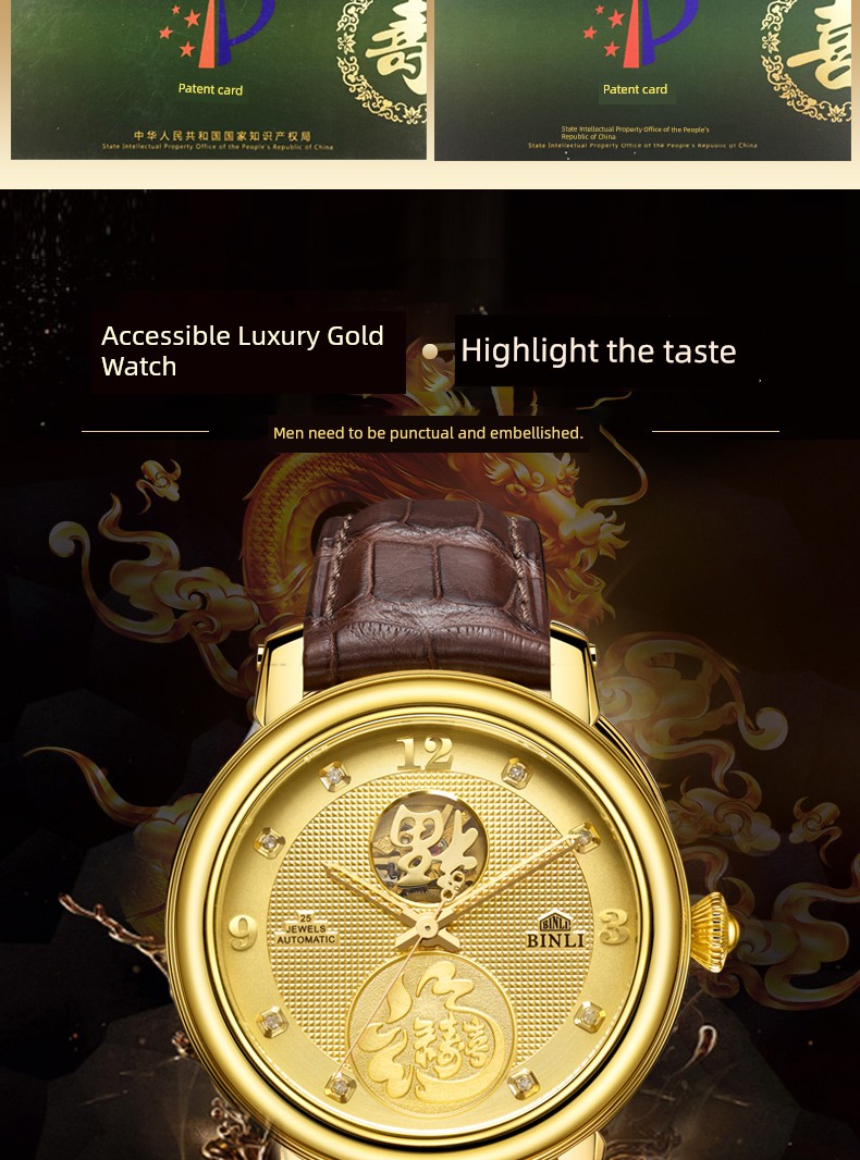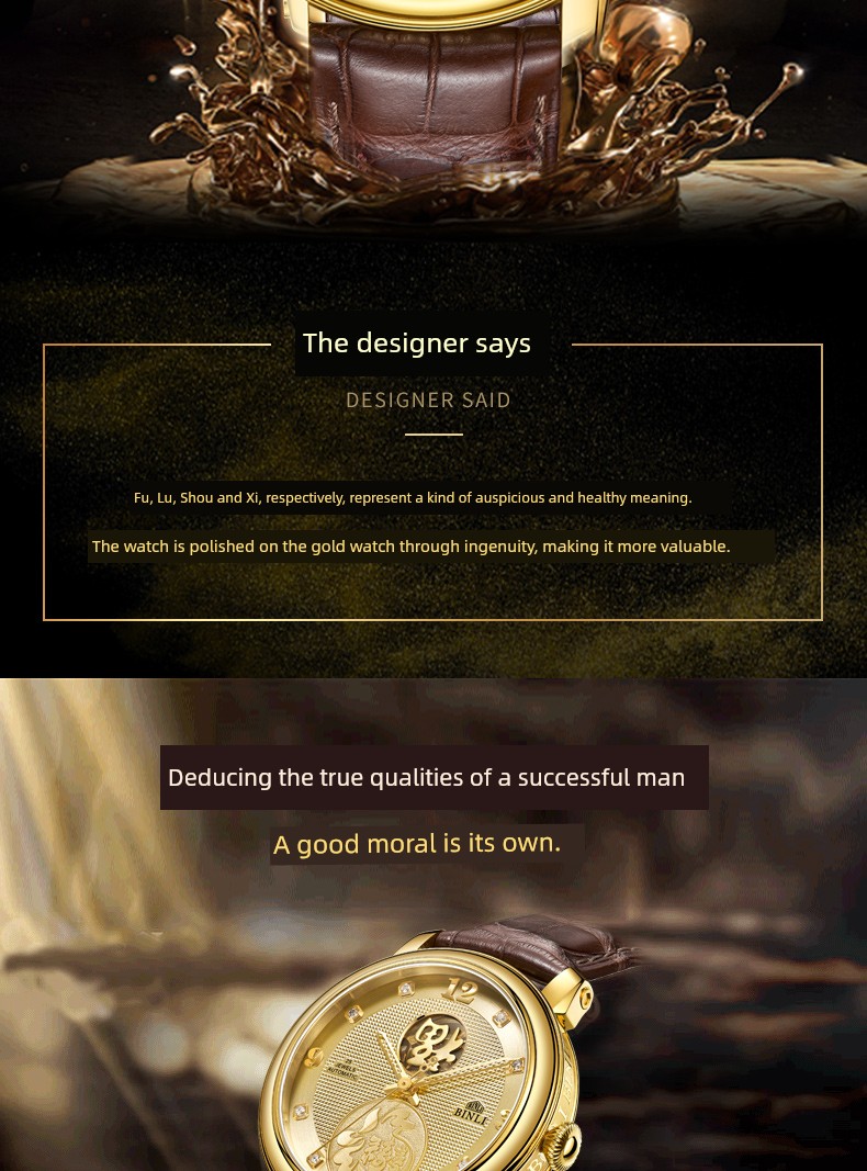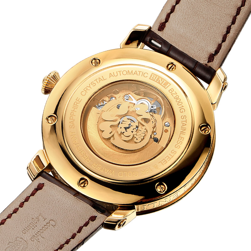 热卖高端宾利手表男士全自动机械手表福禄寿喜真皮18K包金钻石表9001