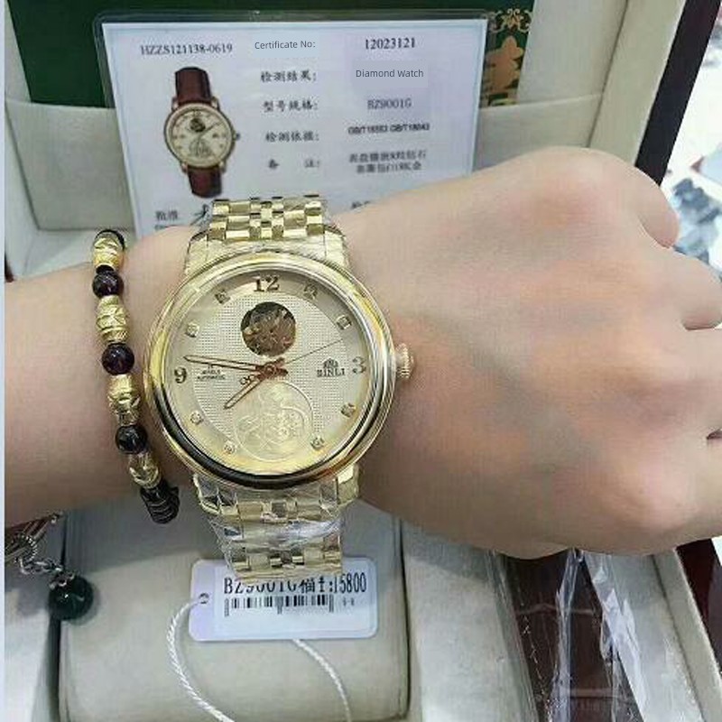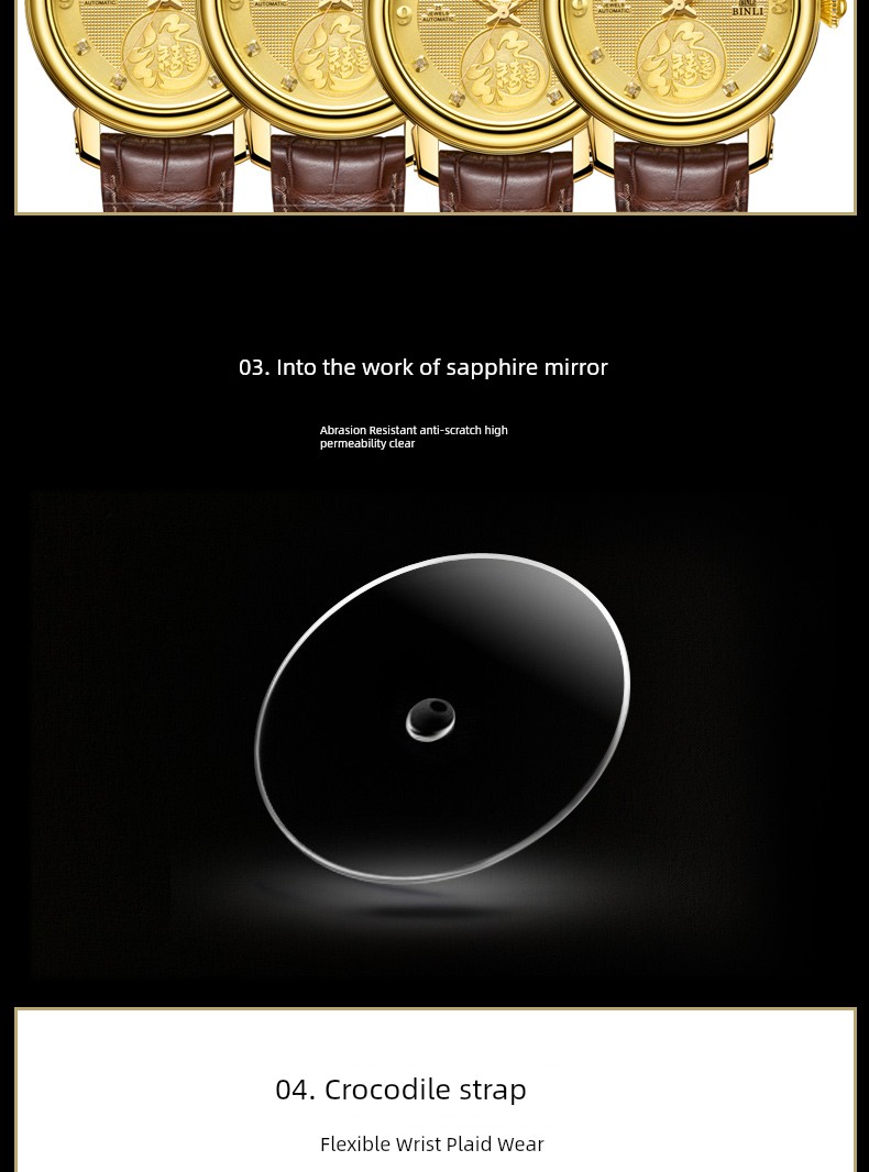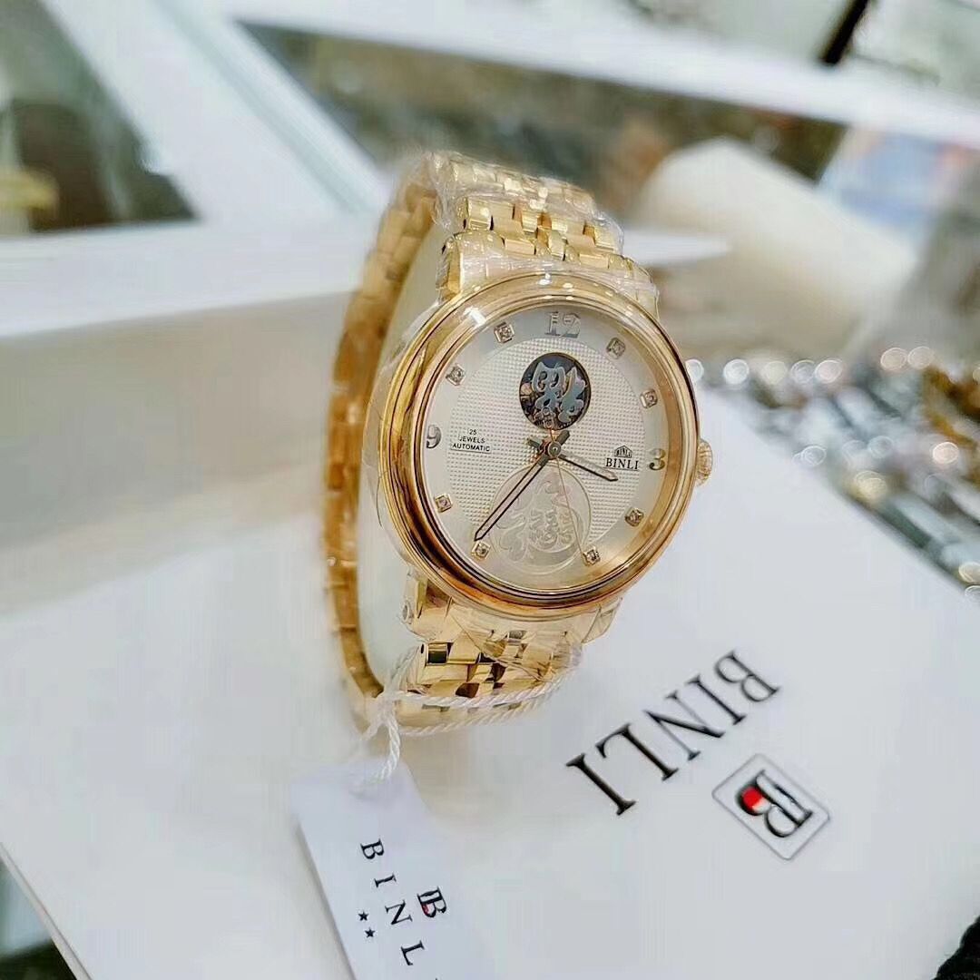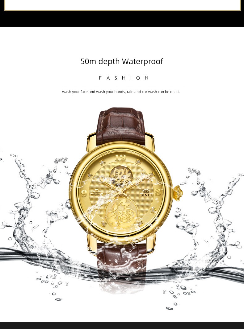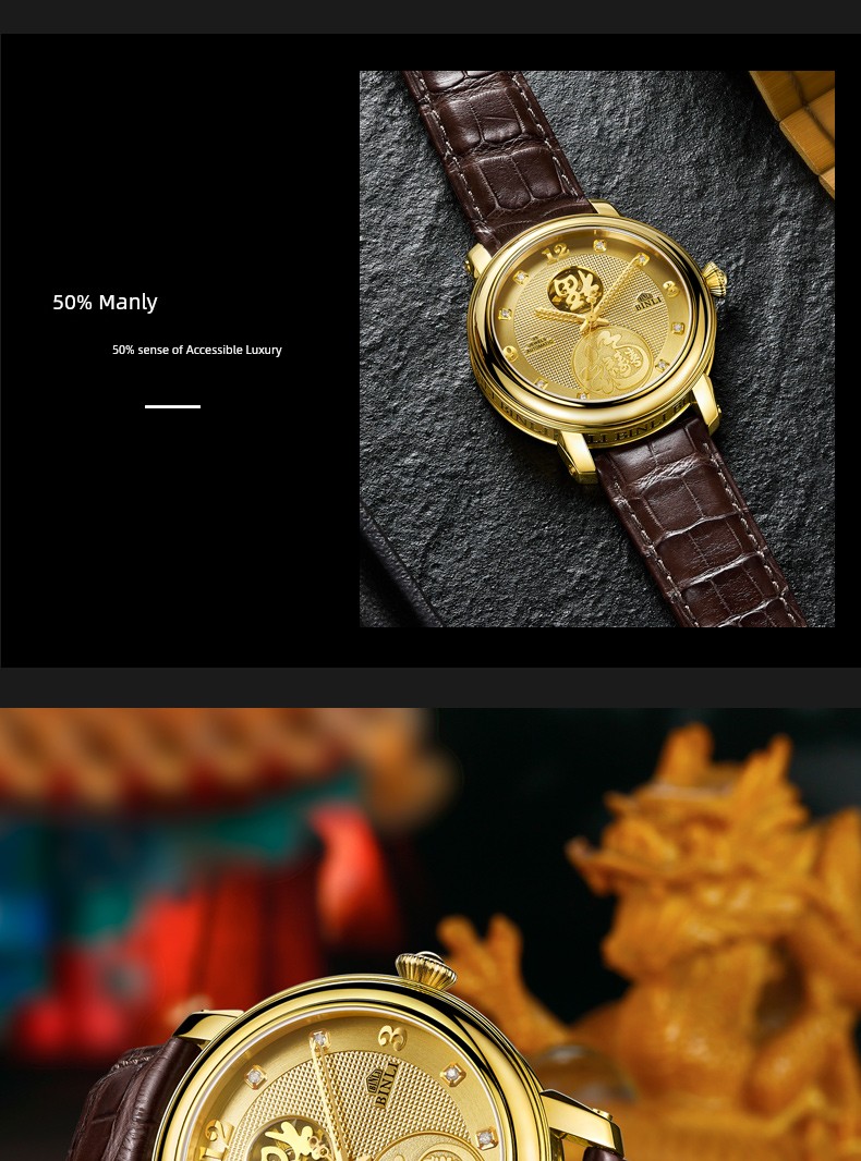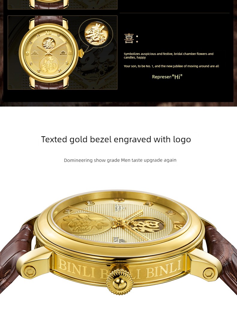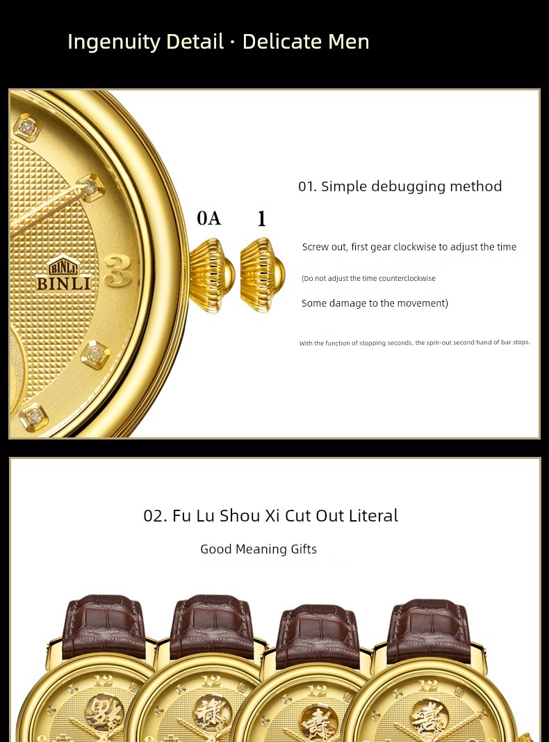 热卖高端宾利手表男士全自动机械手表福禄寿喜真皮18K包金钻石表9001