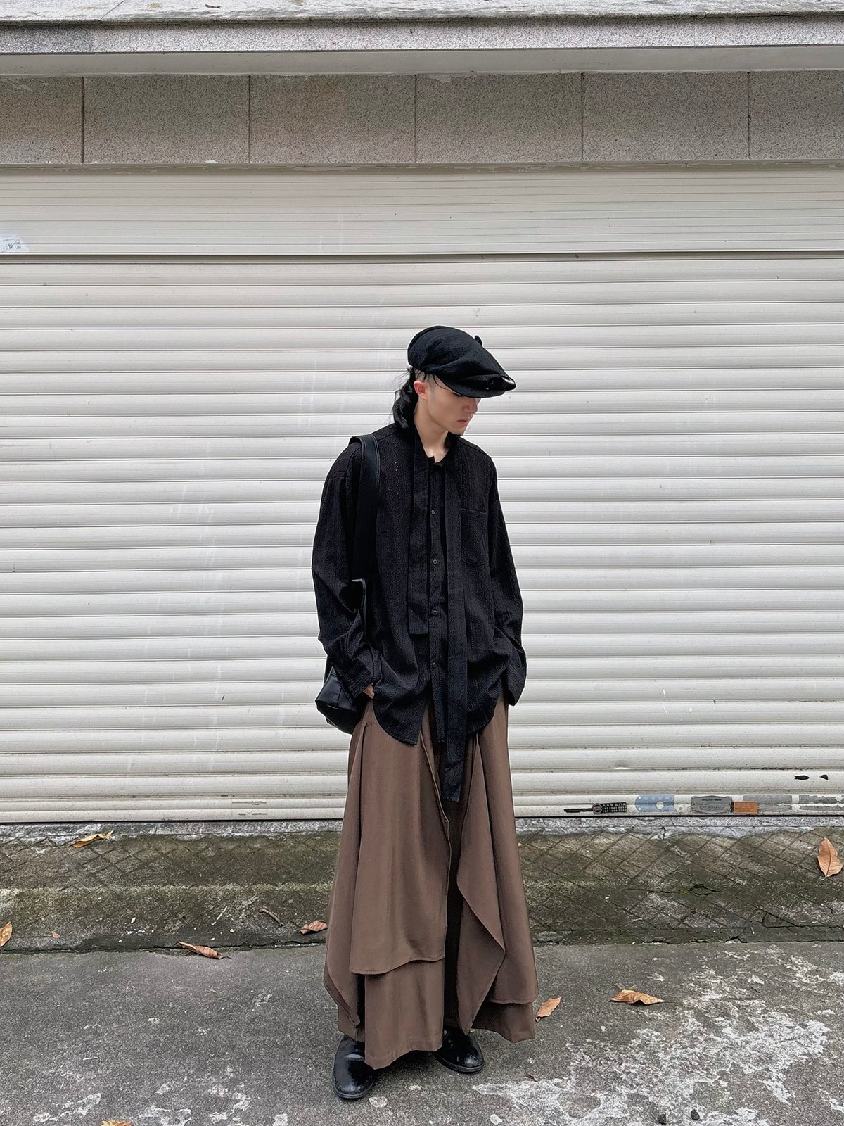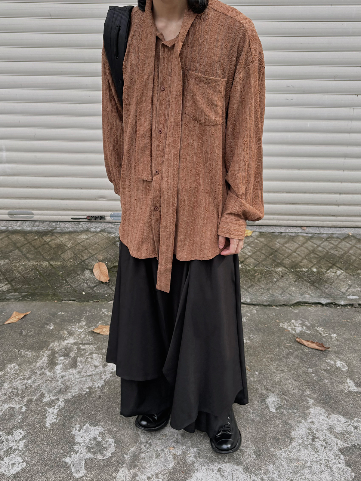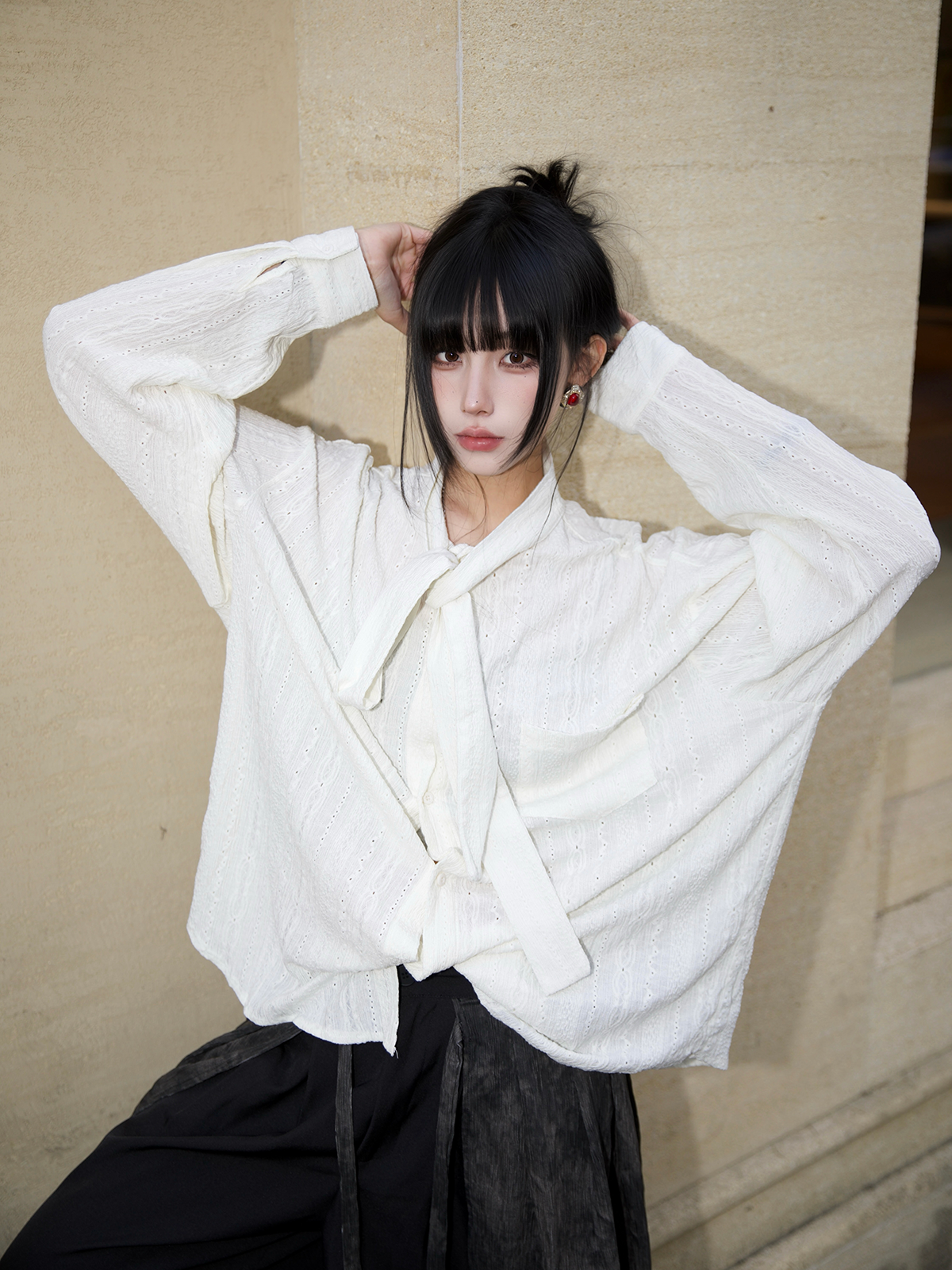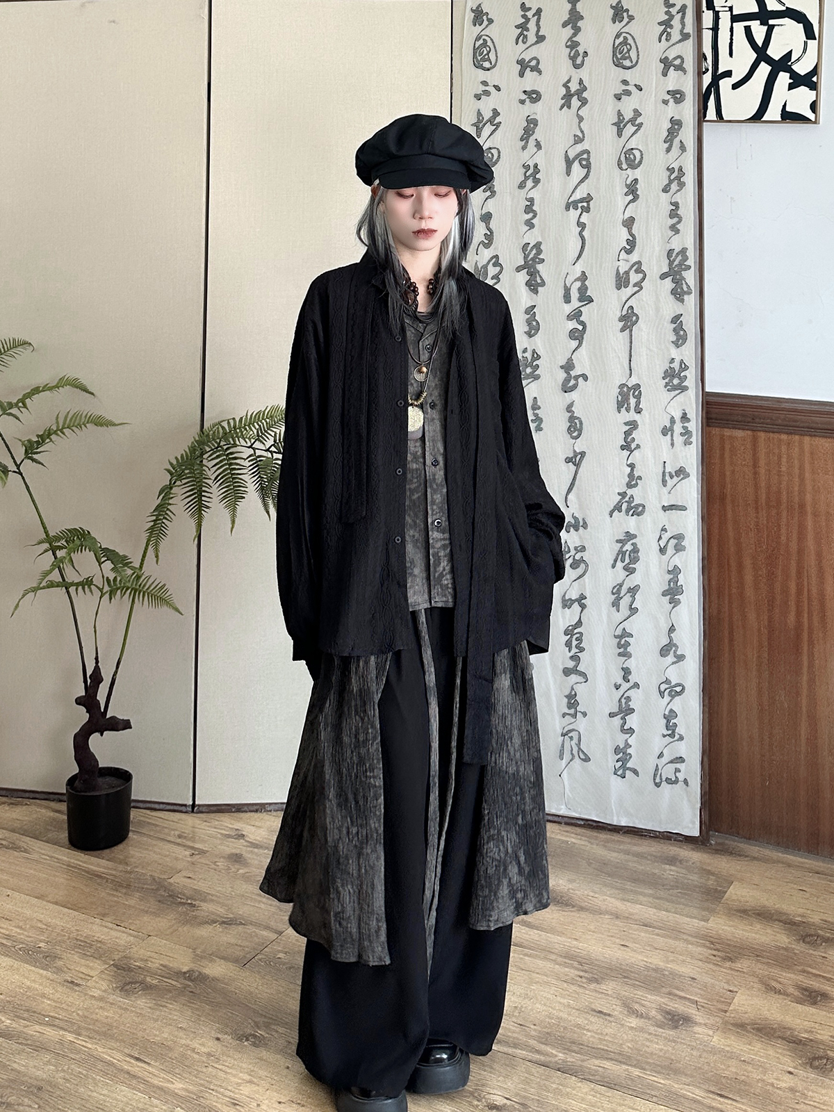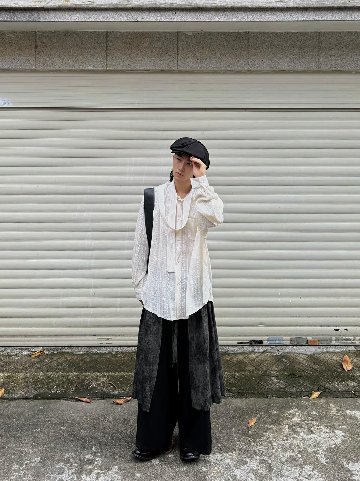 热卖半空山 「近秋」无性别复古镂空飘带设计山本耀司风长袖外搭衬衫