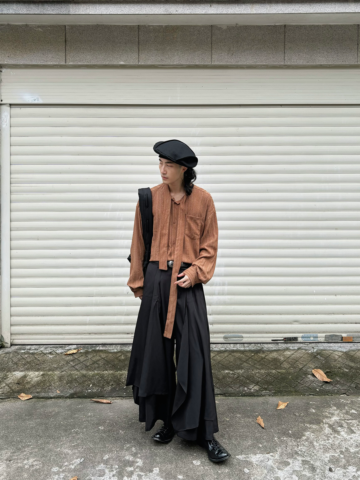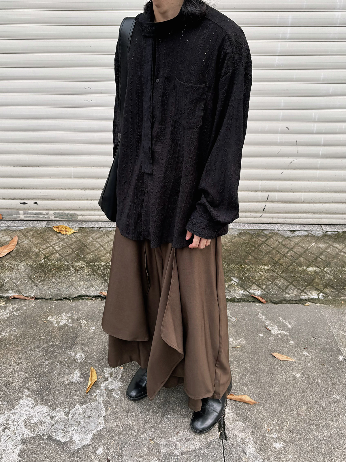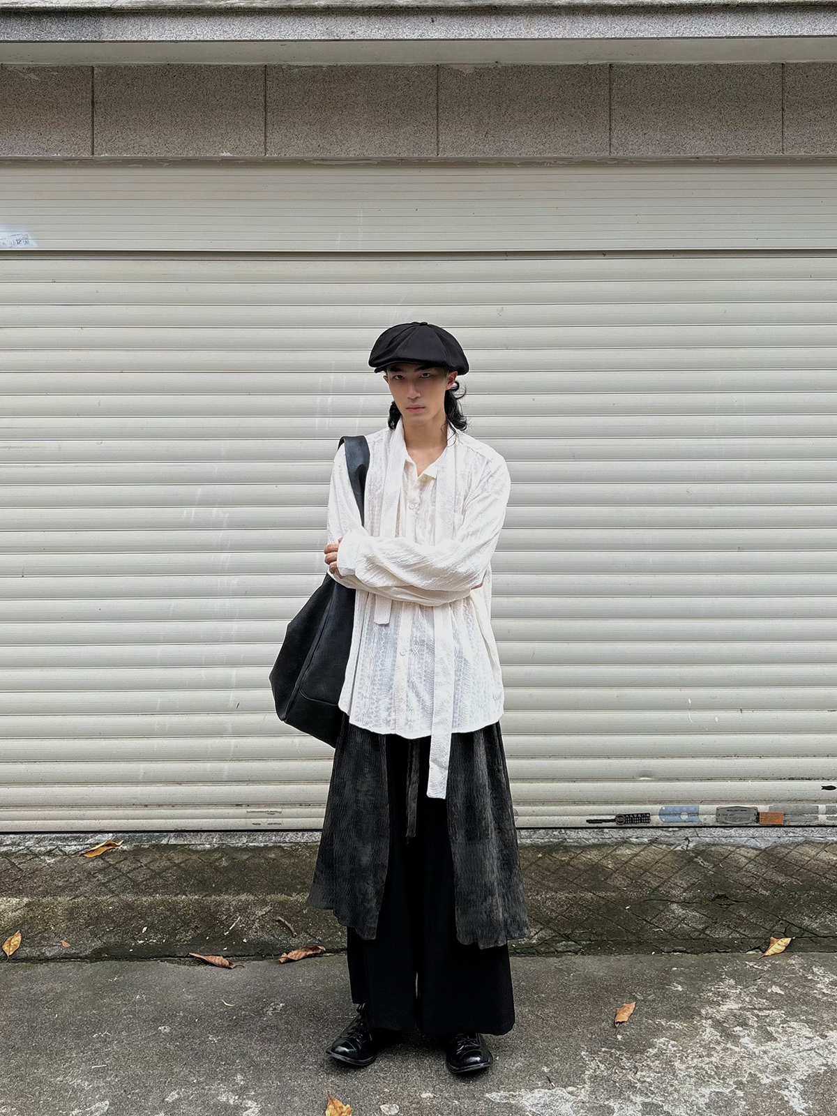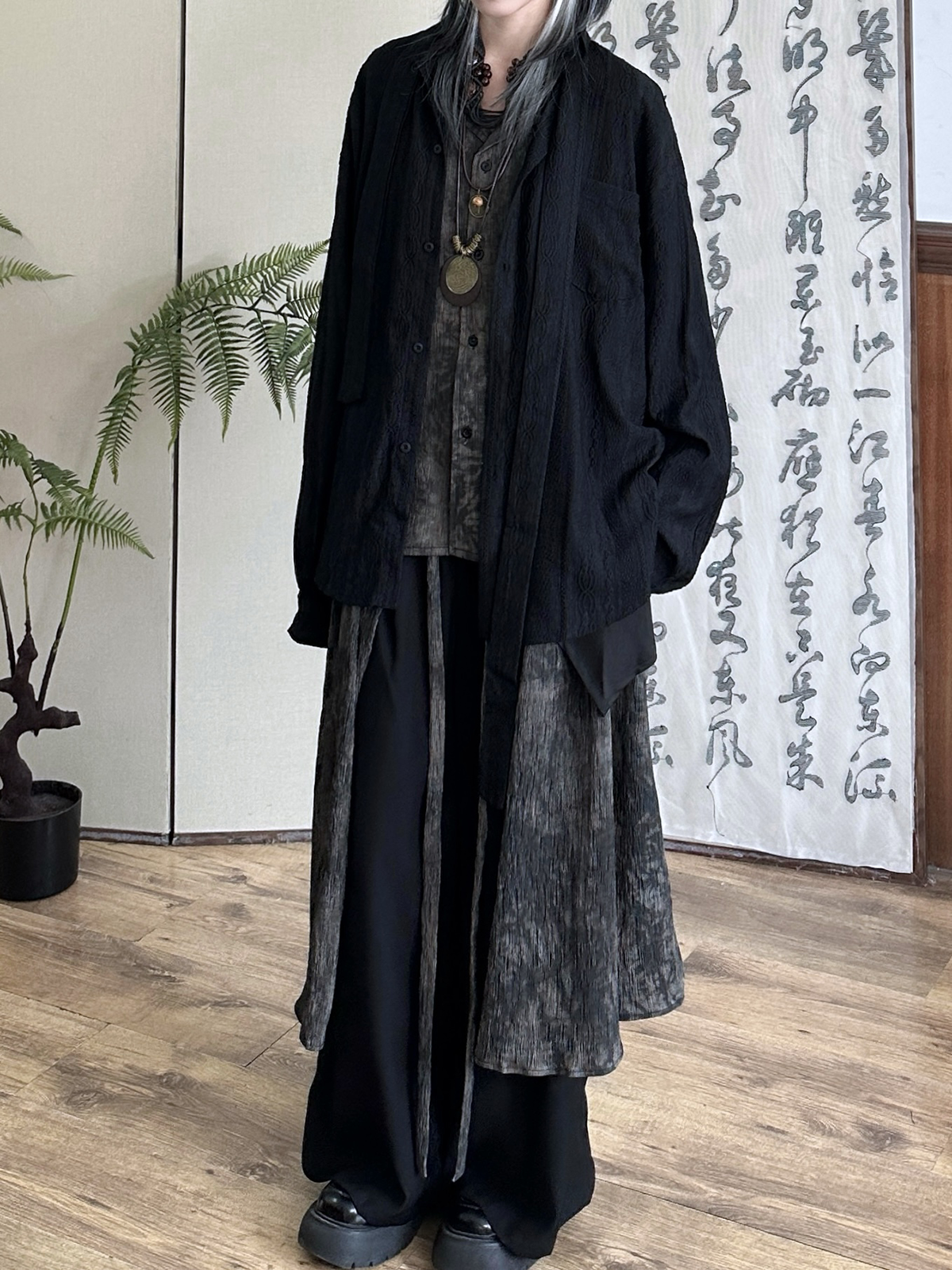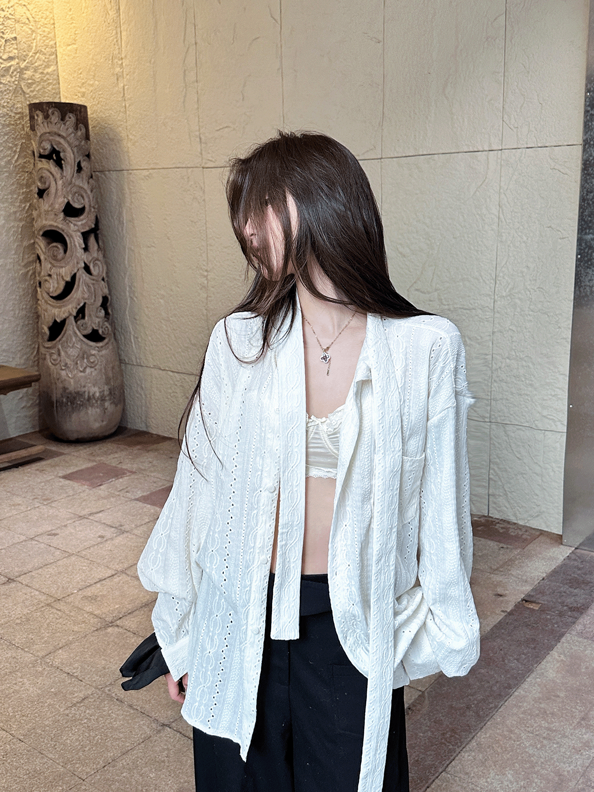 热卖半空山 「近秋」无性别复古镂空飘带设计山本耀司风长袖外搭衬衫