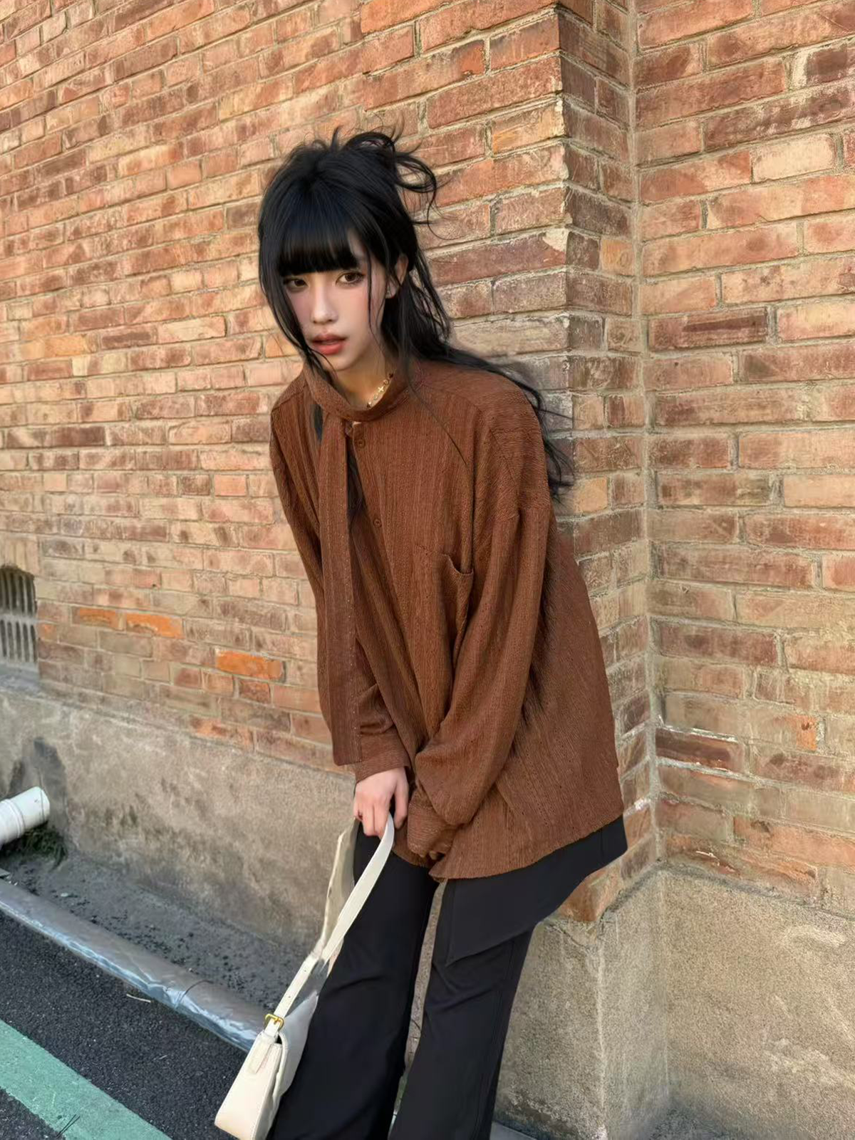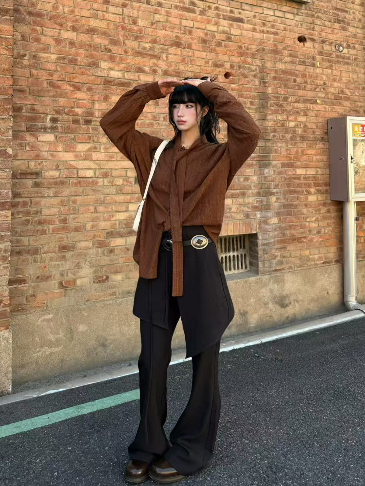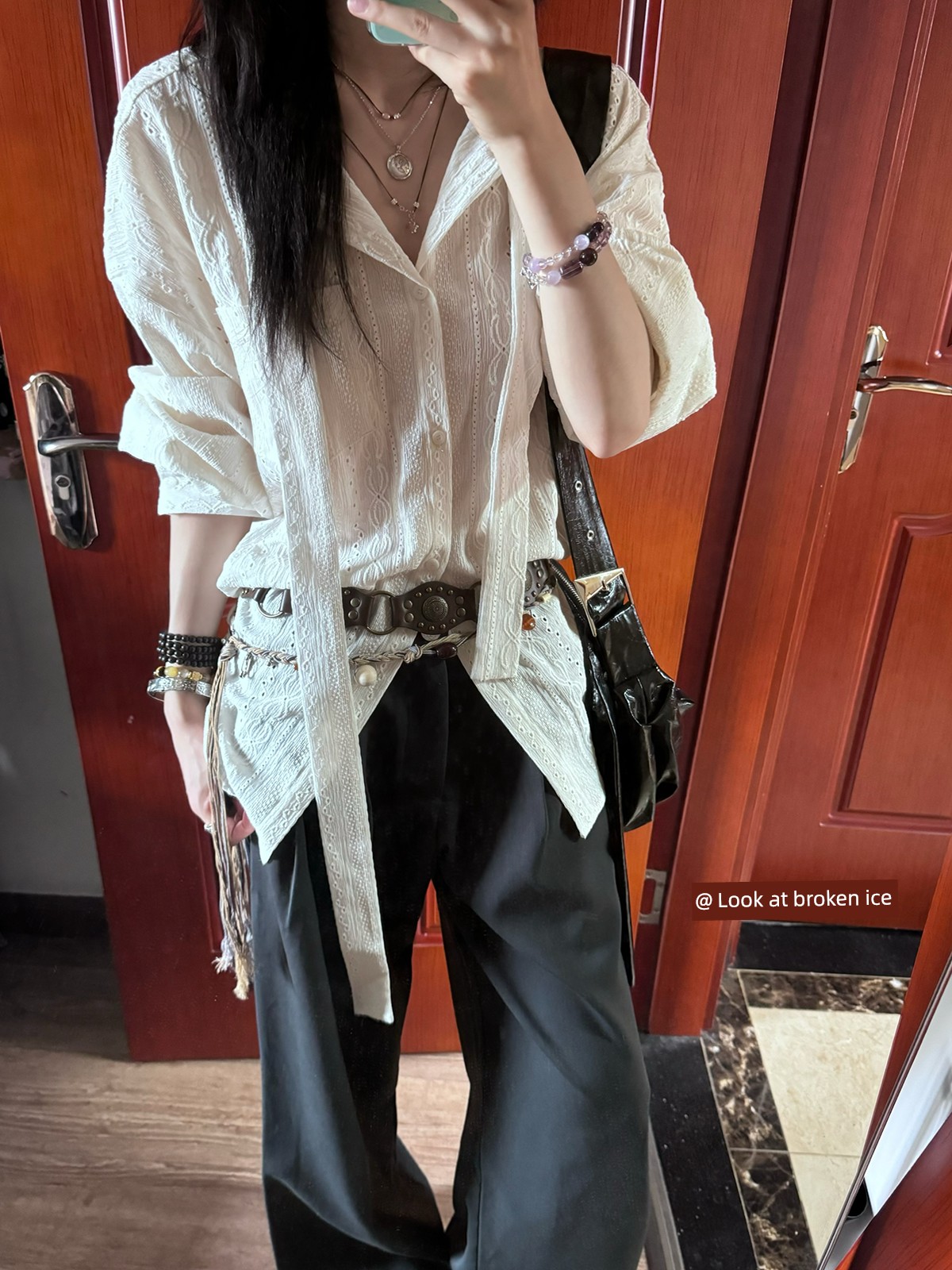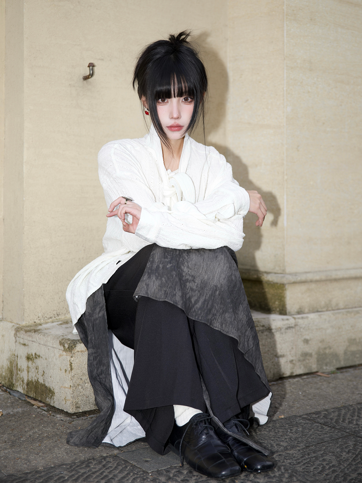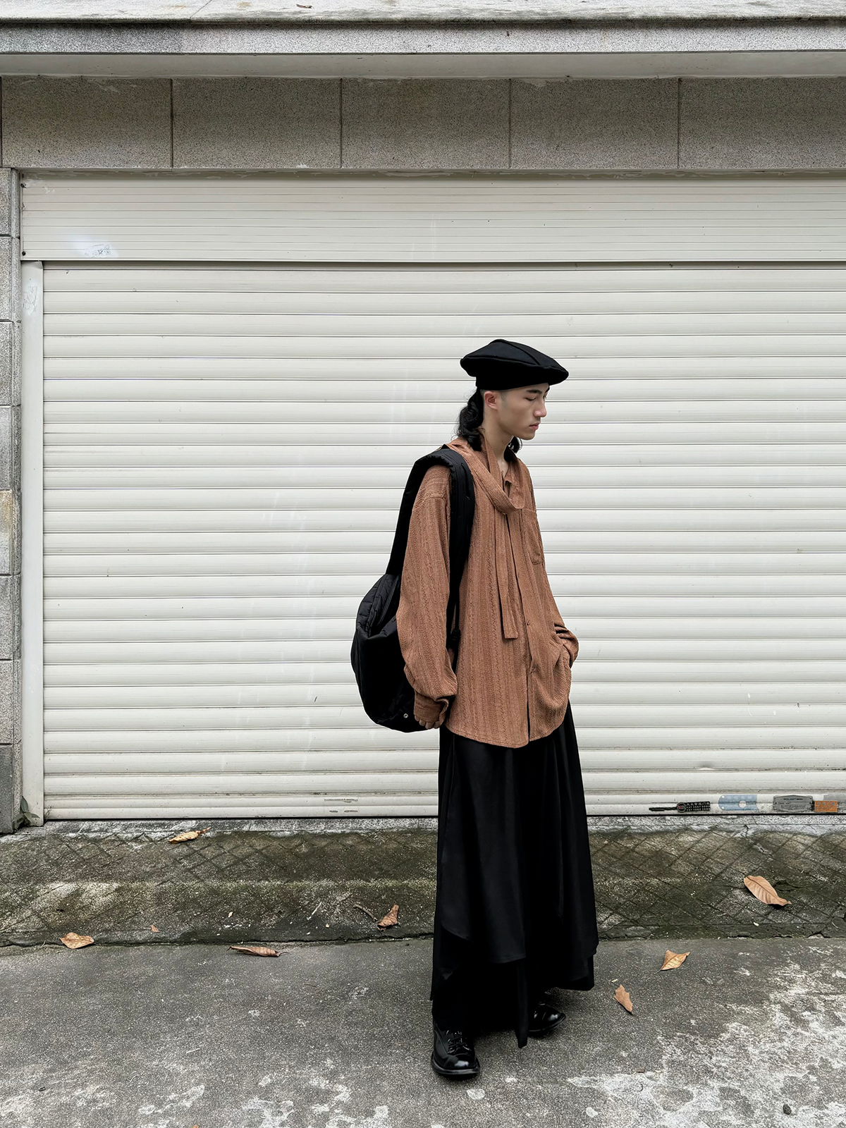 热卖半空山 「近秋」无性别复古镂空飘带设计山本耀司风长袖外搭衬衫
