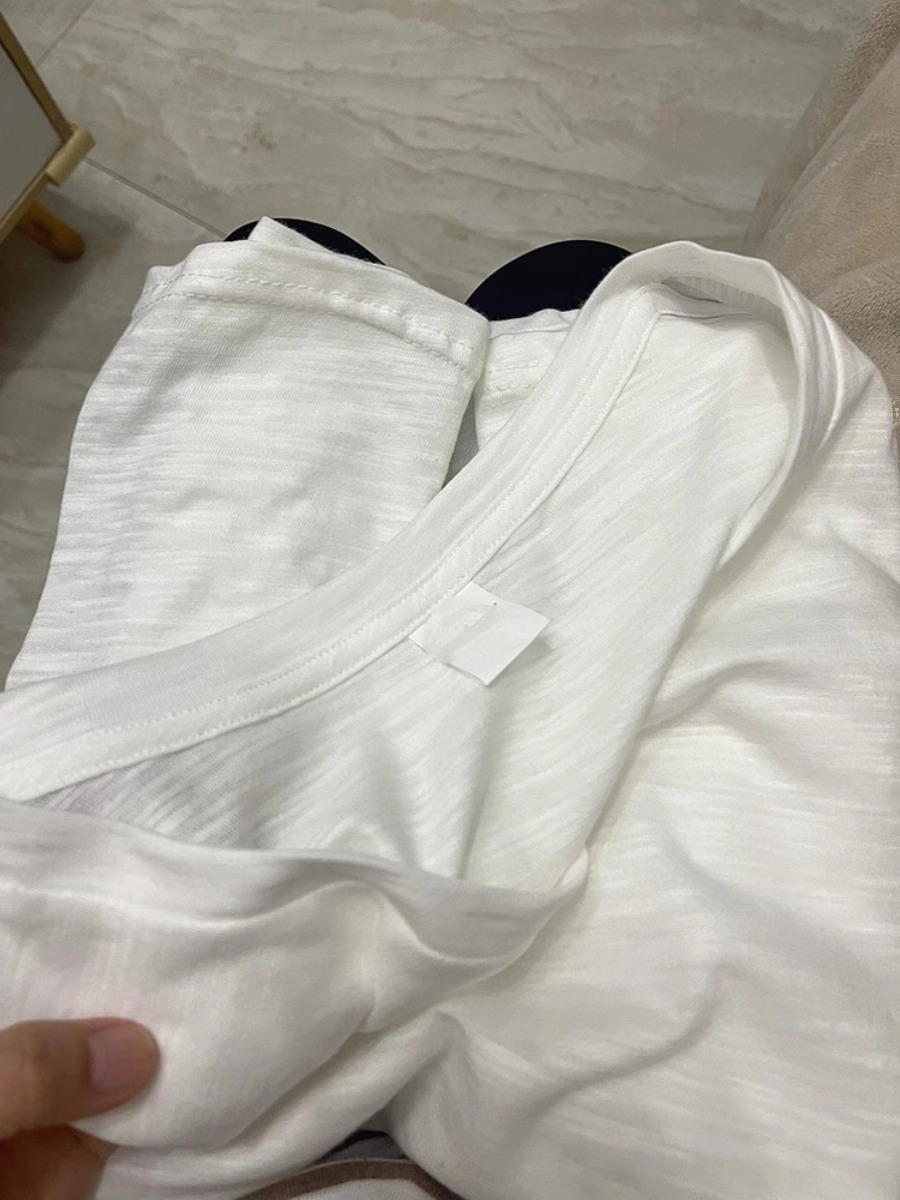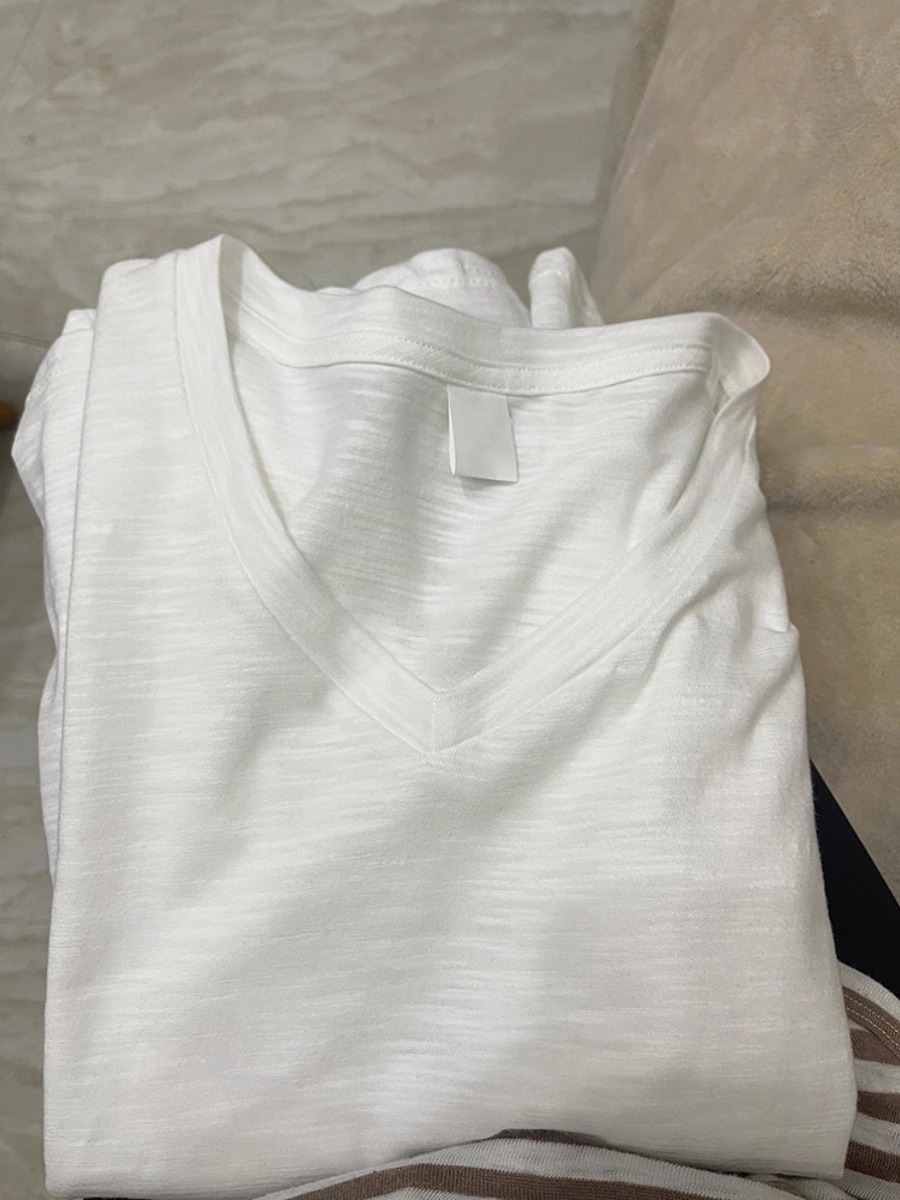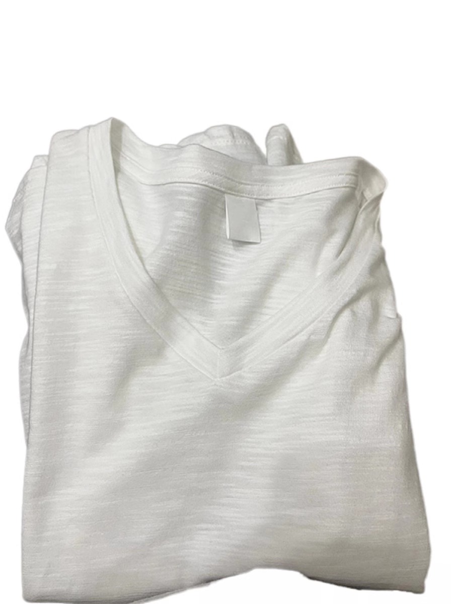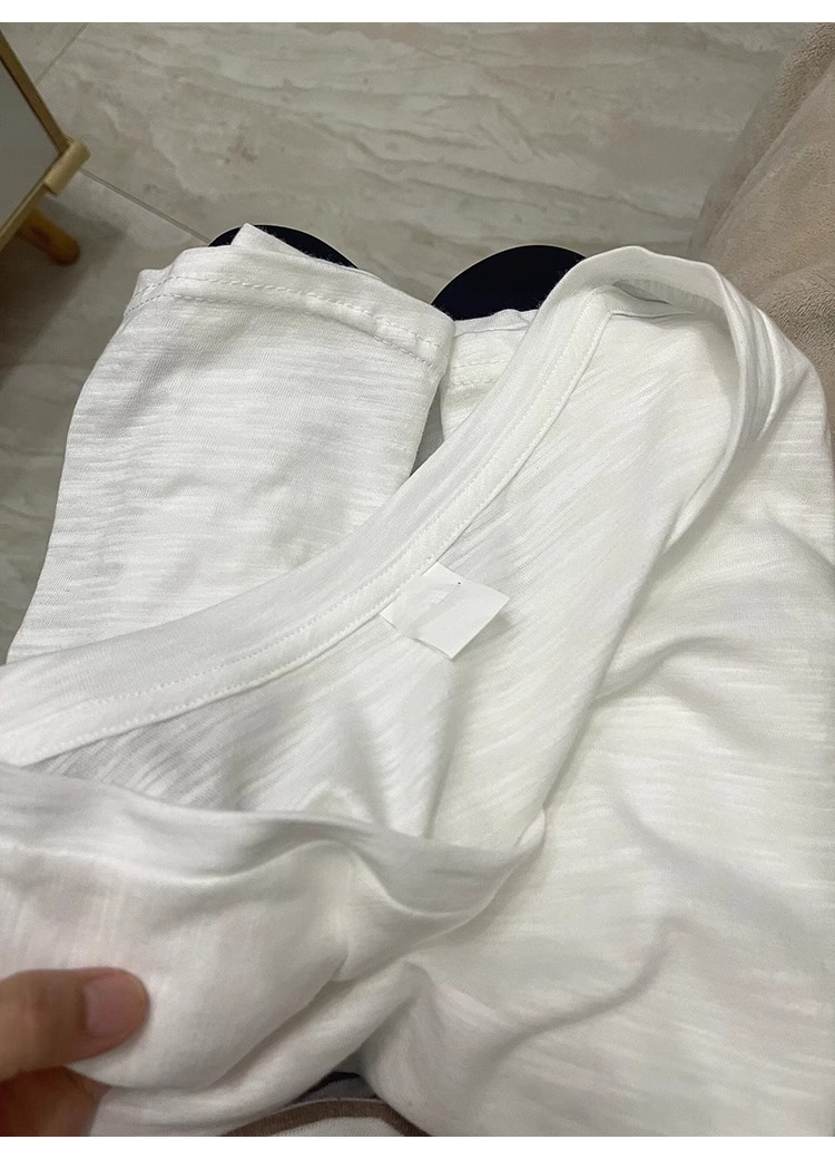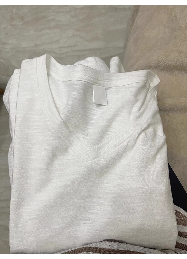 热卖纯白竹节棉V领正肩短袖t恤女夏季亲肤透气休闲百搭宽松漏锁骨上衣