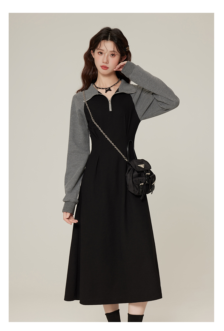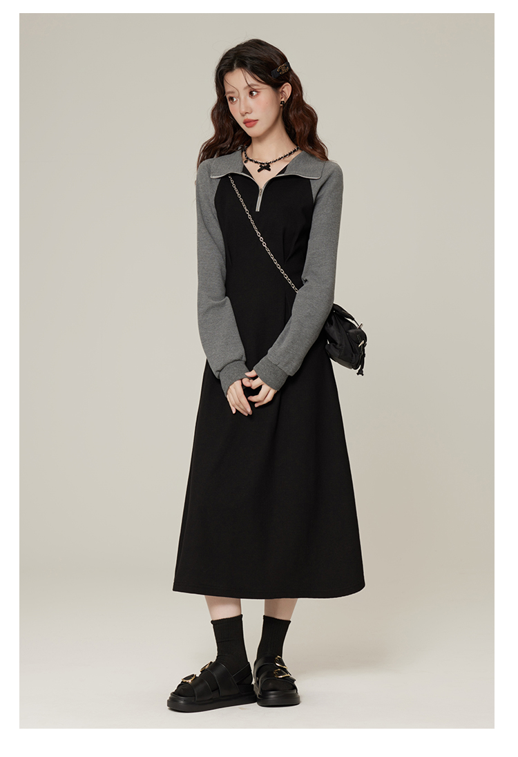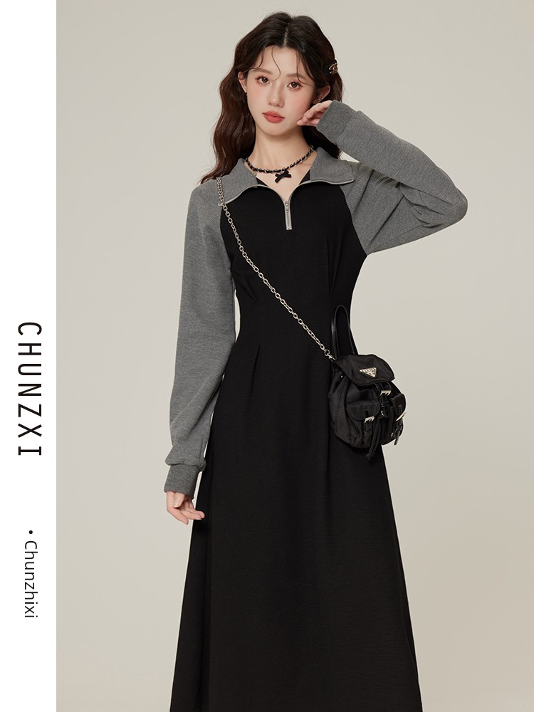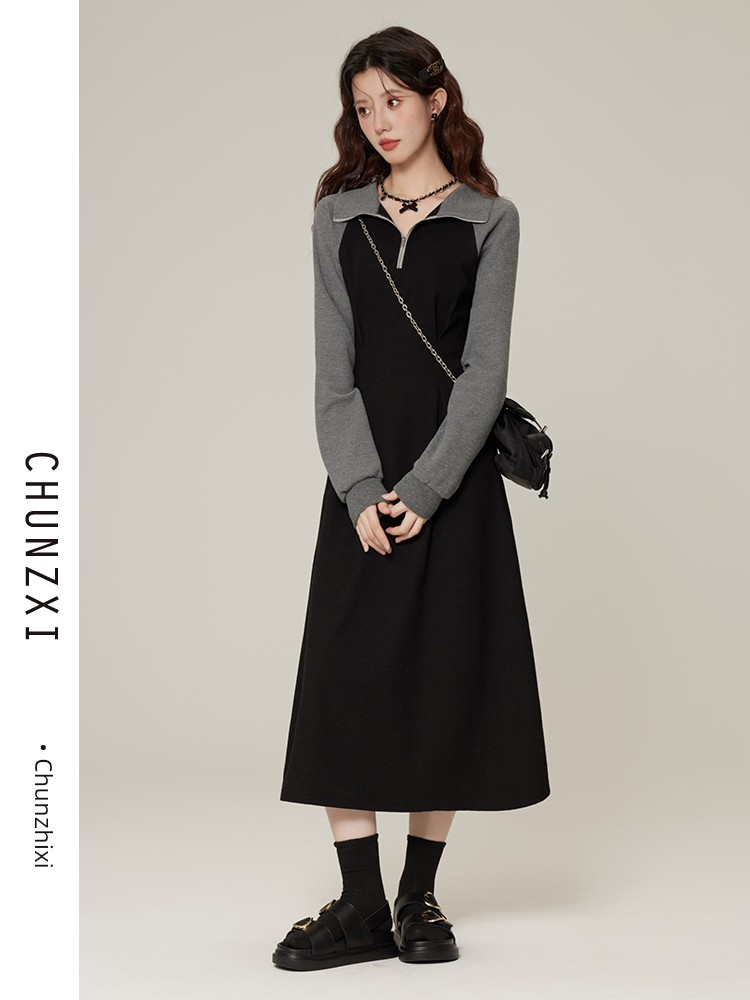 热卖Polo秋冬休闲显瘦收腰长袖连衣裙