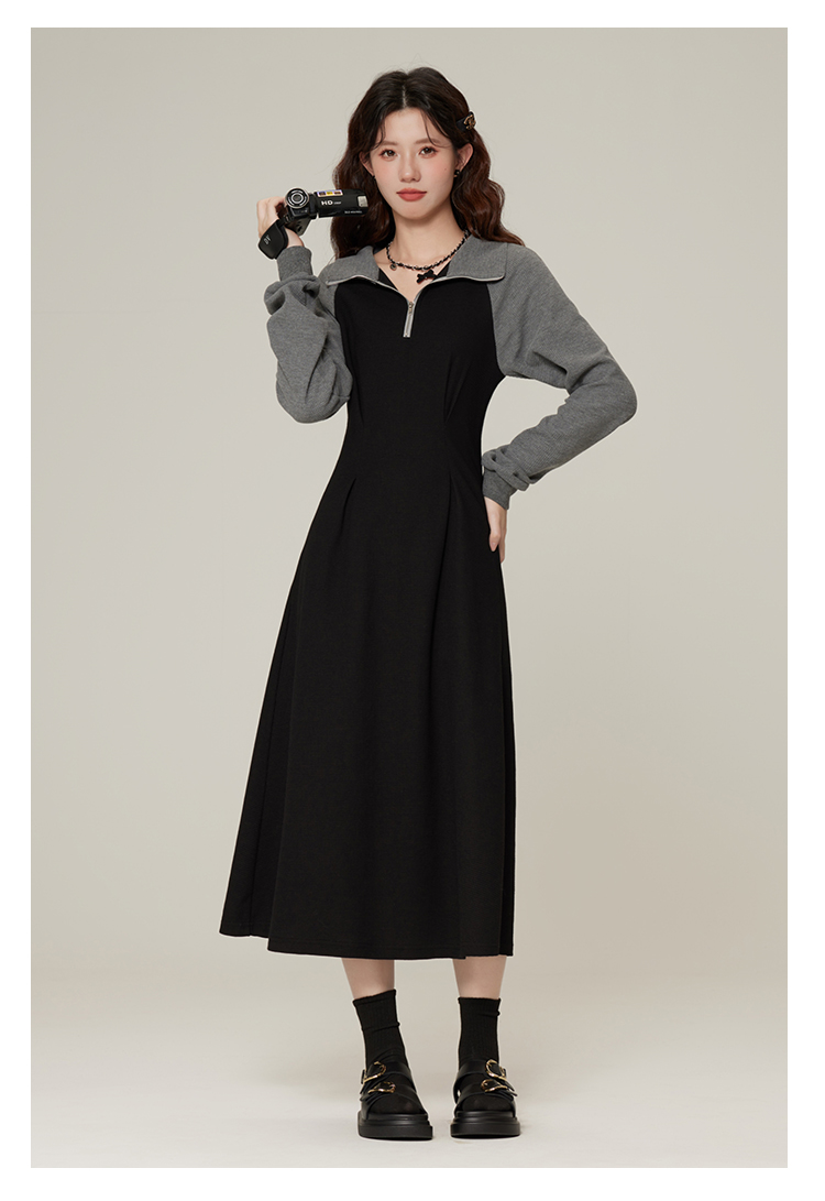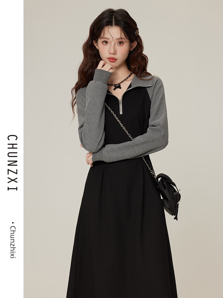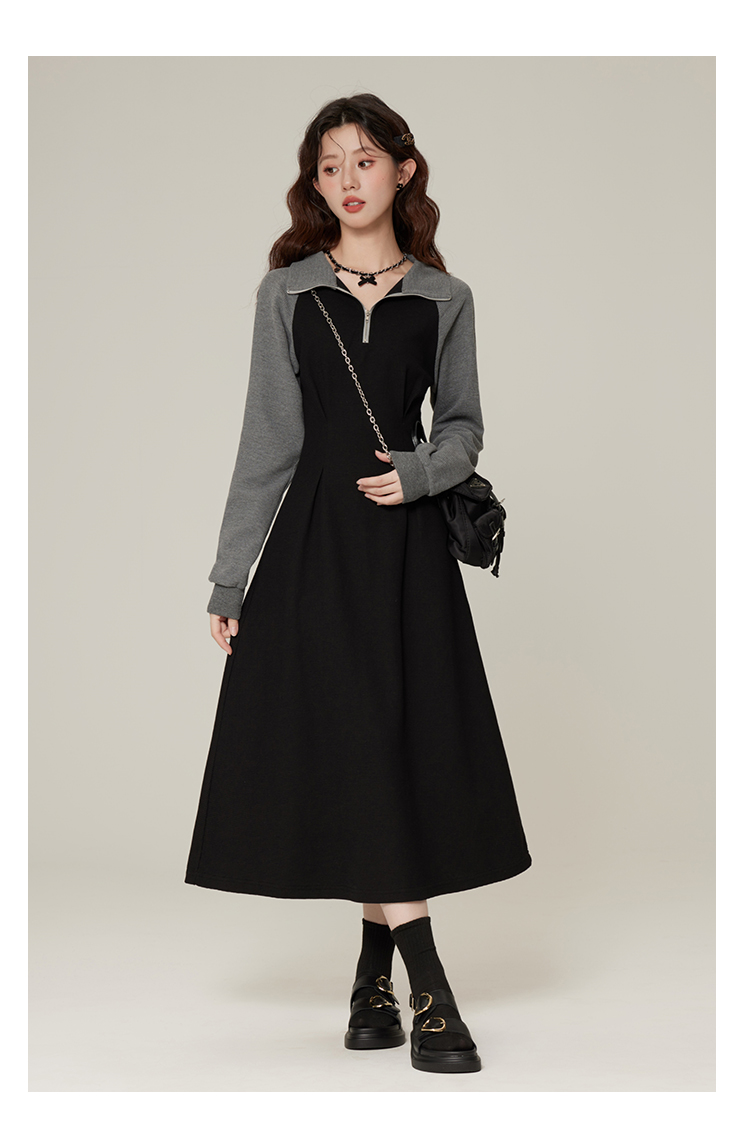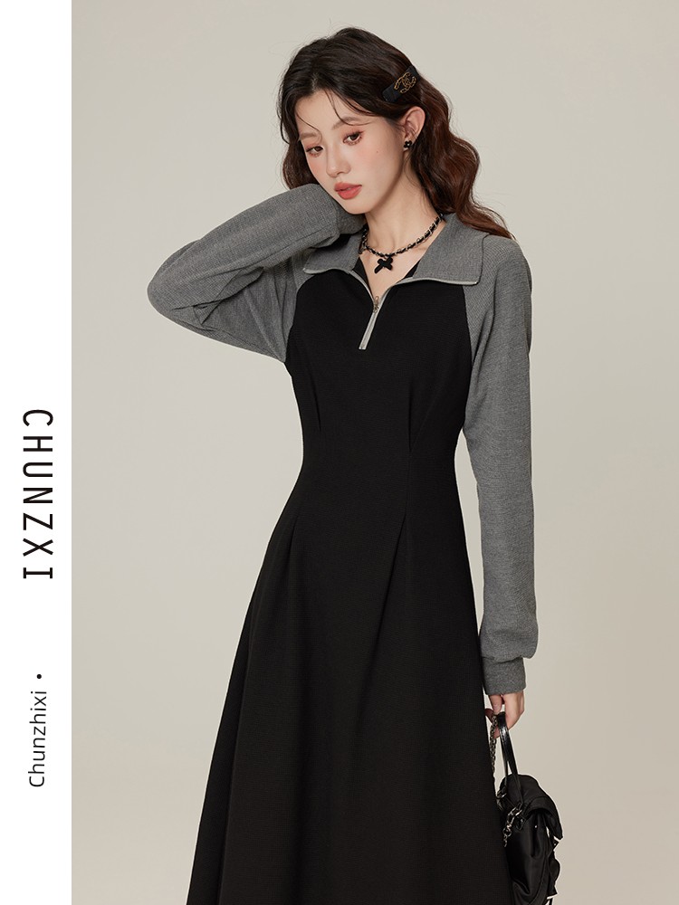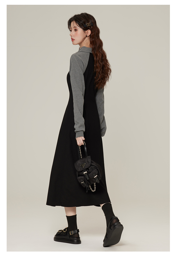 热卖Polo秋冬休闲显瘦收腰长袖连衣裙