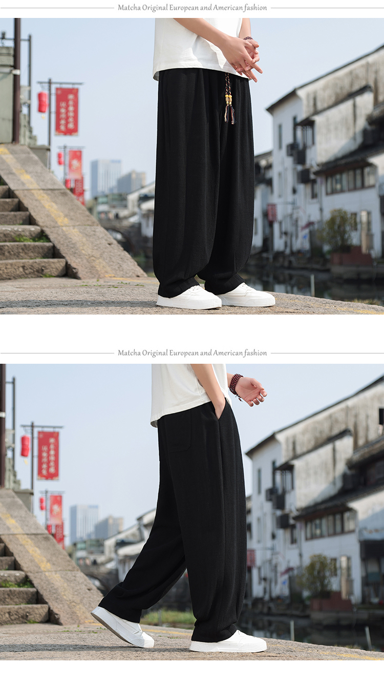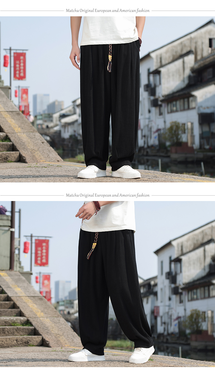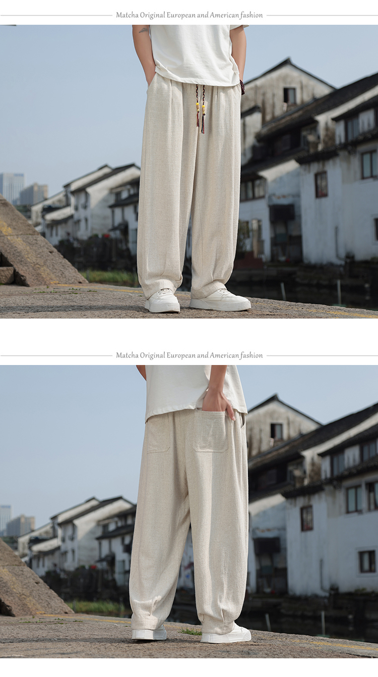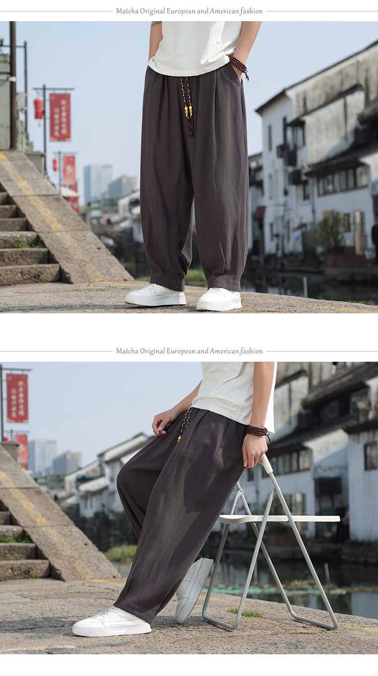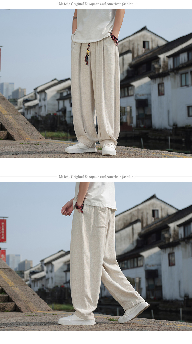 热卖亚麻裤子男夏季薄款2024新款新中式古风宽松大码棉麻直筒休闲裤潮