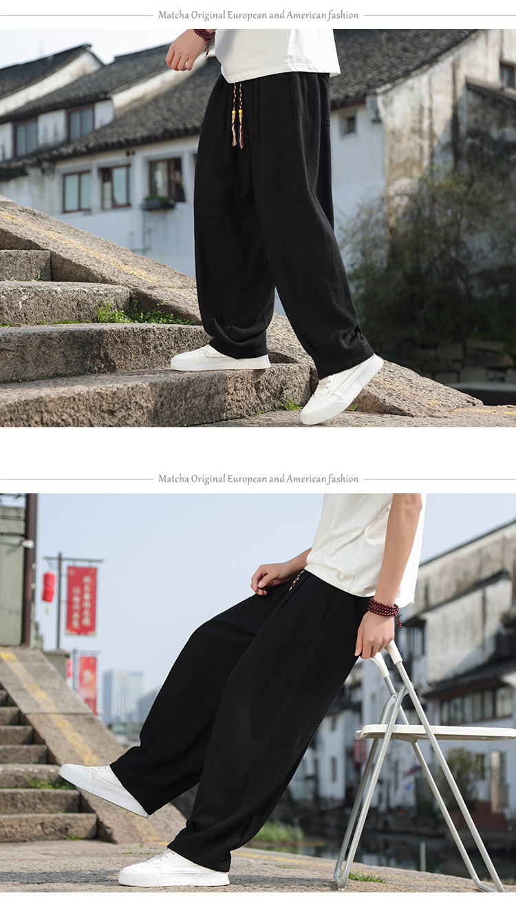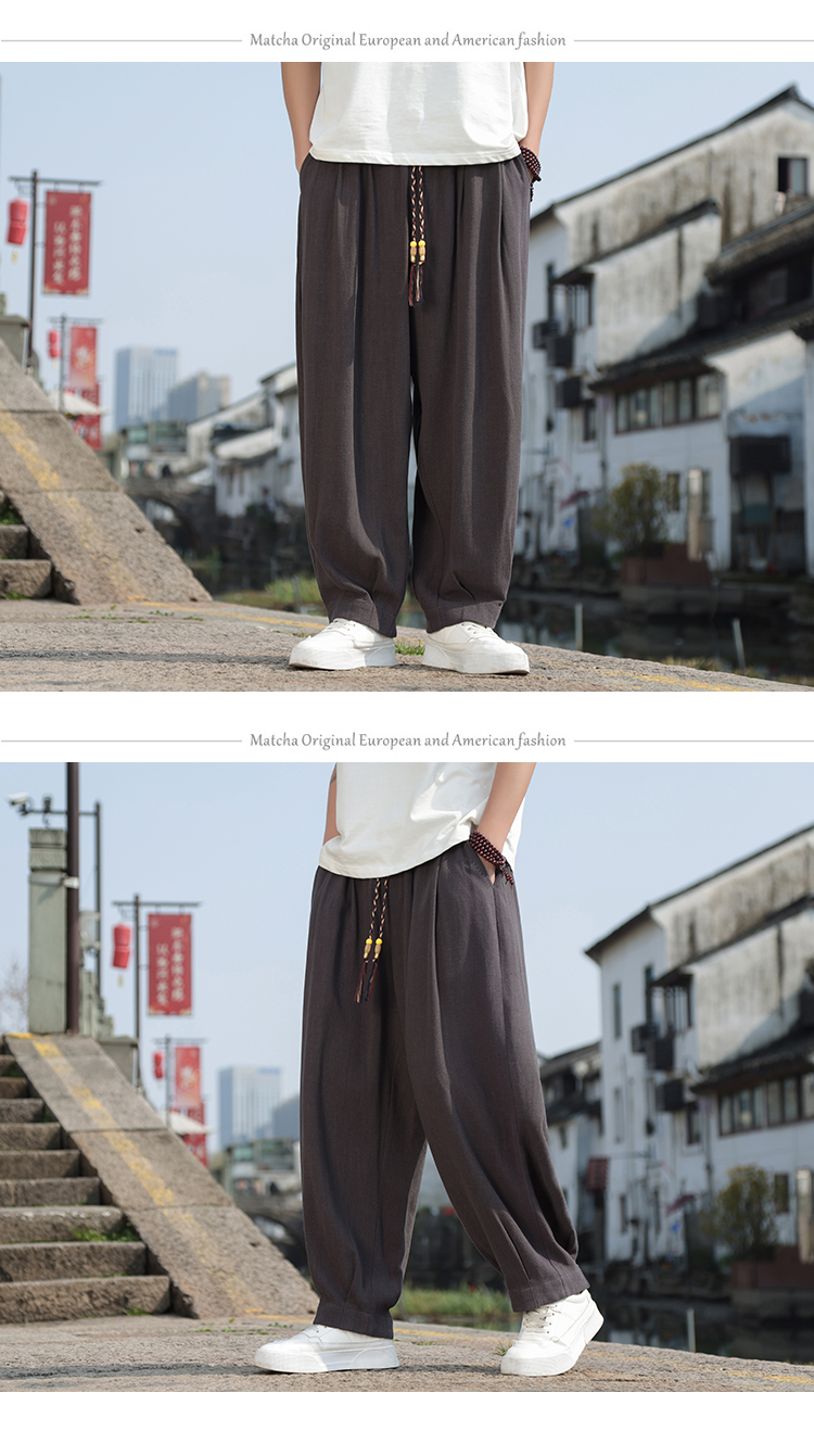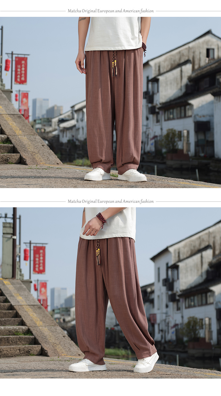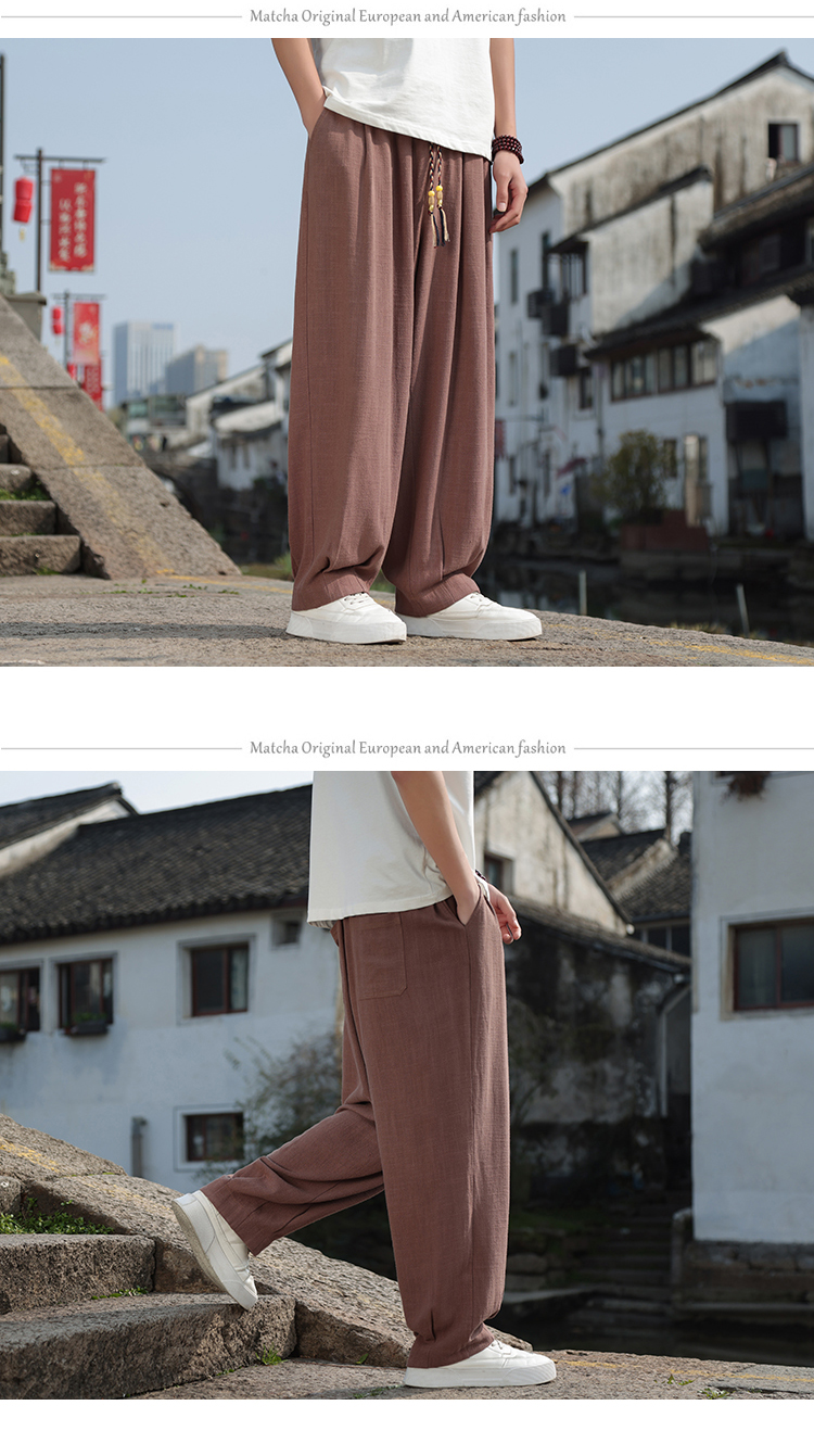 热卖亚麻裤子男夏季薄款2024新款新中式古风宽松大码棉麻直筒休闲裤潮