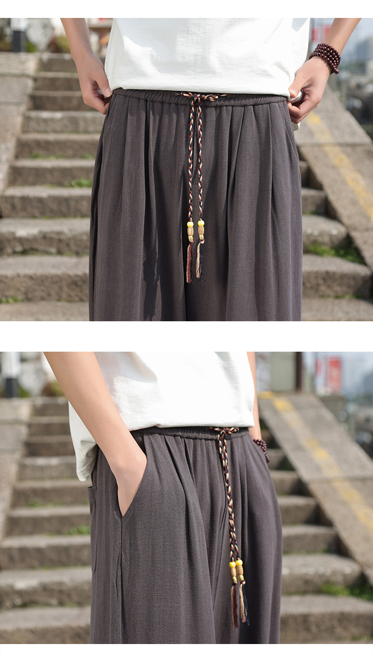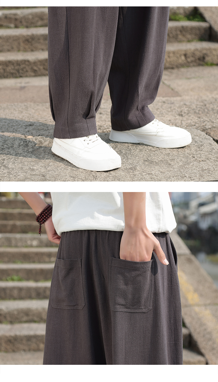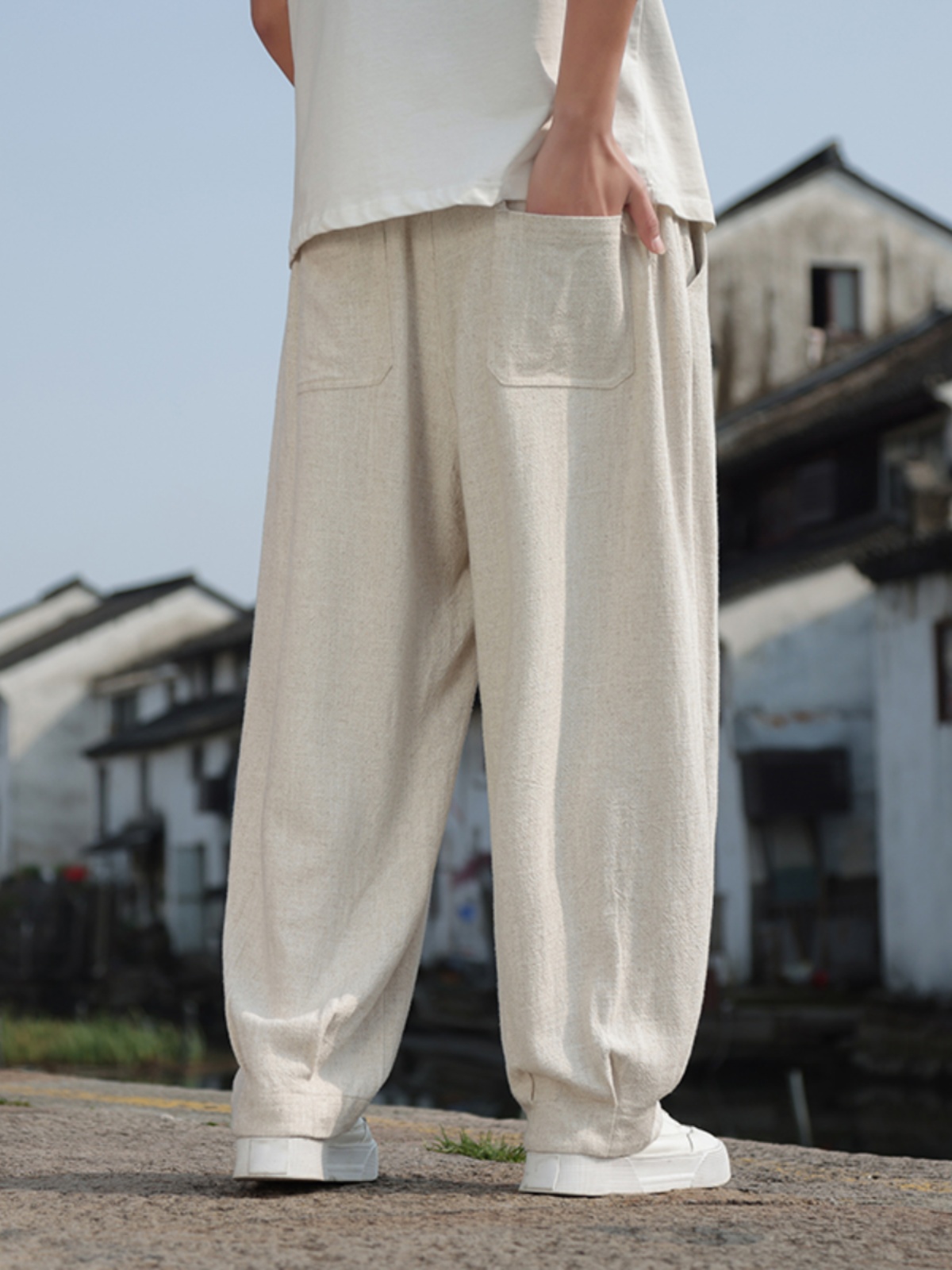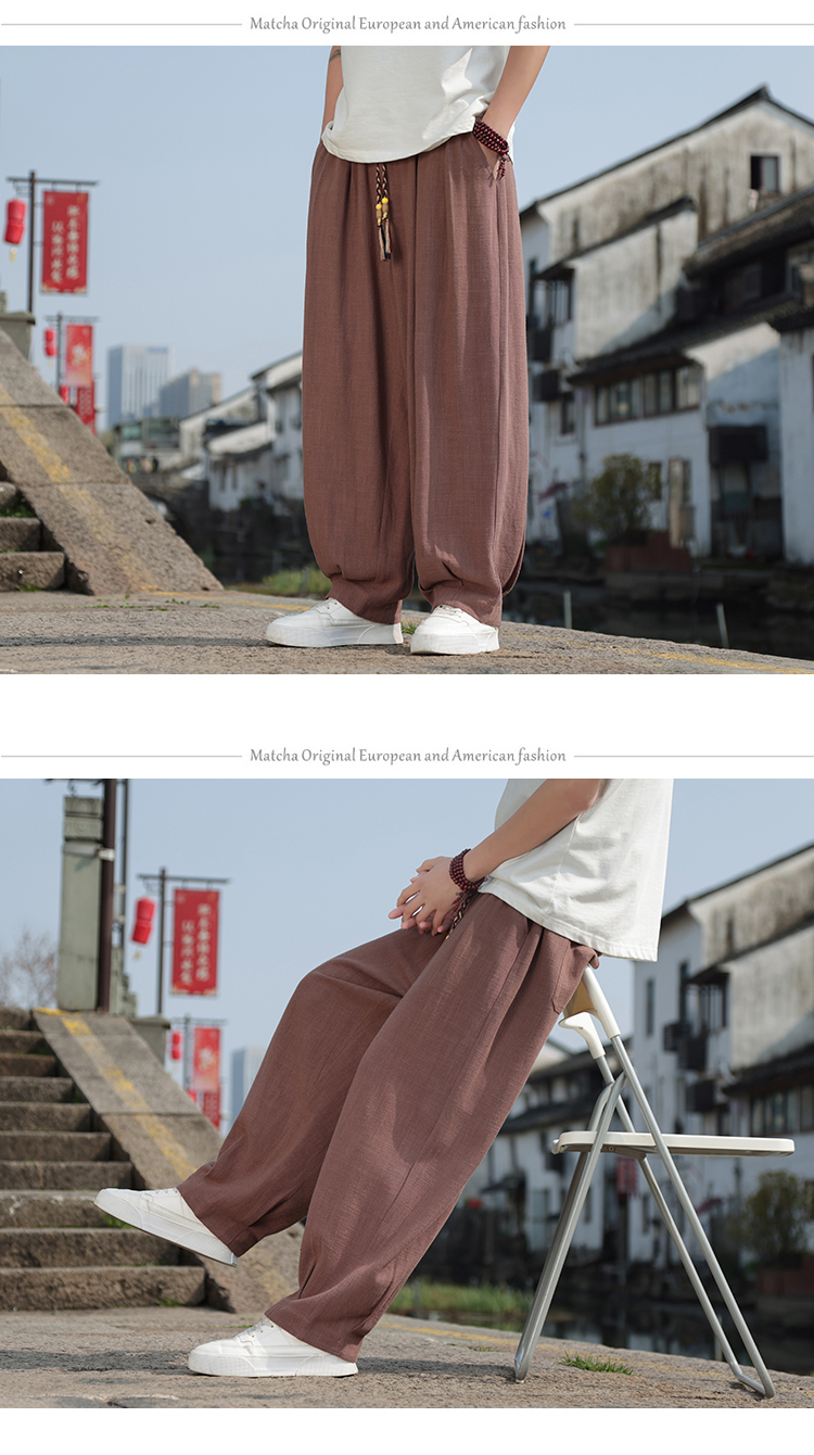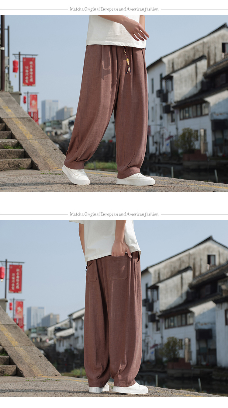 热卖亚麻裤子男夏季薄款2024新款新中式古风宽松大码棉麻直筒休闲裤潮