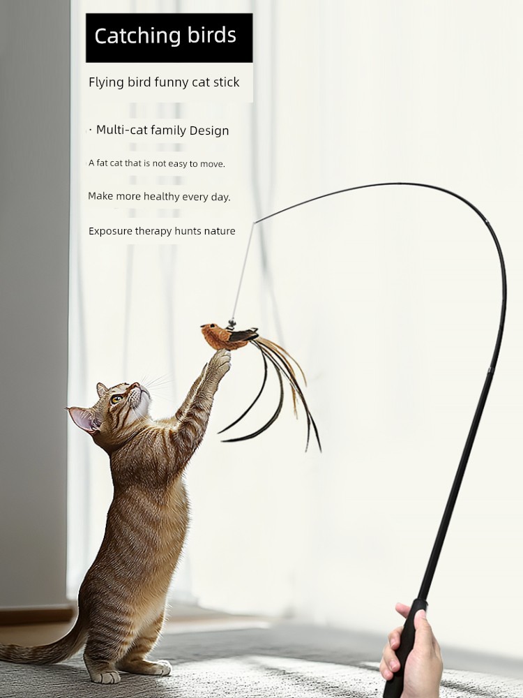 热卖可伸缩超长钓鱼竿飞鸟解闷逗猫棒