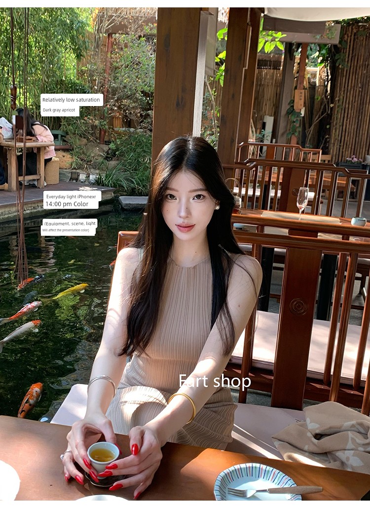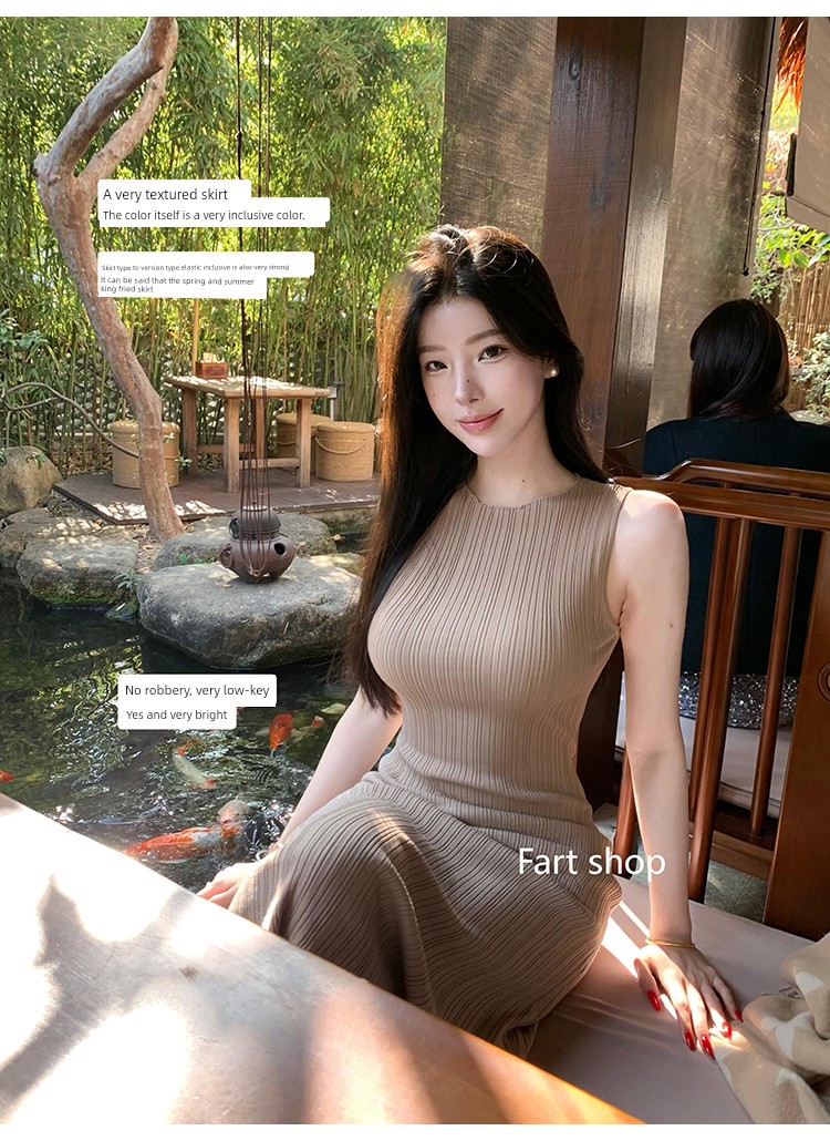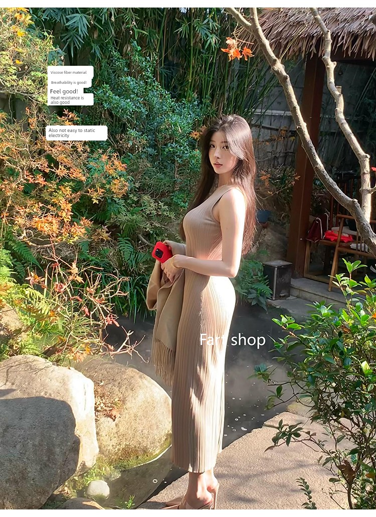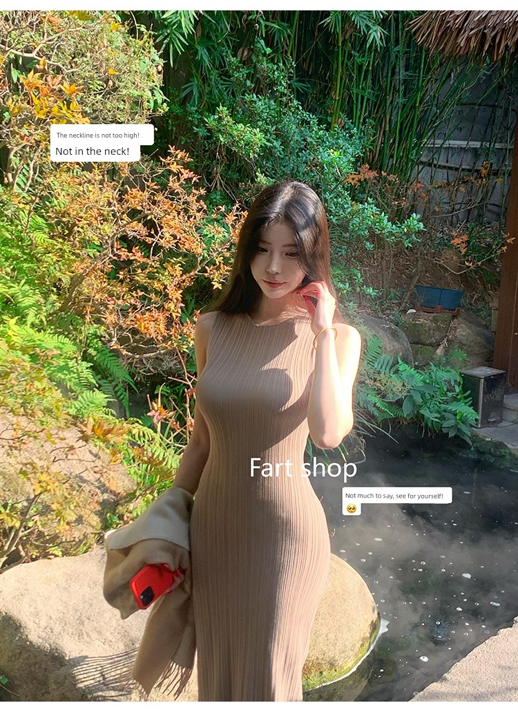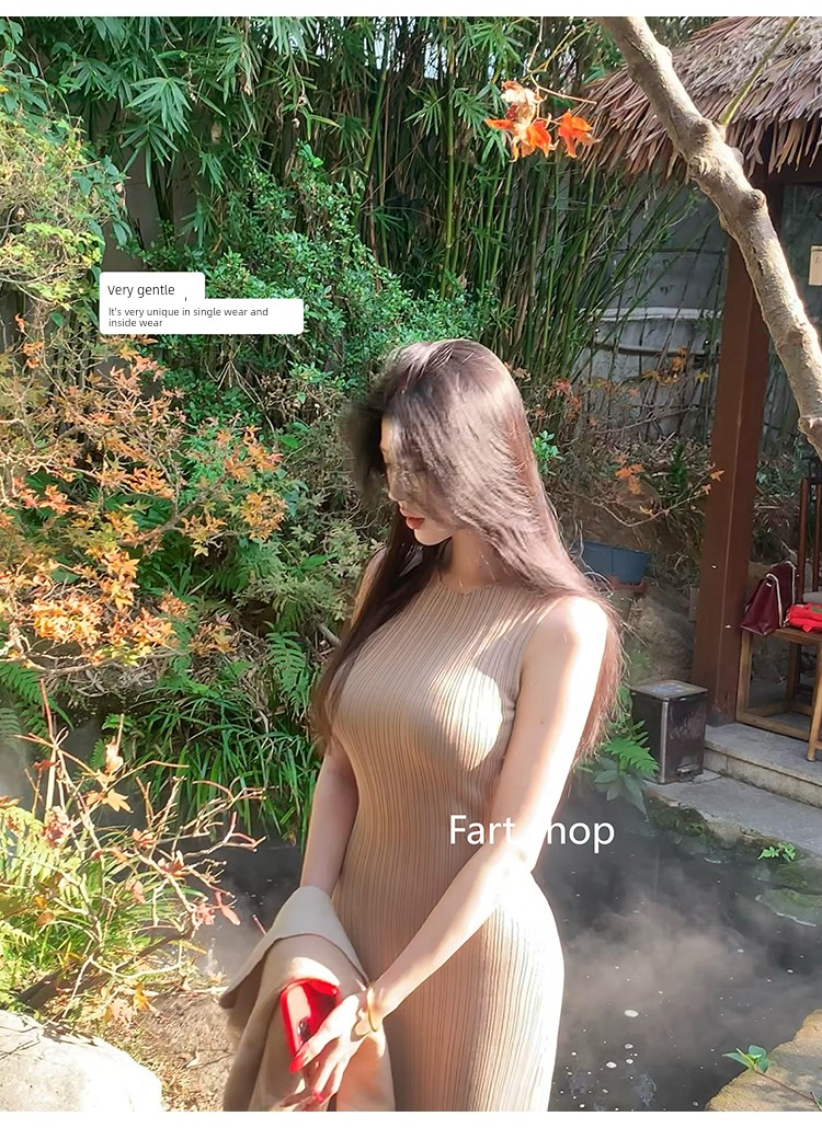 热卖【Fart Shop】温润如玉 无袖针织连衣裙女秋季修身气质包臀长裙子