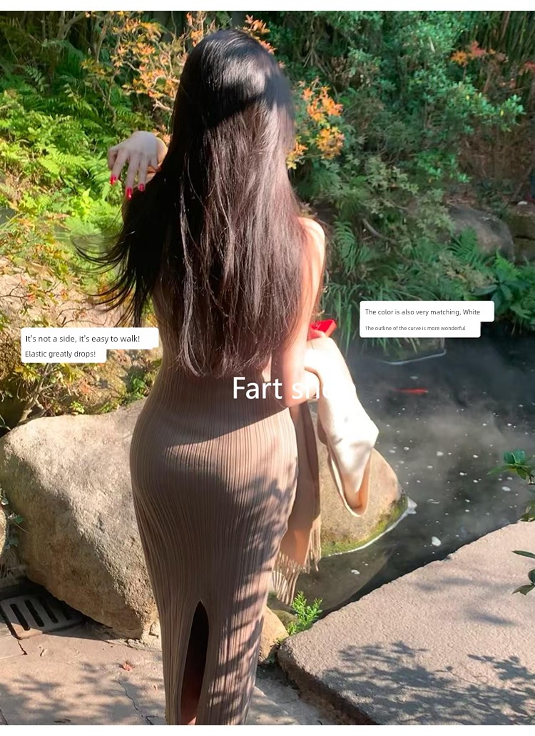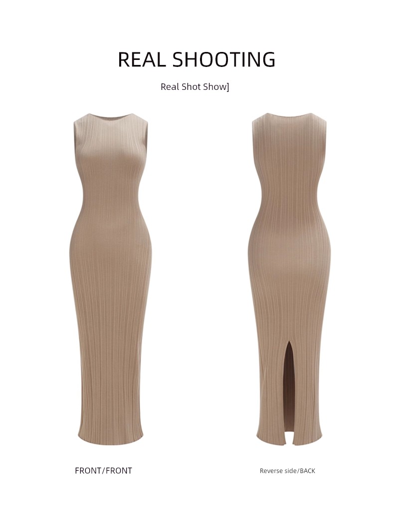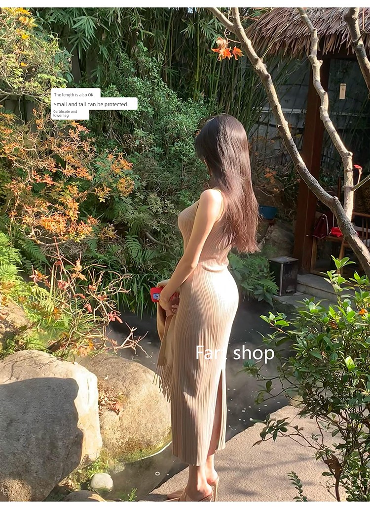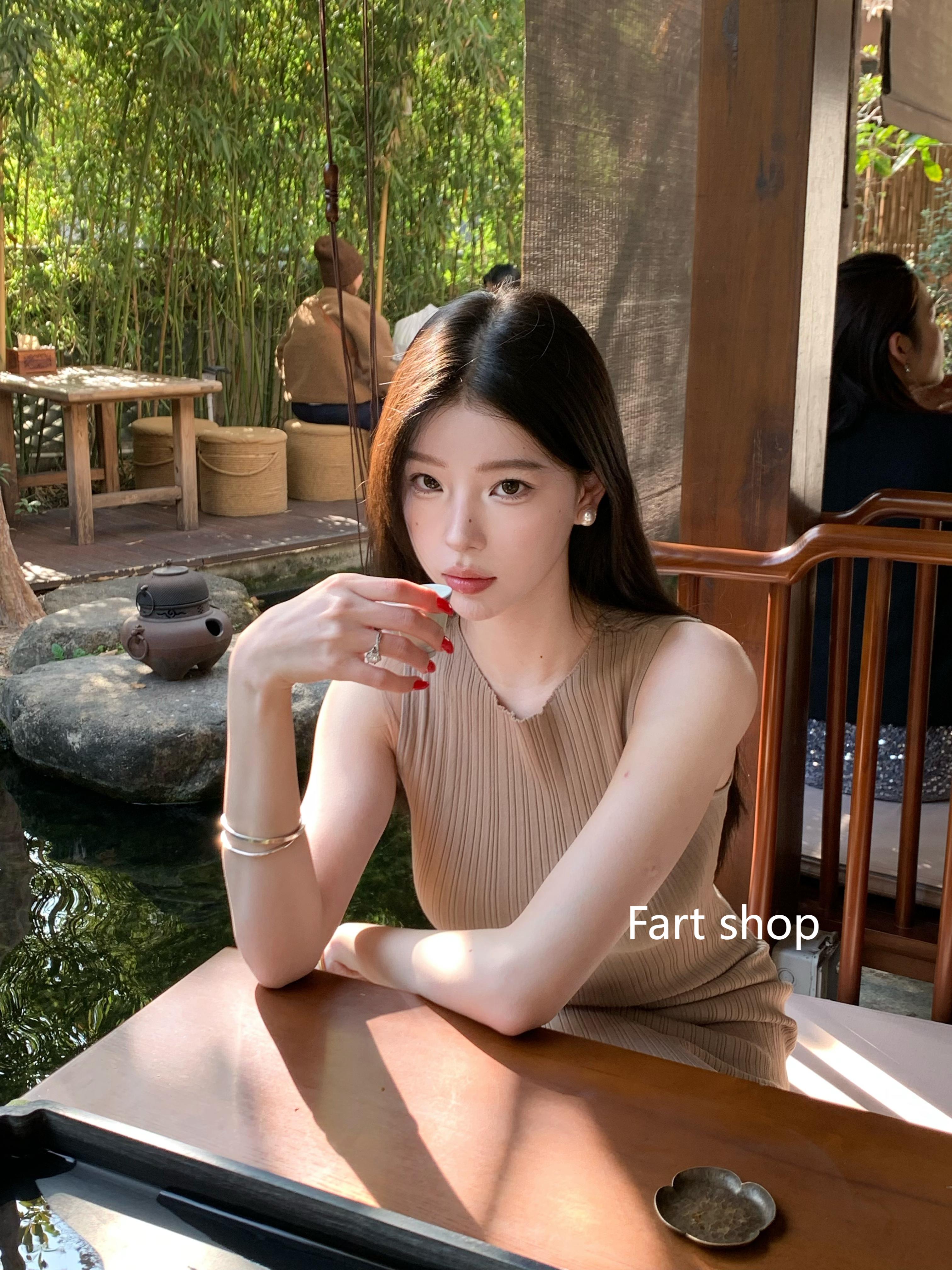 热卖【Fart Shop】温润如玉 无袖针织连衣裙女秋季修身气质包臀长裙子