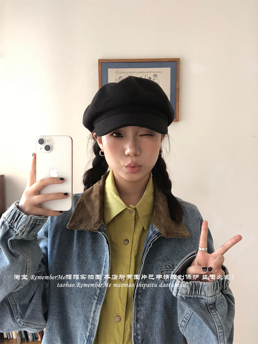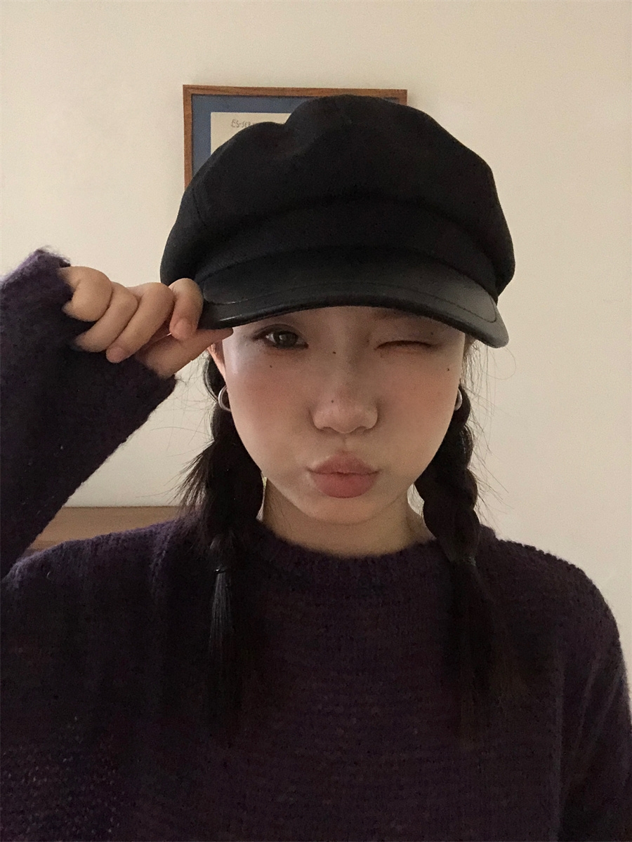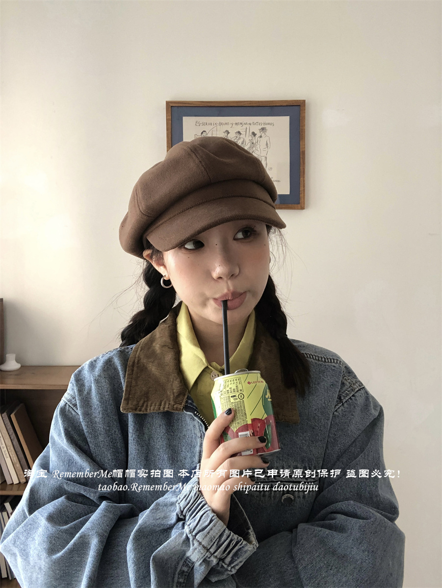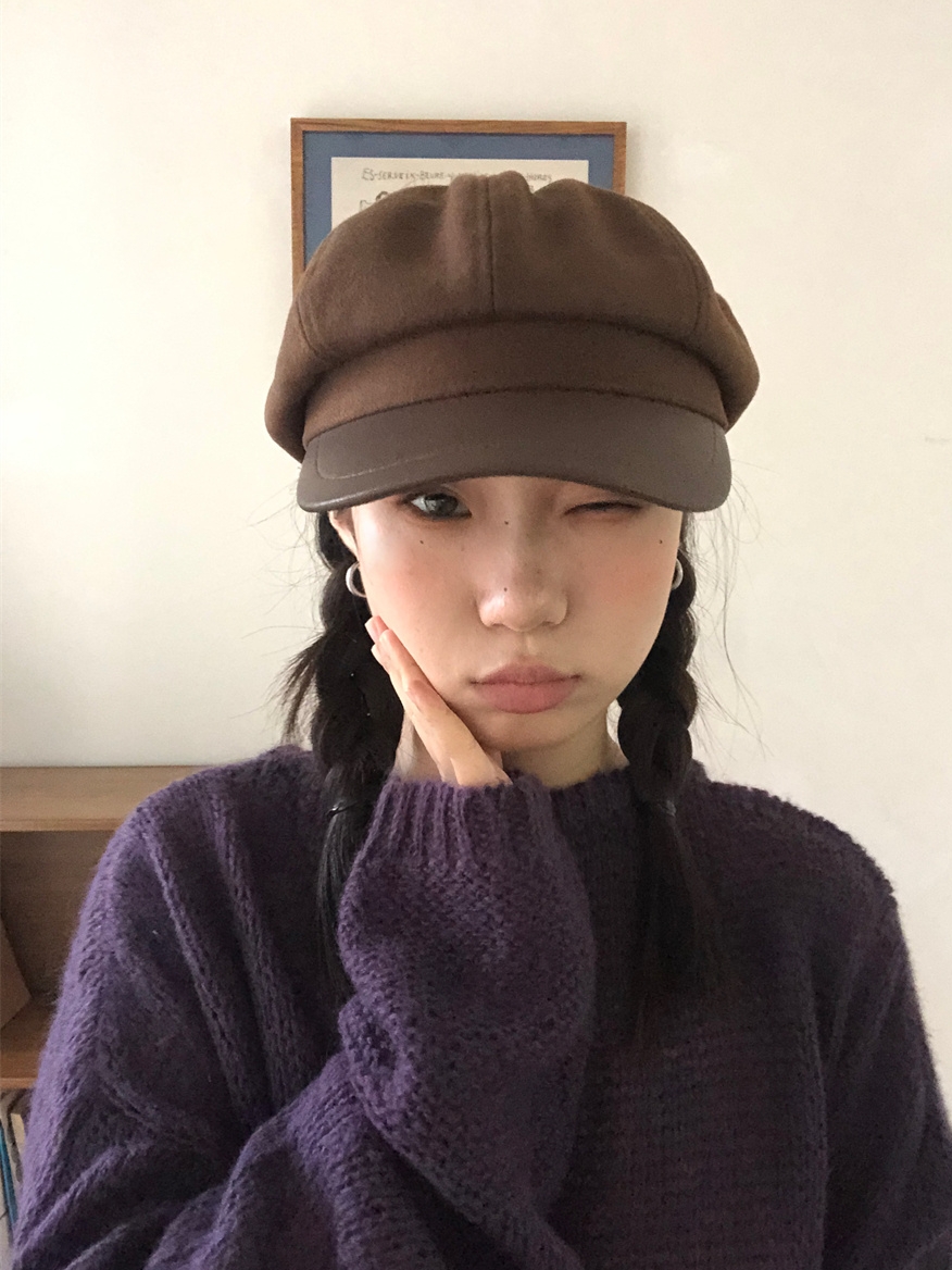 热卖秋冬复古毛呢显脸小咖啡色八角帽