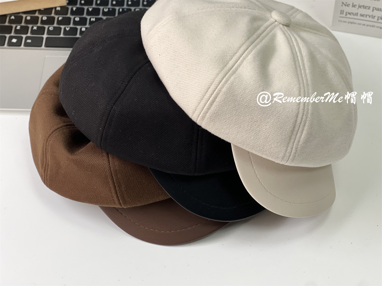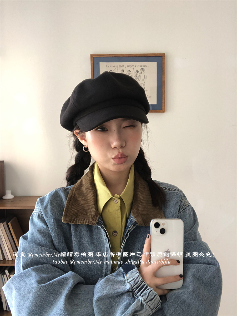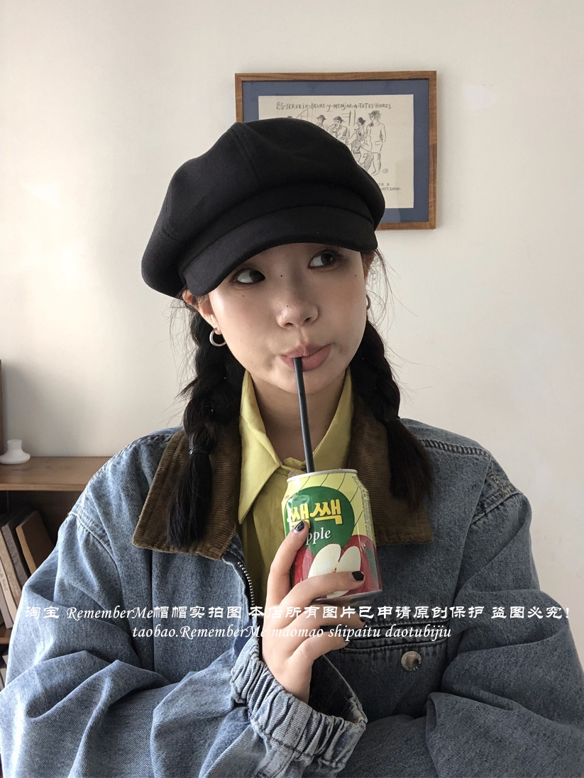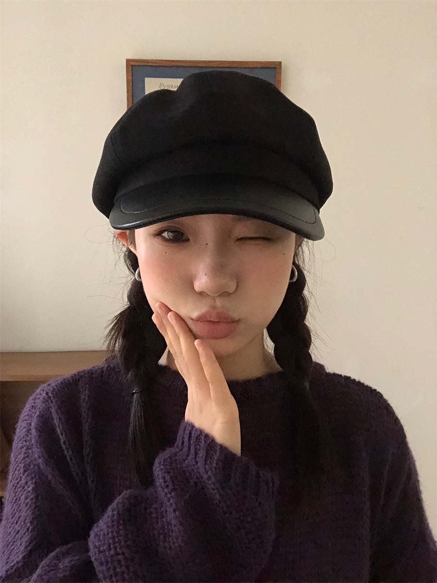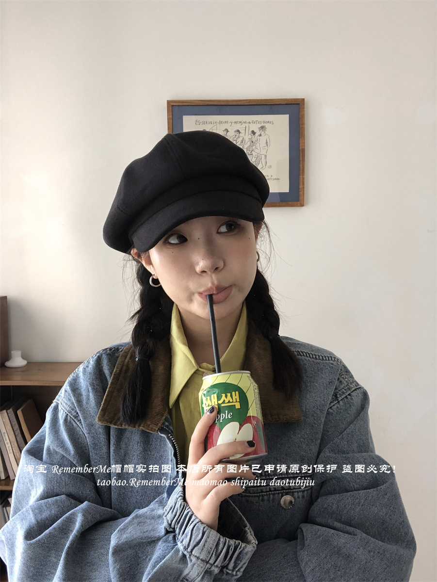 热卖秋冬复古毛呢显脸小咖啡色八角帽