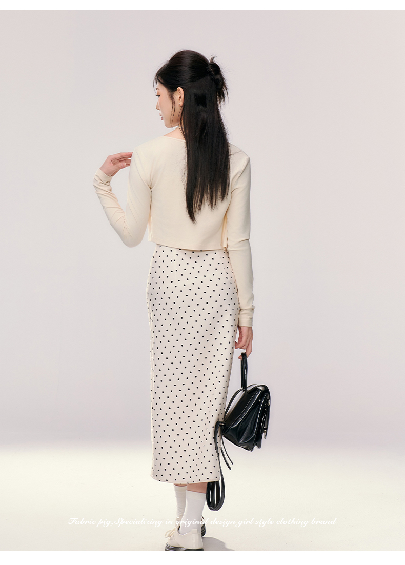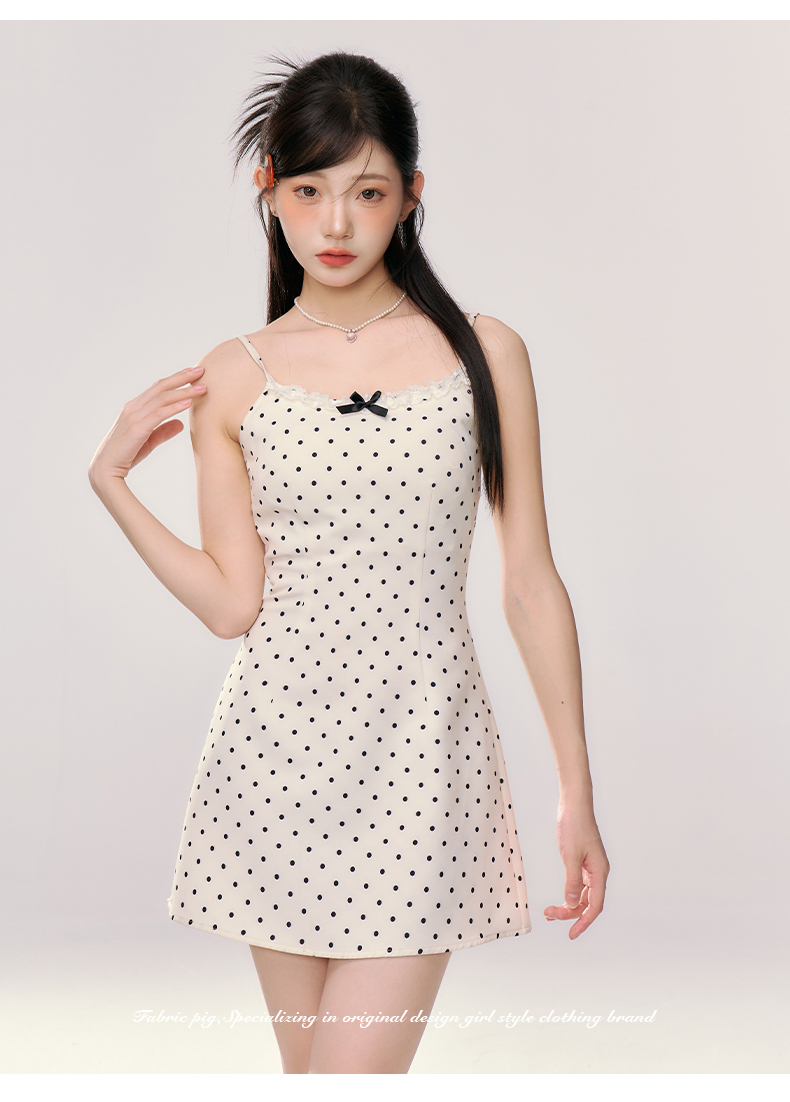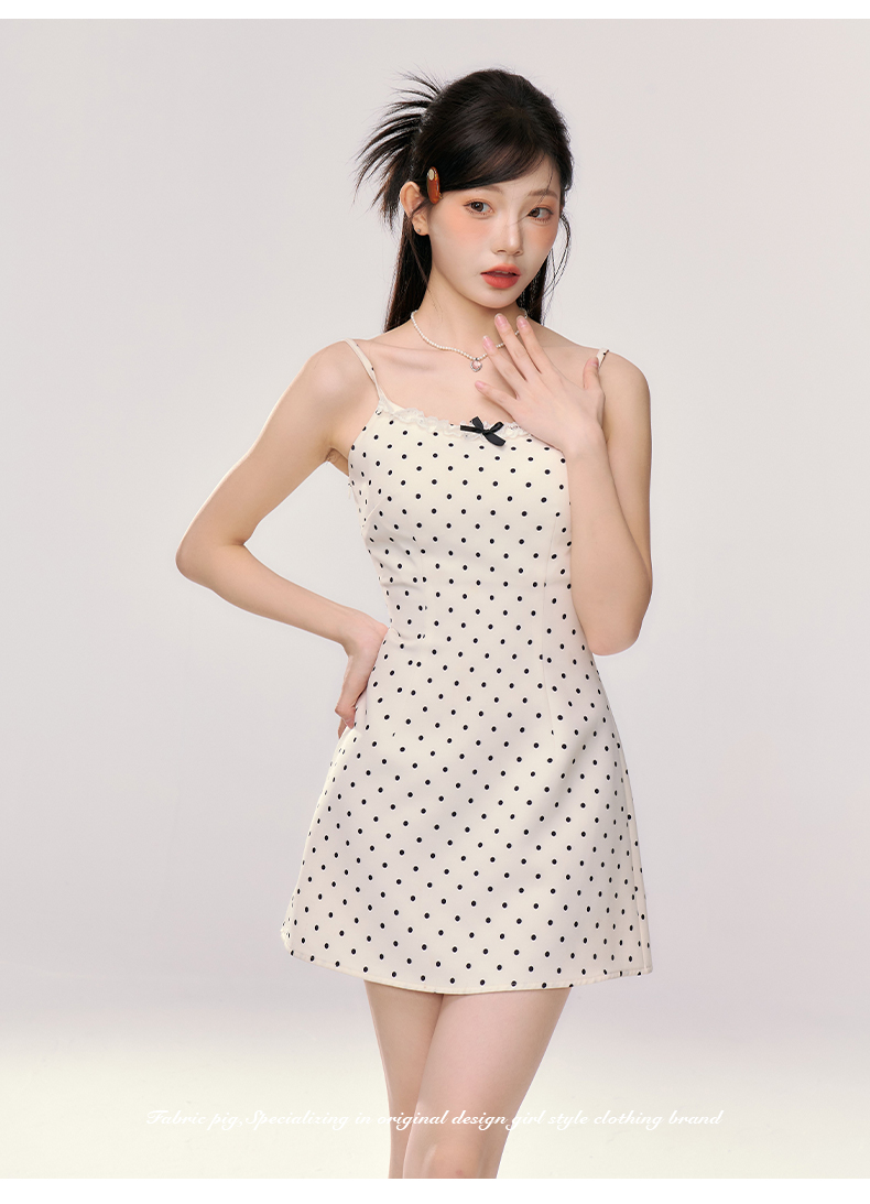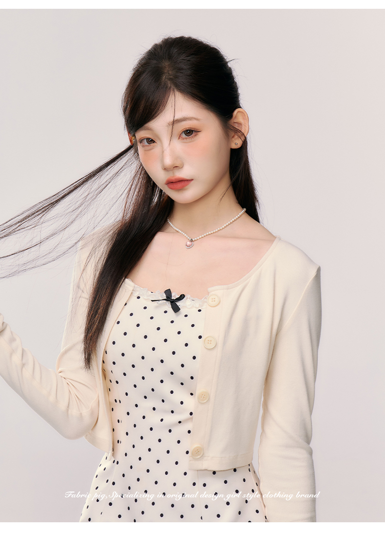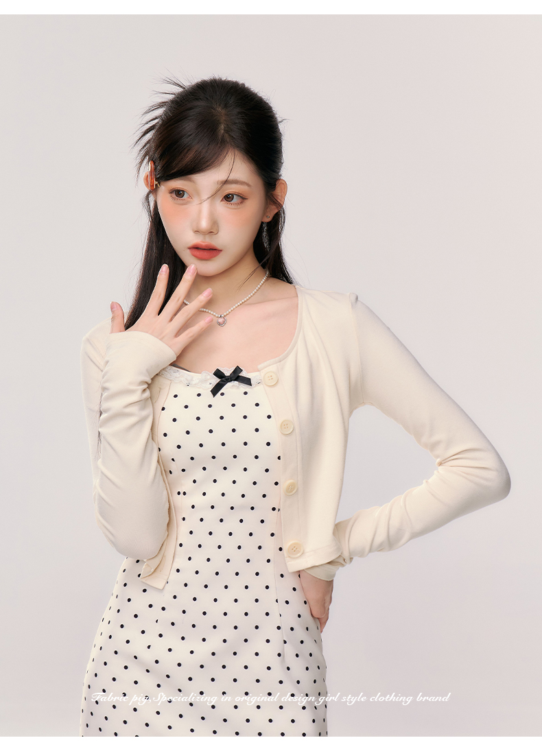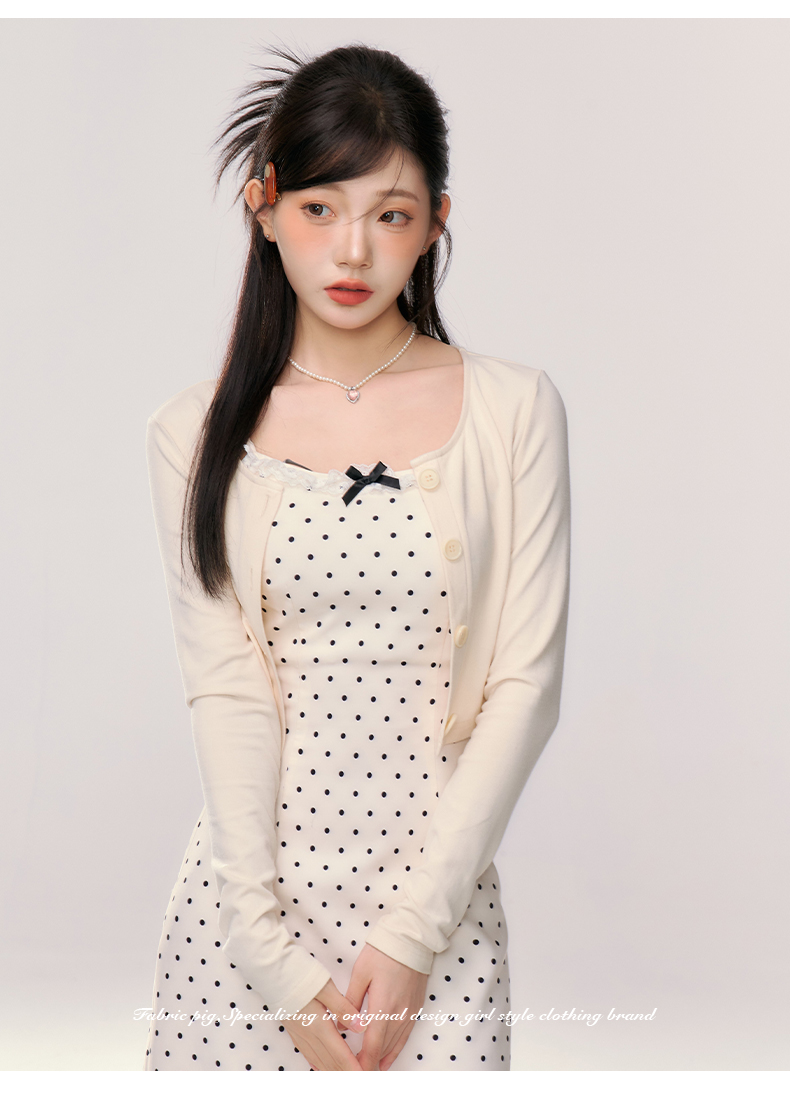 热卖织物猪 波波奶茶 波点吊带连衣裙套装女早秋流行穿搭开衫两件套