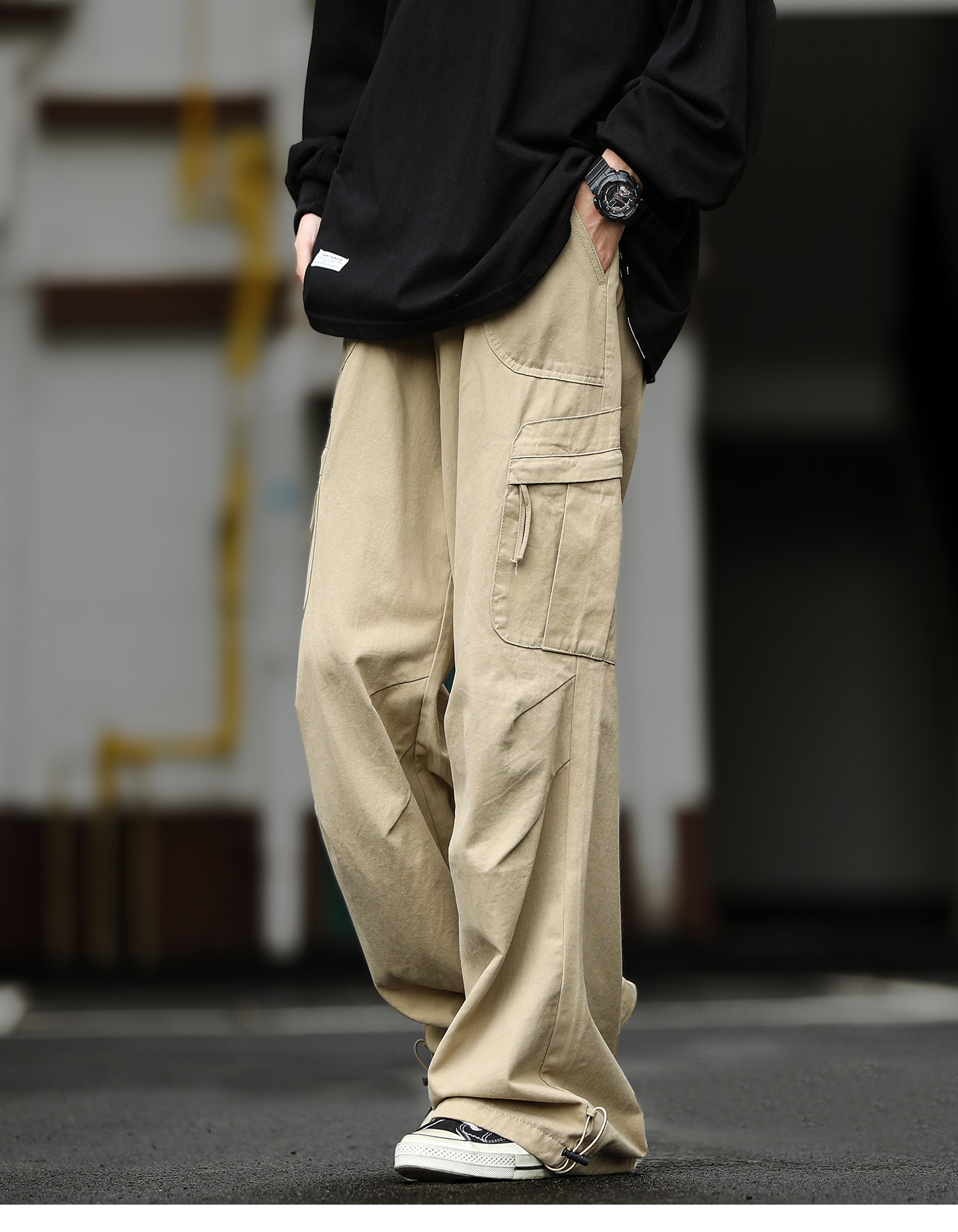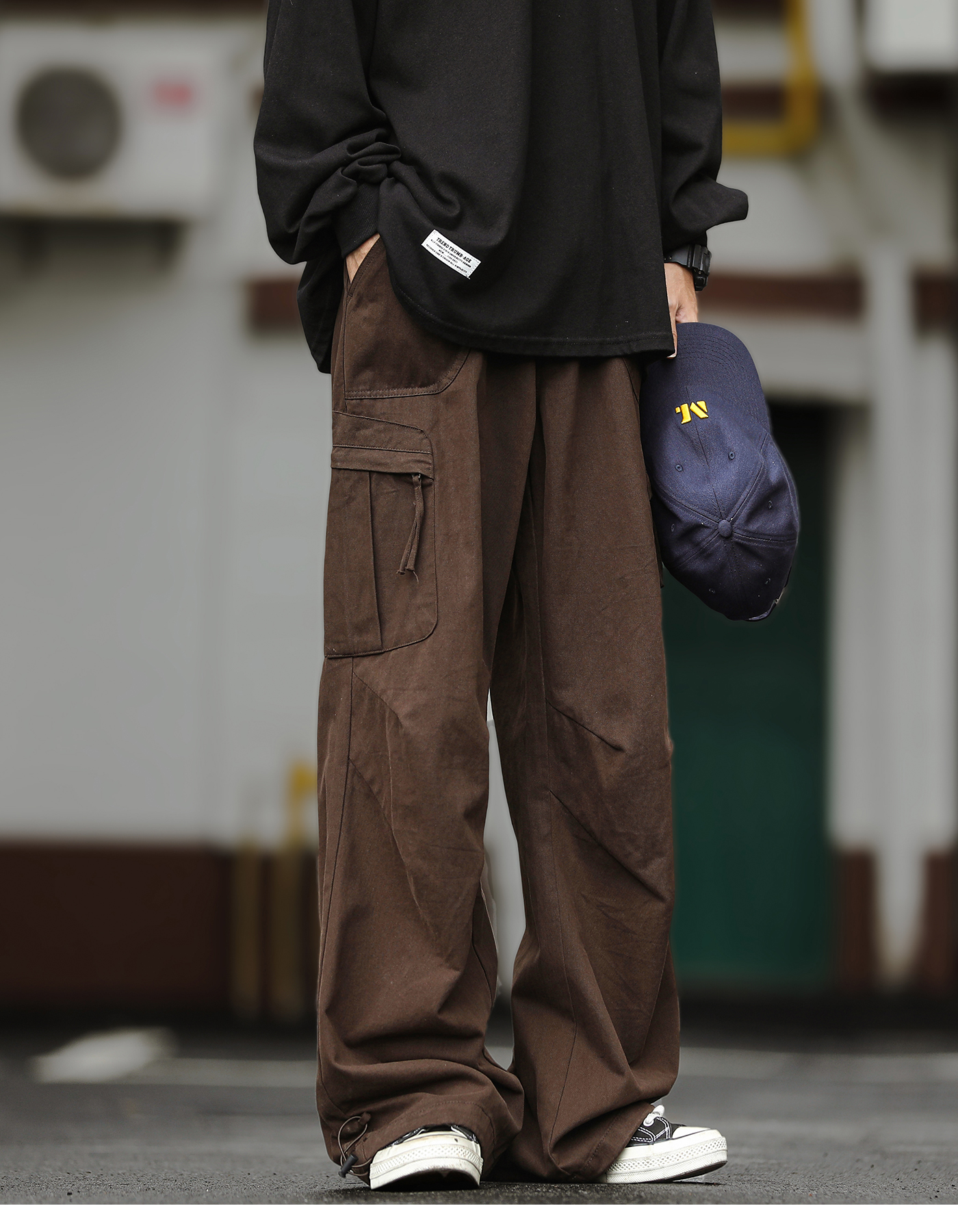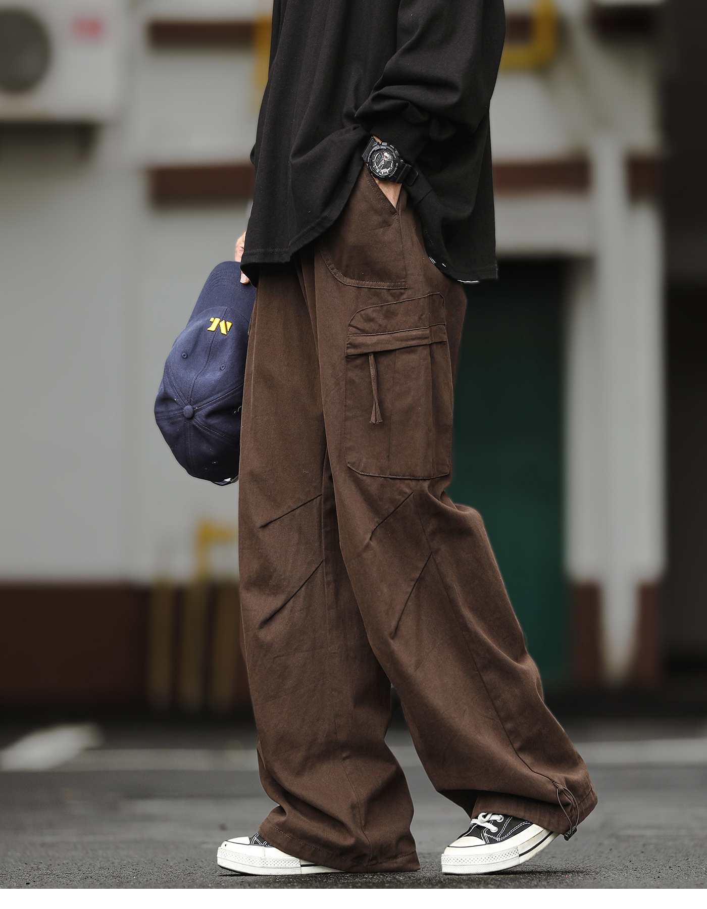 热卖工装裤男棕色直筒宽松伞兵裤秋男生裤子阔腿2025新款休闲长裤男款