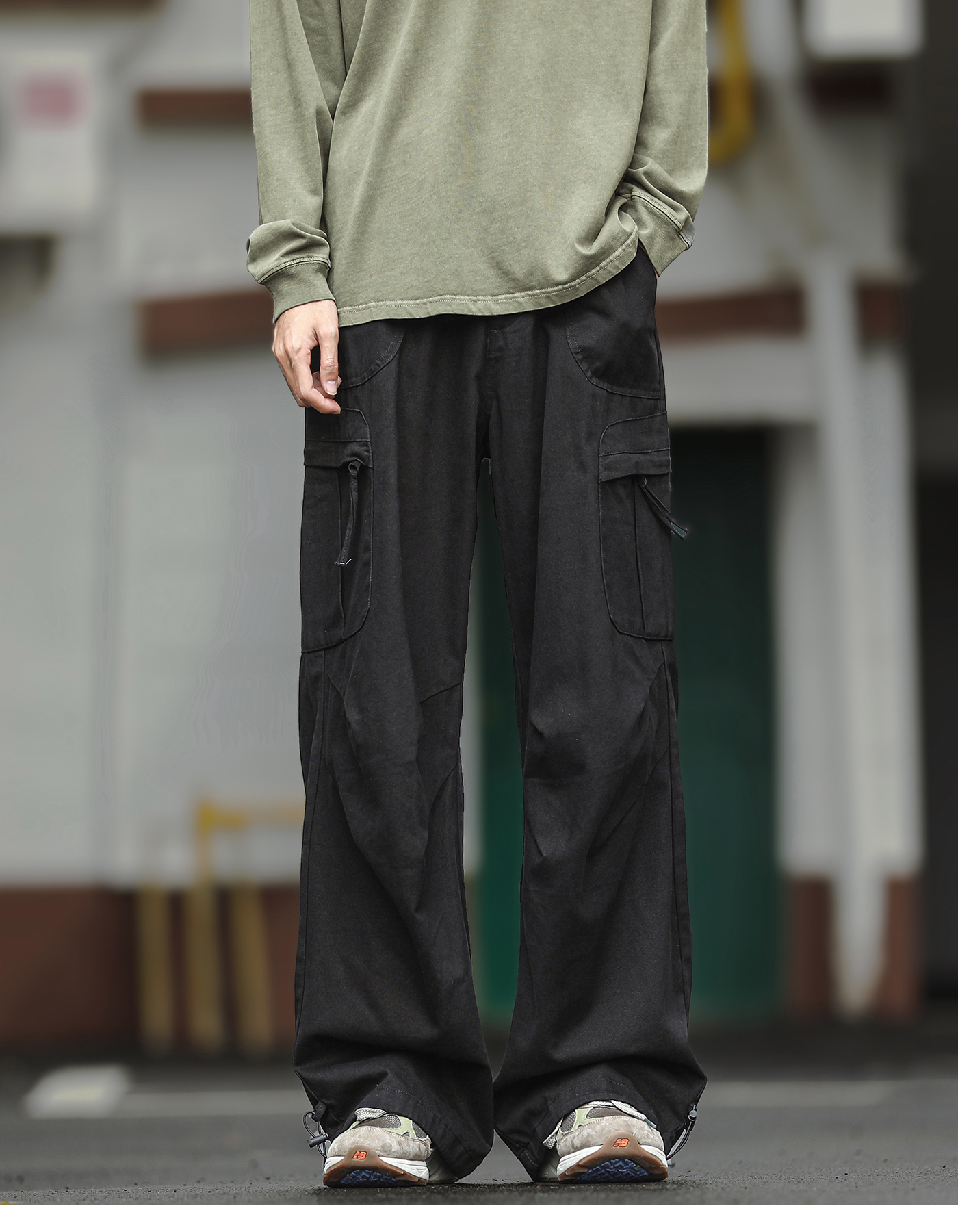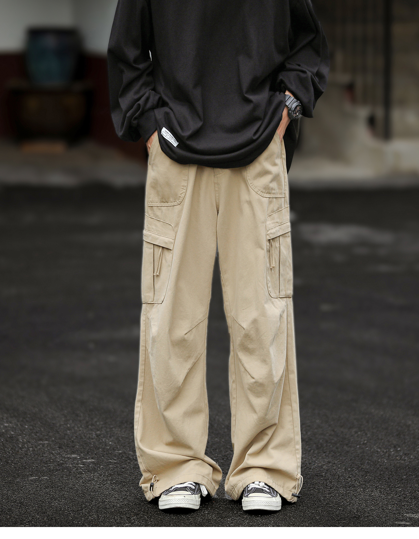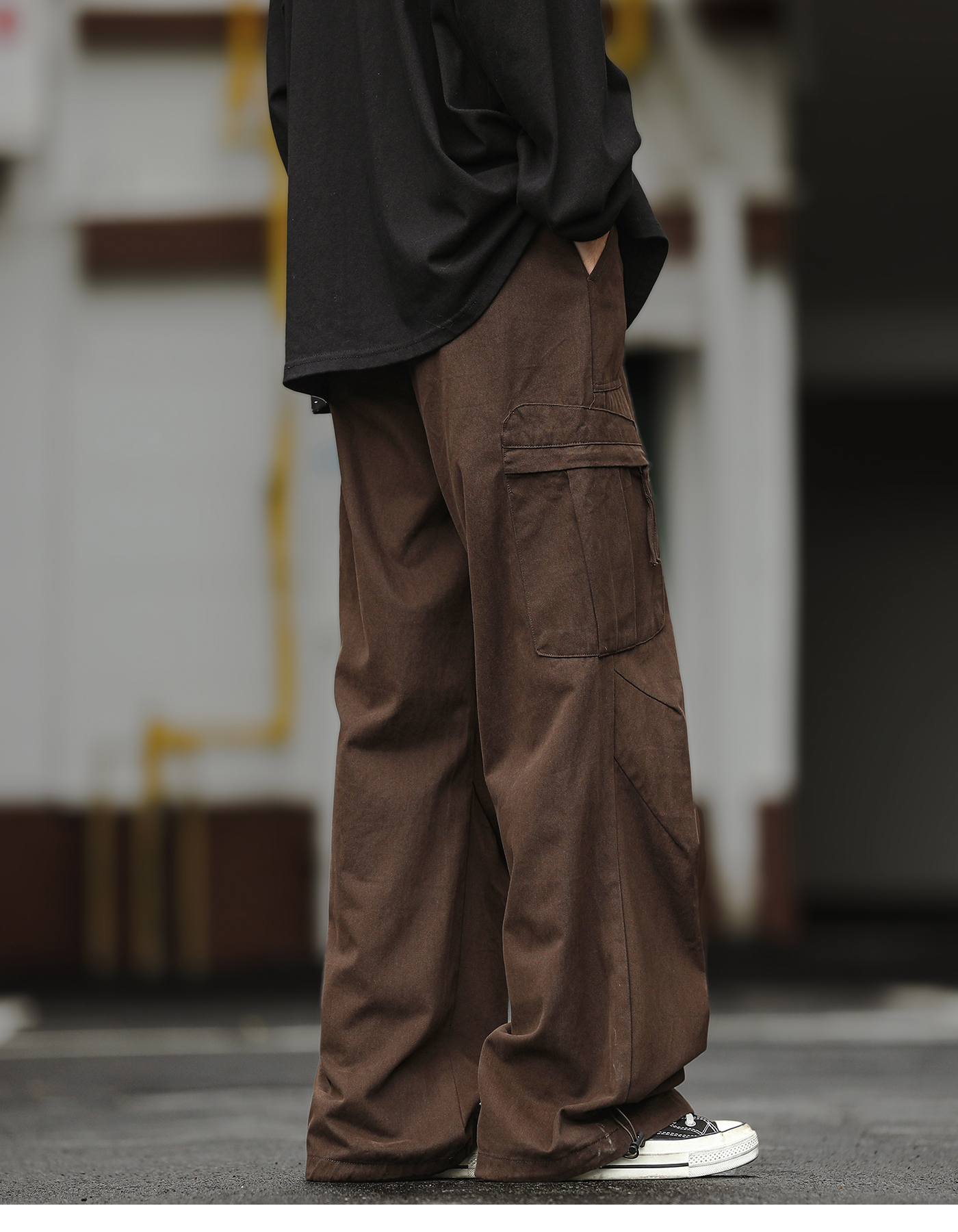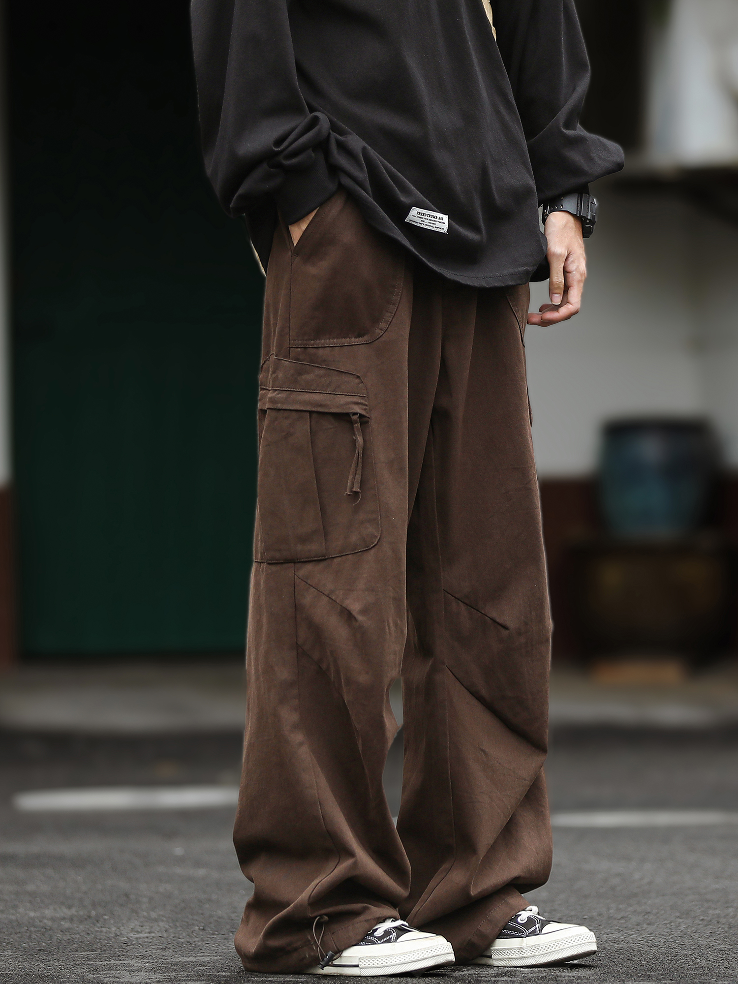 热卖工装裤男棕色直筒宽松伞兵裤秋男生裤子阔腿2025新款休闲长裤男款