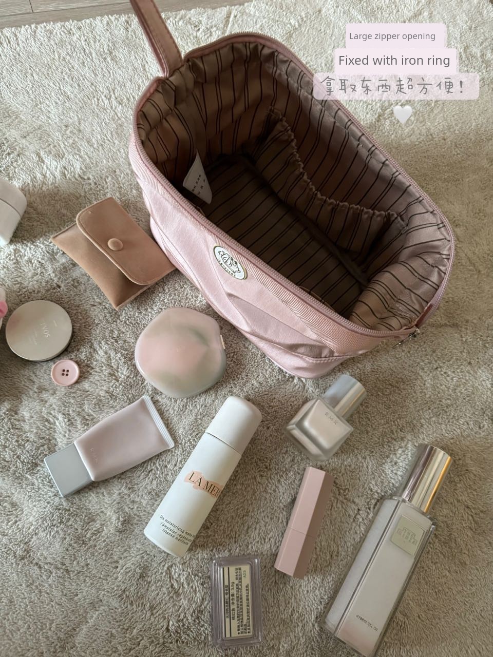 When opening the cosmetic bag, the opening is bigger and more regular, which is convenient to find and get things.