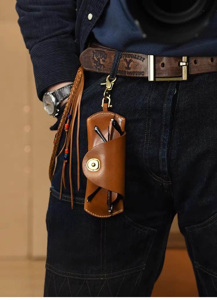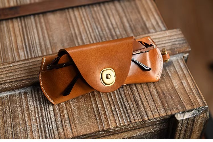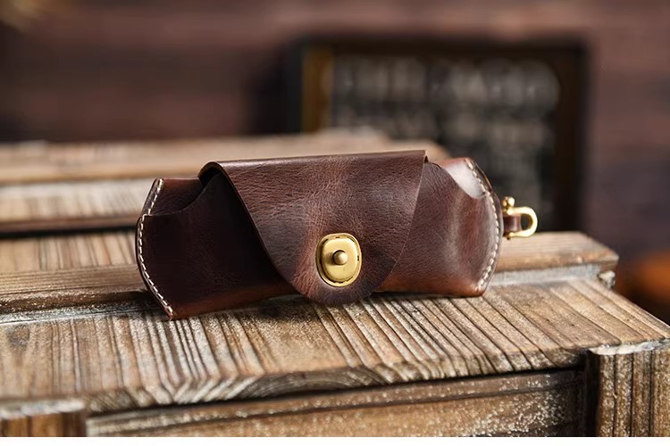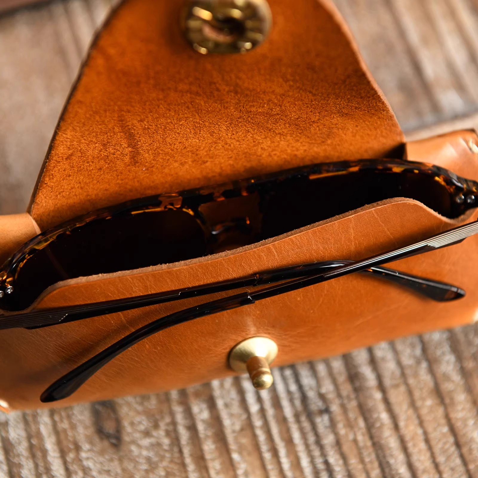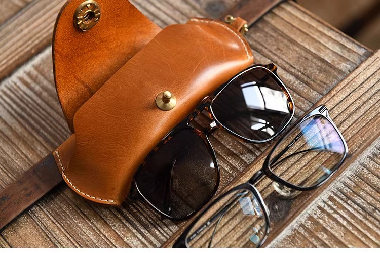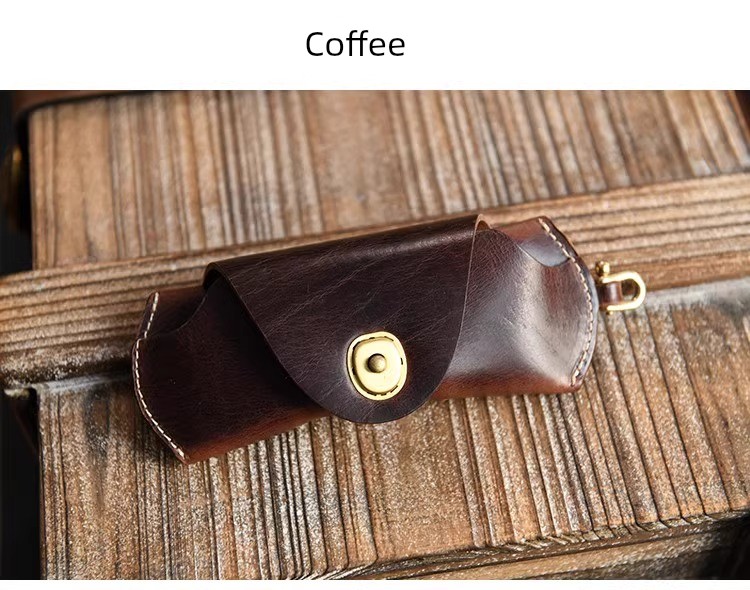 热卖美式复古真皮质感眼镜盒男士便携挂包近视镜墨镜收纳盒抗压太阳镜