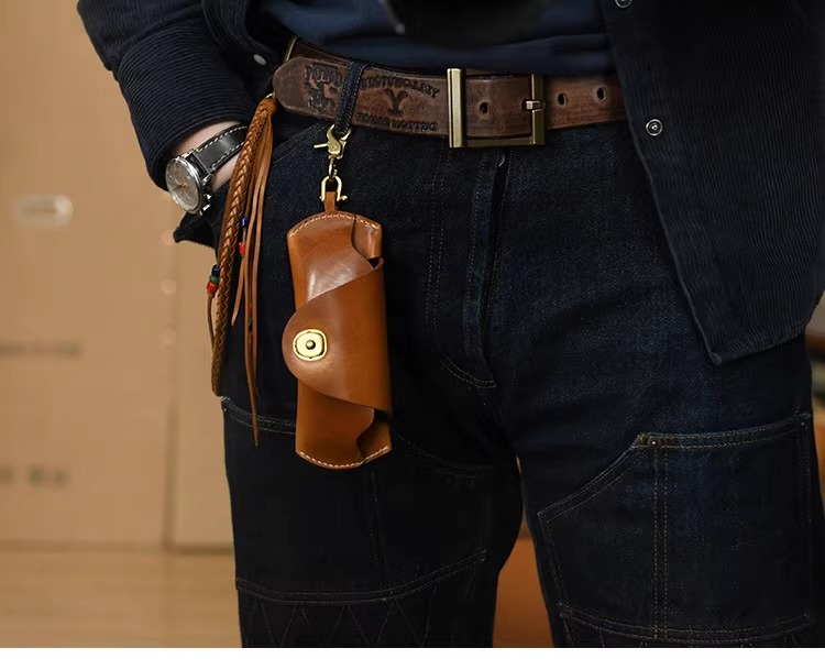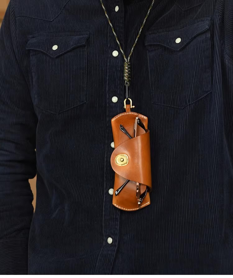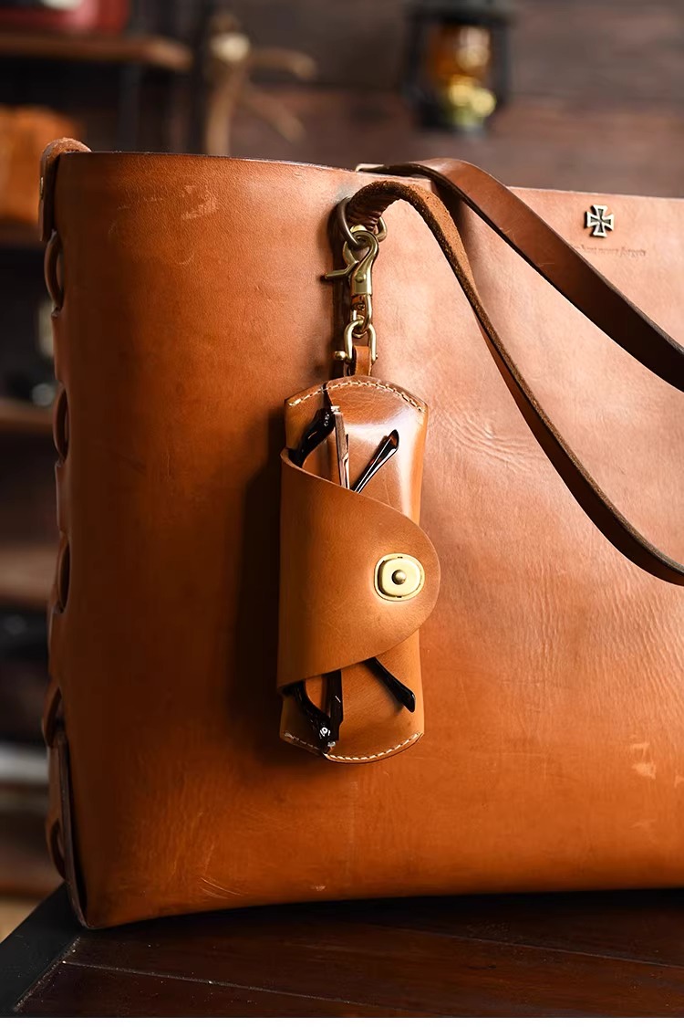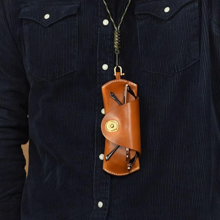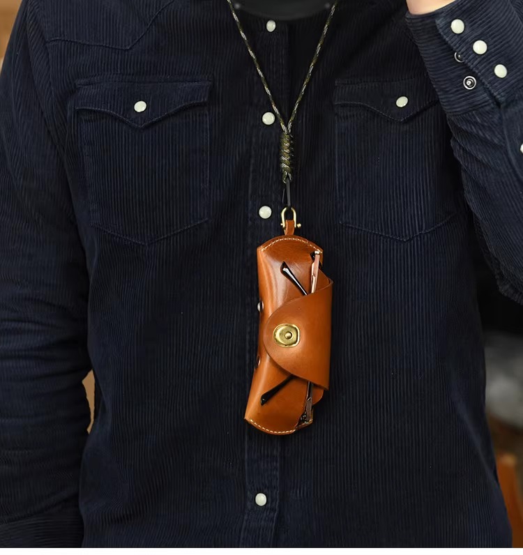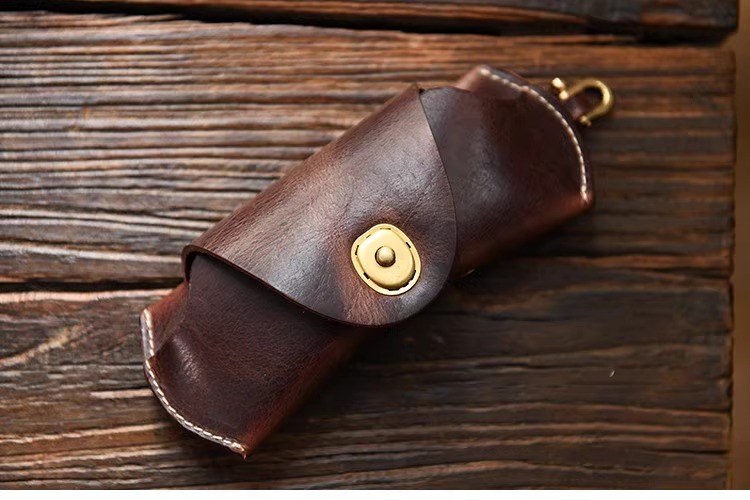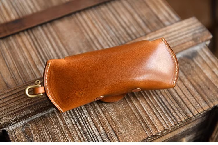 热卖美式复古真皮质感眼镜盒男士便携挂包近视镜墨镜收纳盒抗压太阳镜