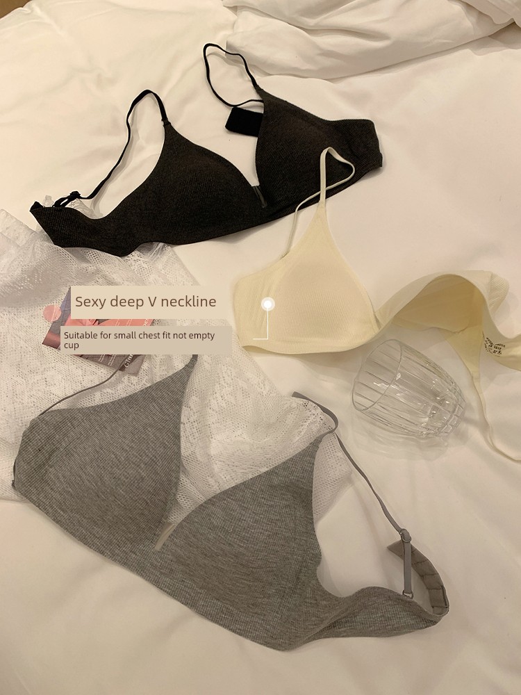 热卖馨帮帮Bra 无痕螺纹亲肤三角杯内衣女薄款舒适透气小胸美背文胸罩