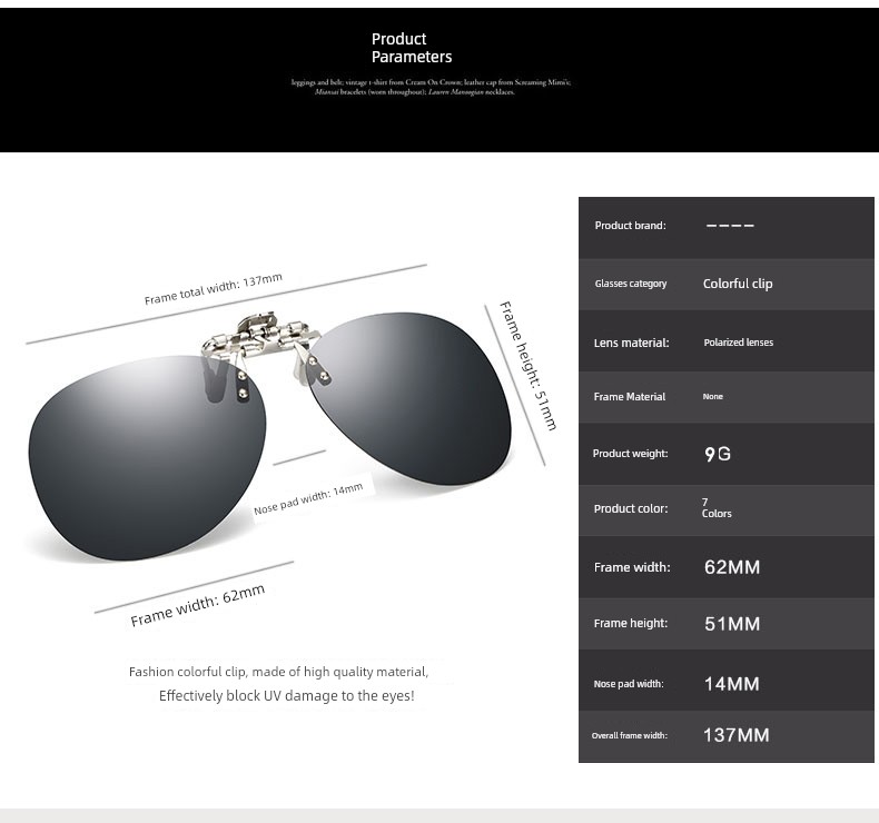 热卖近视太阳镜夹片偏光镜夹片钓鱼镜司机镜男女太阳眼镜片墨镜夹片
