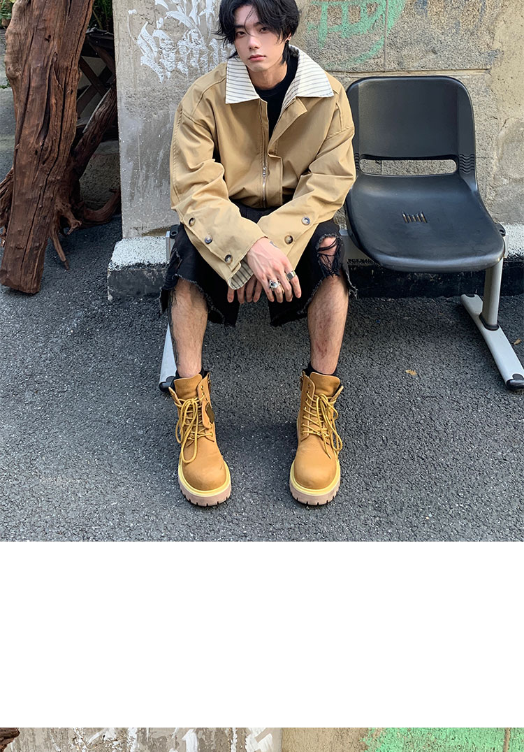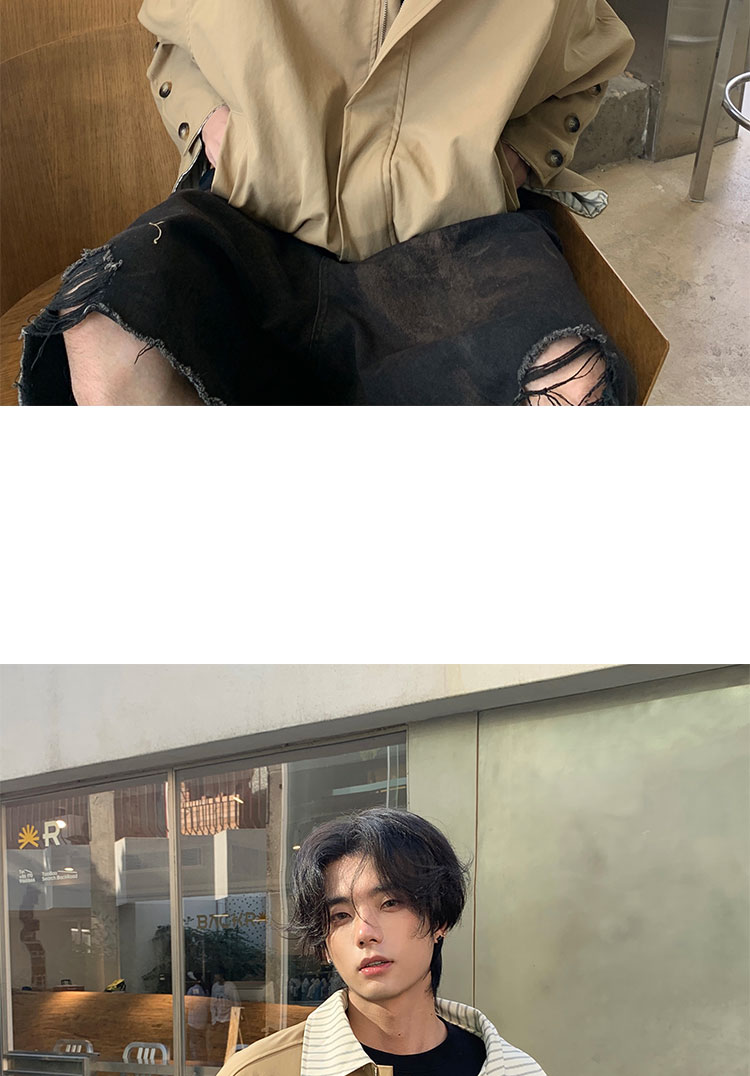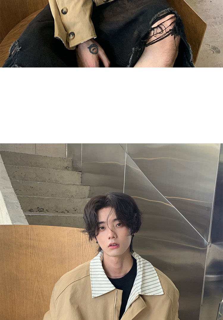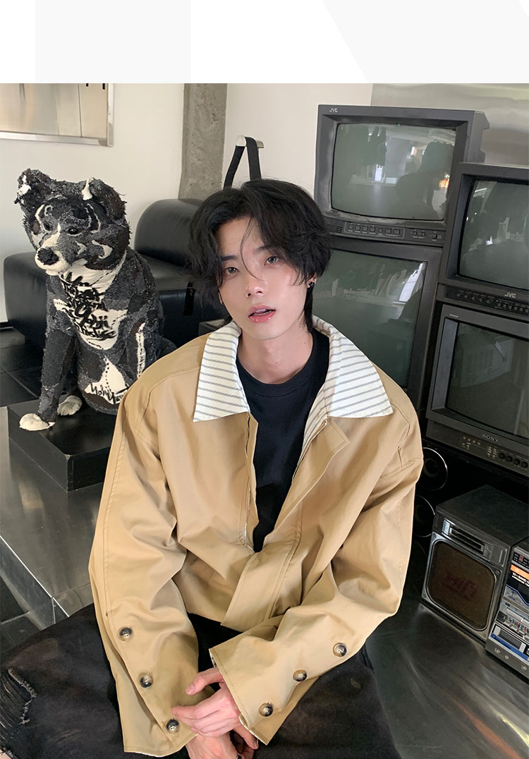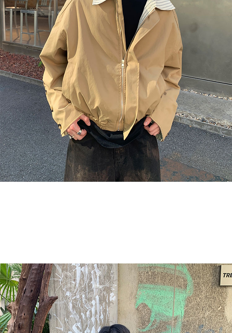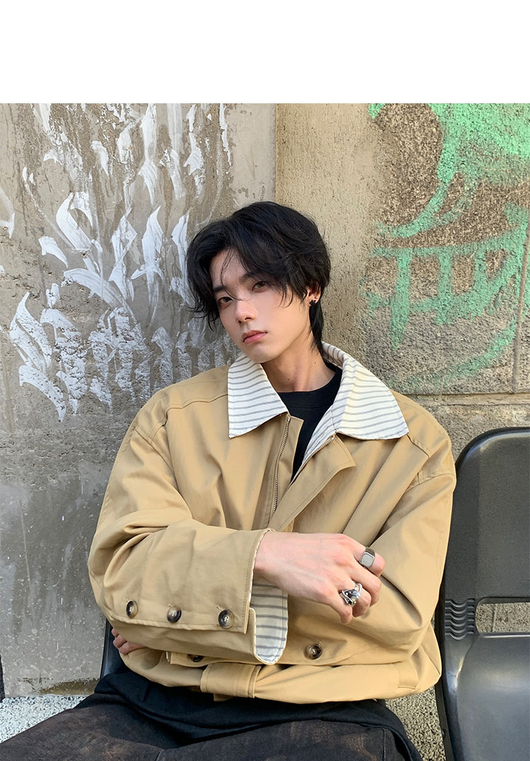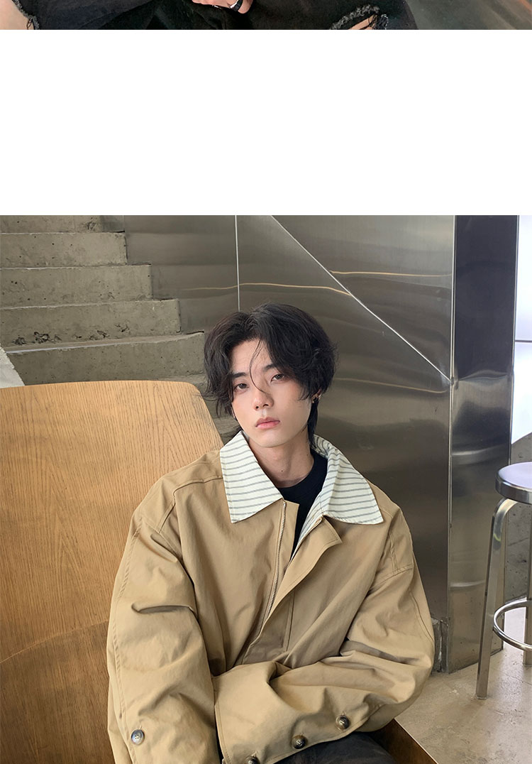 热卖K09sauce条纹假两件外套男春秋美式复古廓形潮流高级感飞行员夹克