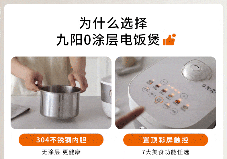 热卖九阳电饭煲小型1-2人家用迷你电饭锅0涂层不锈钢正品烹饪机16N8