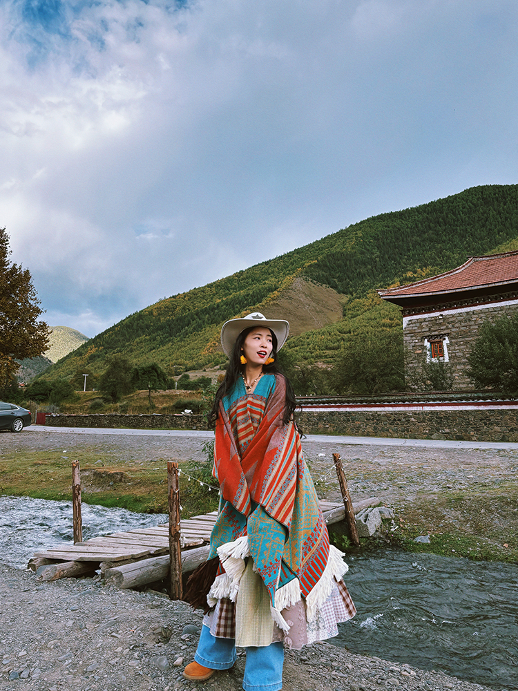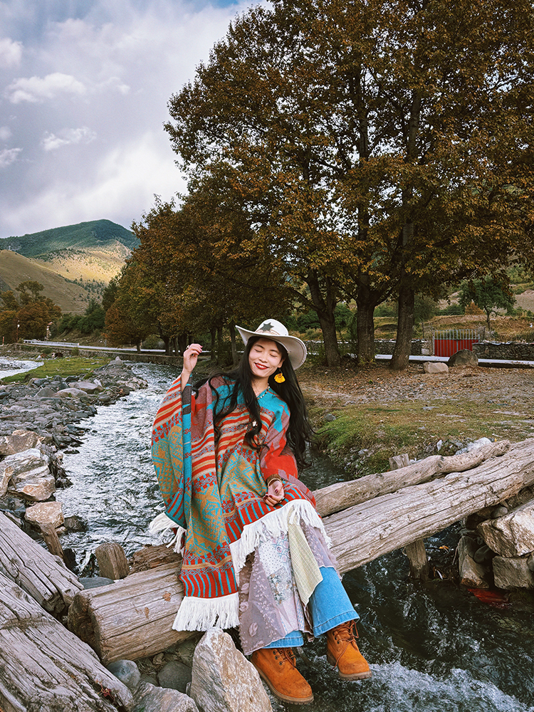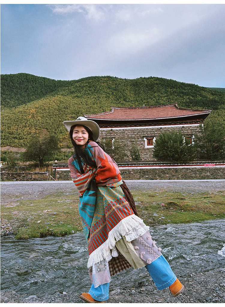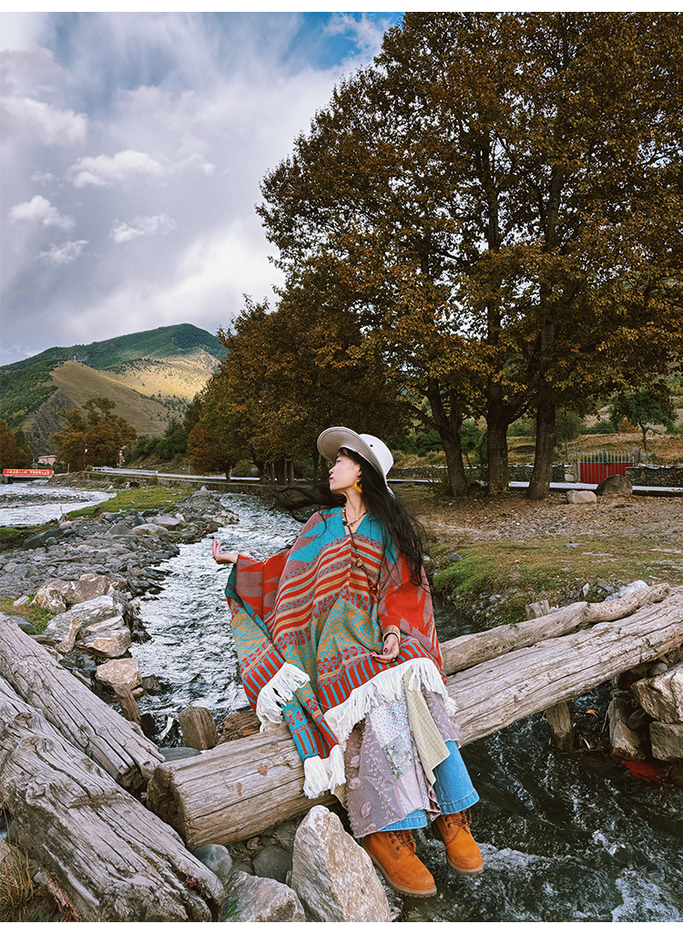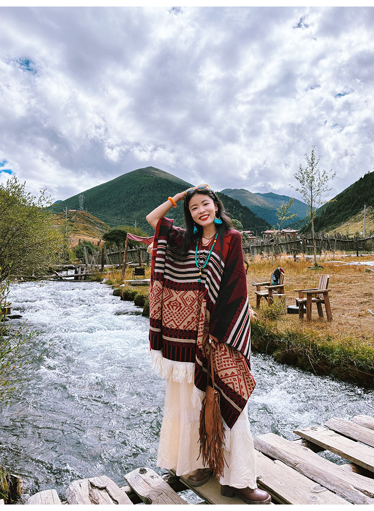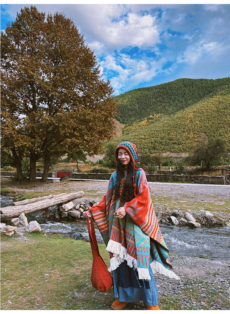 热卖冯老板民族风套头针织外搭披肩川西新疆秋冬保暖超大斗篷披风围巾