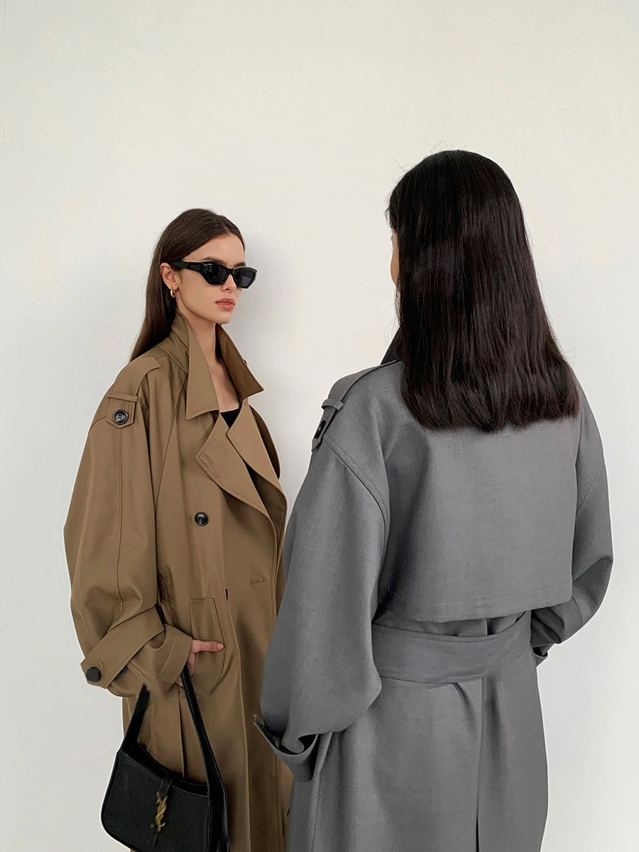 热卖灰色风衣外套女中长款2025秋季新款高级感双排扣英伦风小个子大衣