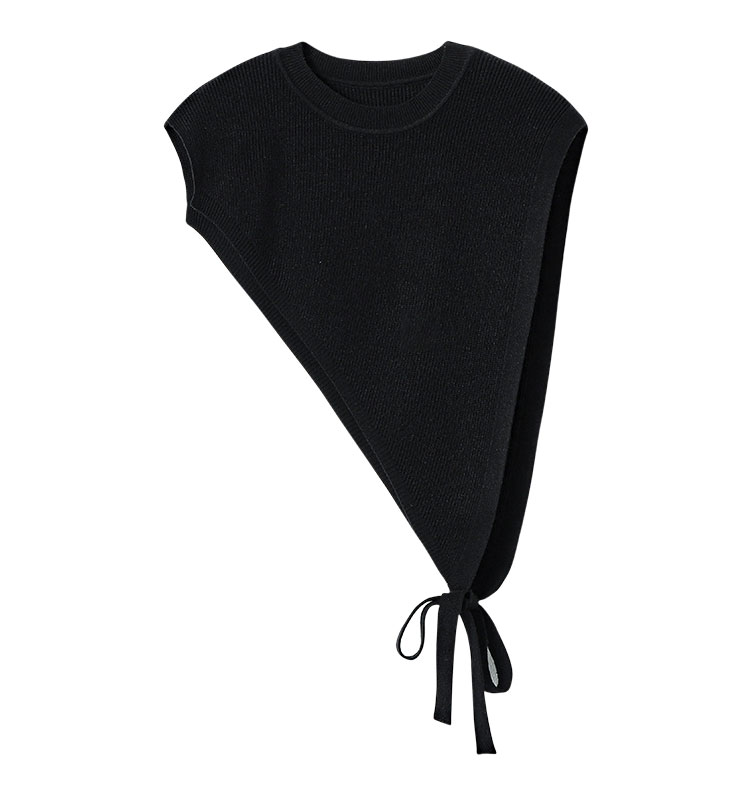 热卖PAIXIANG/黑色三角斜边披肩针织马夹背心女秋冬新款马夹气质上衣