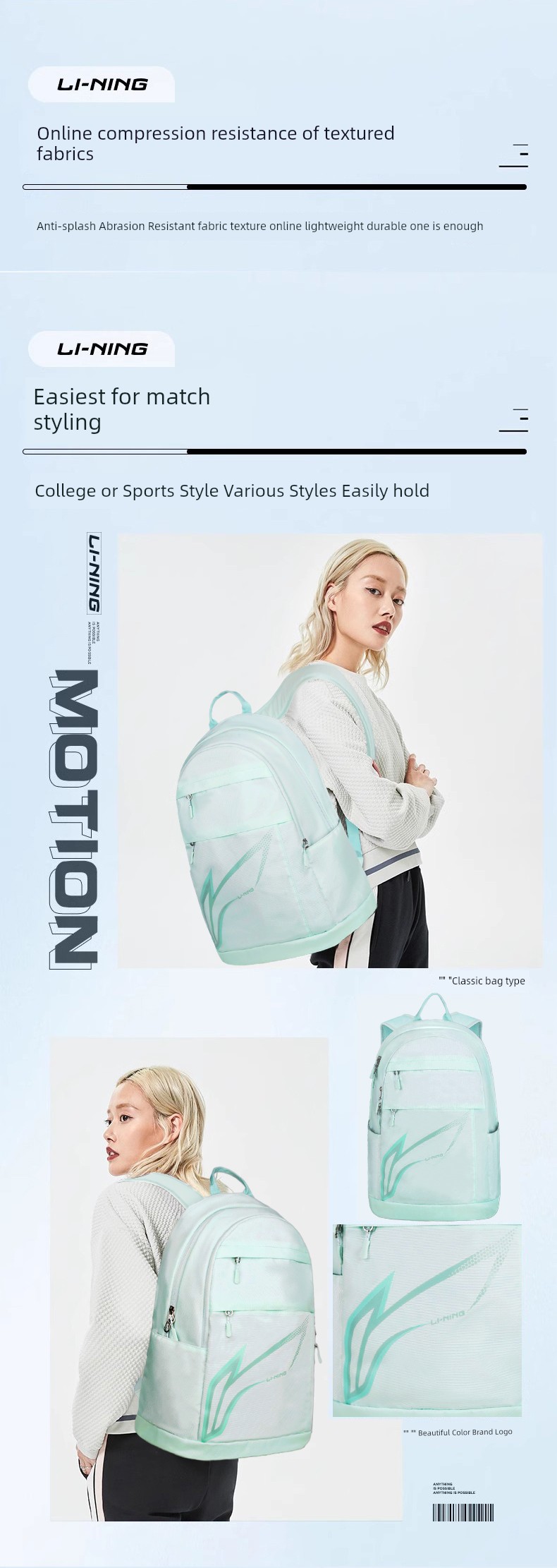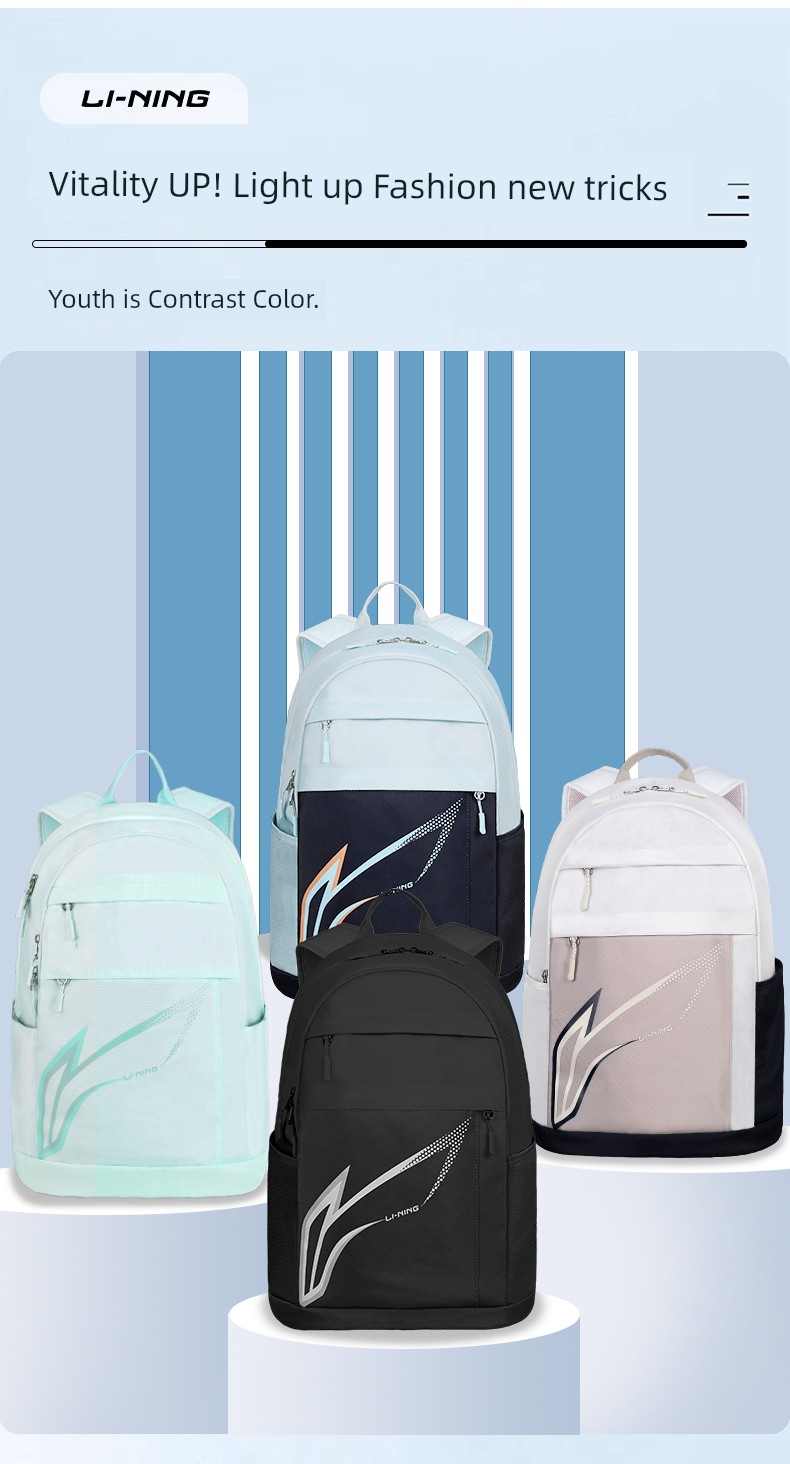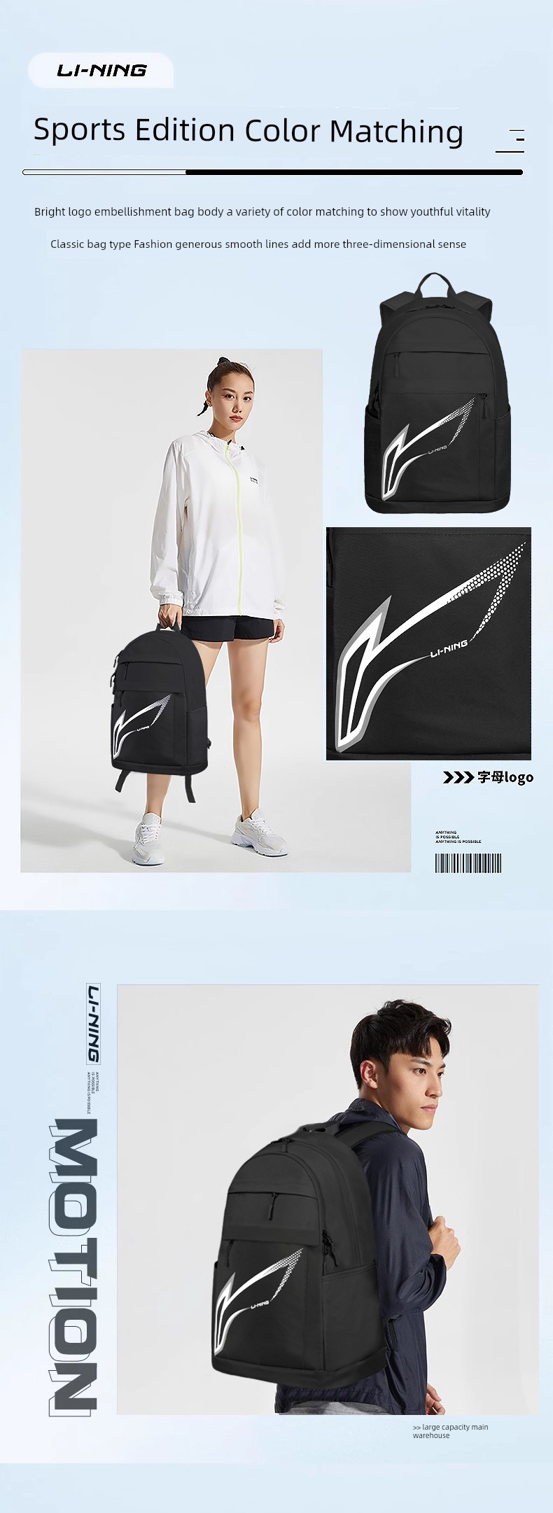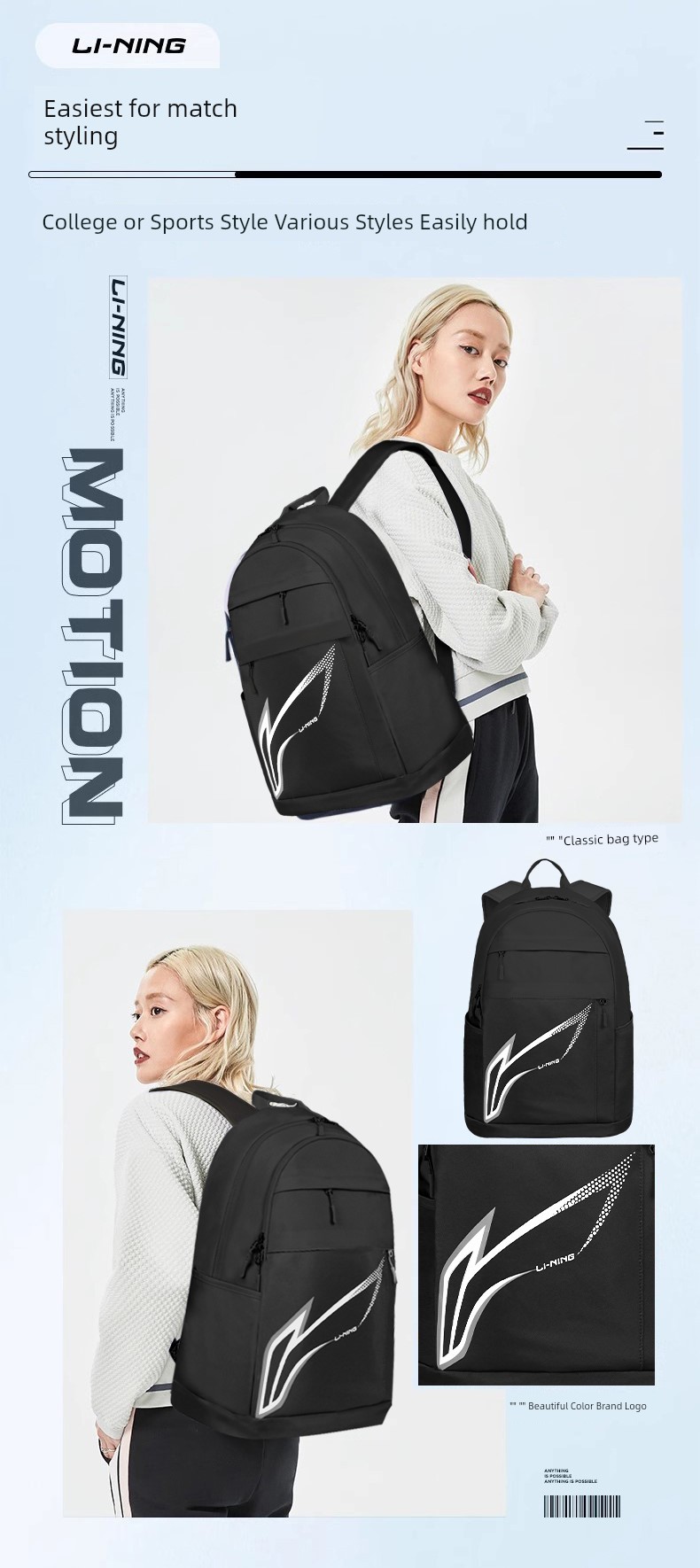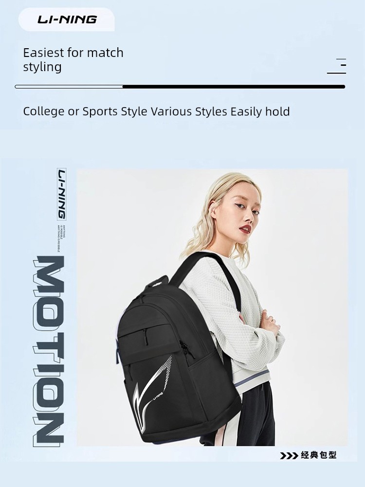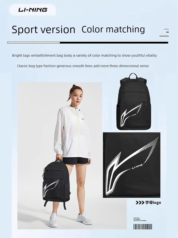 热卖李宁双肩包男生大容量初中高中大学生新款书包户外通勤运动背包女