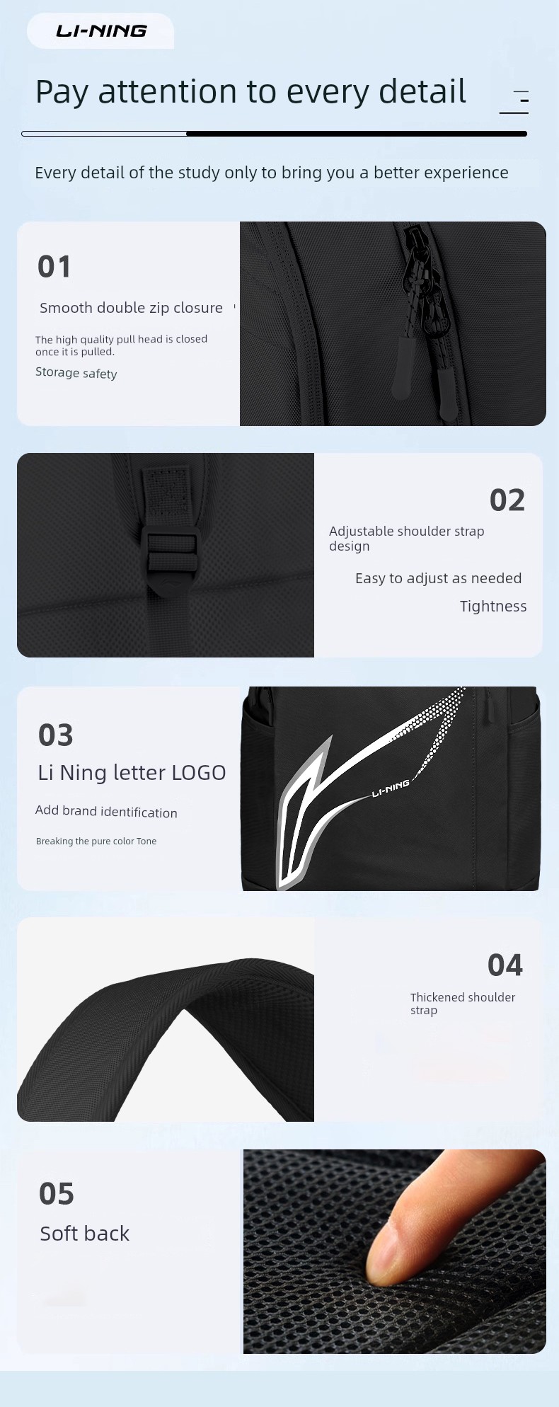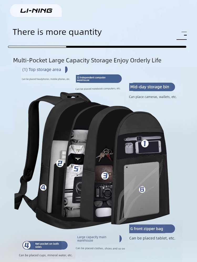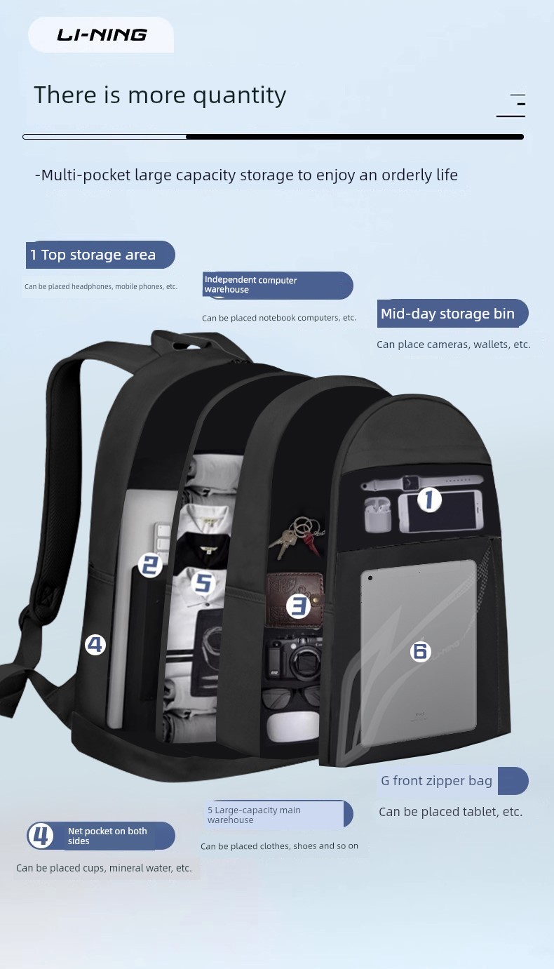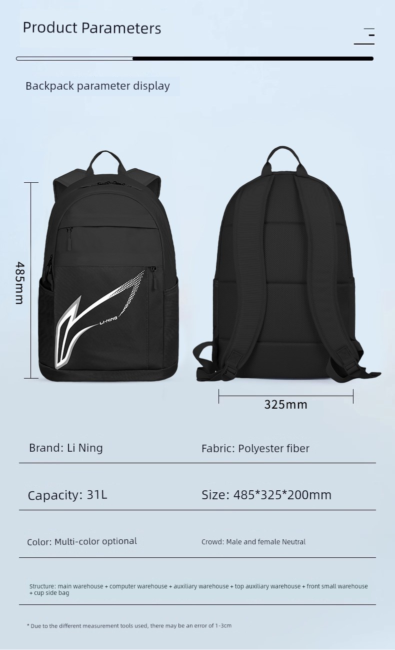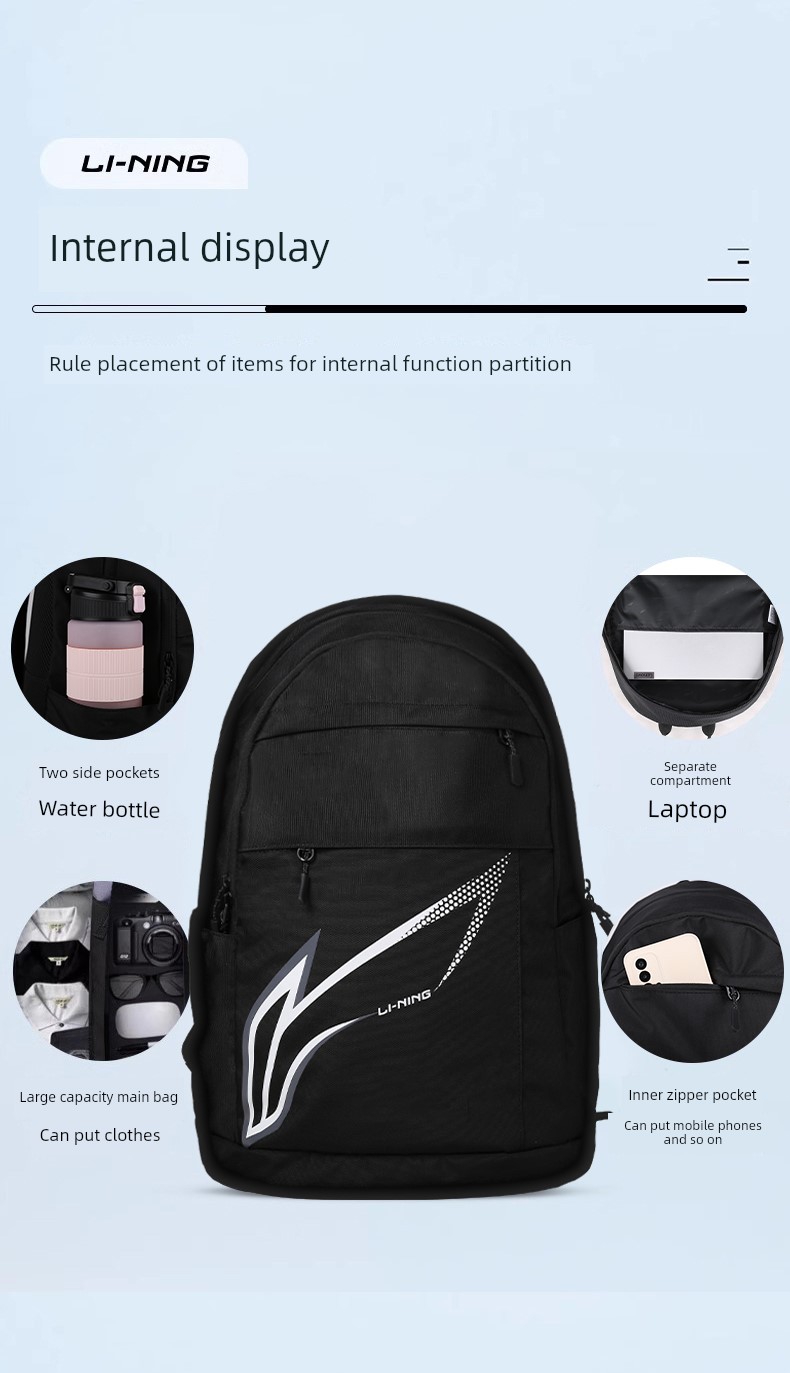 热卖李宁双肩包男生大容量初中高中大学生新款书包户外通勤运动背包女