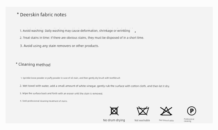 | dry cleaning/cold water gentle hand washing/no machine washing/no soaking and bleaching/avoid exposure/tile drying | ||||