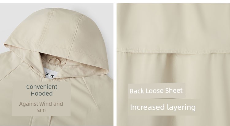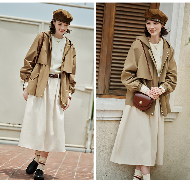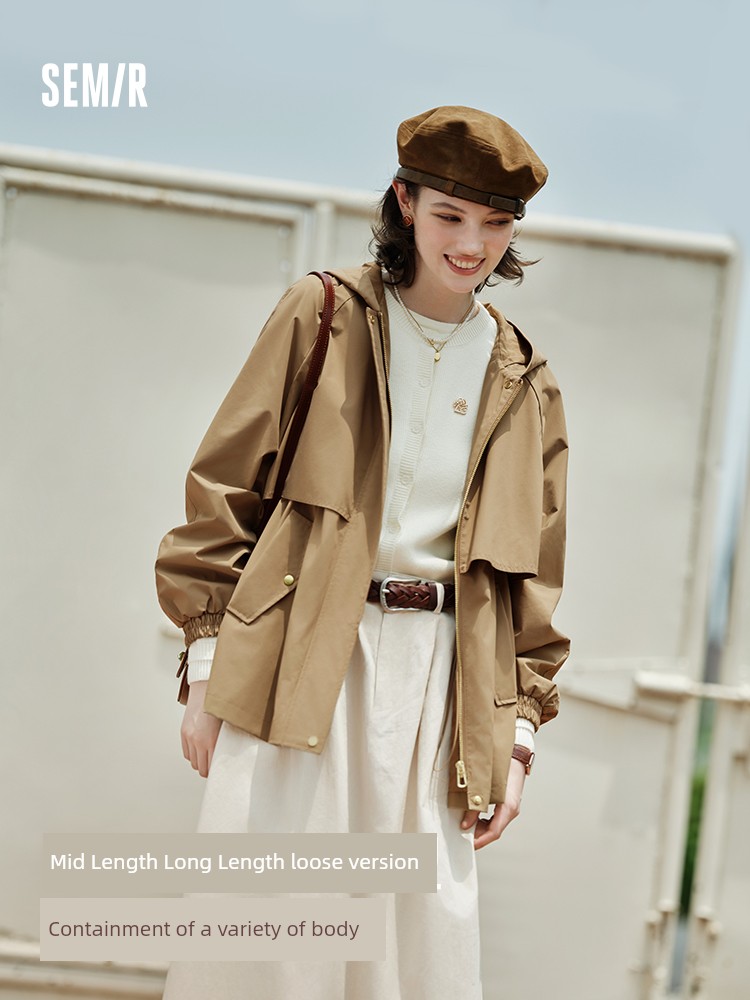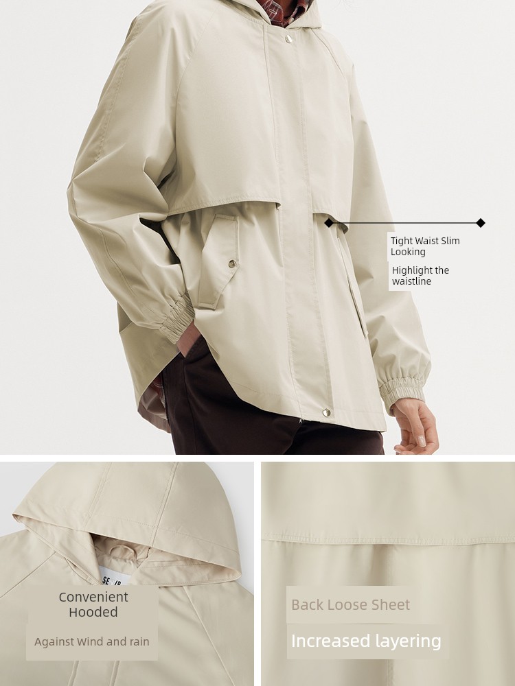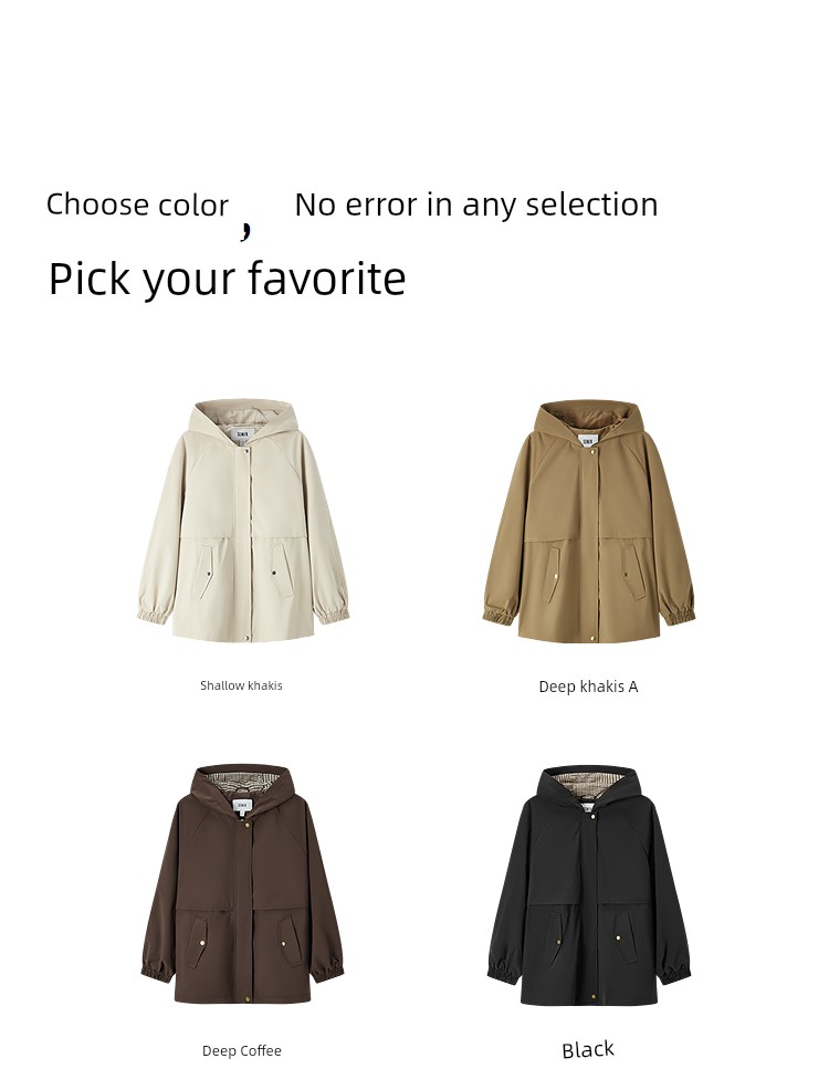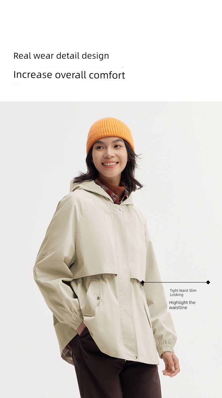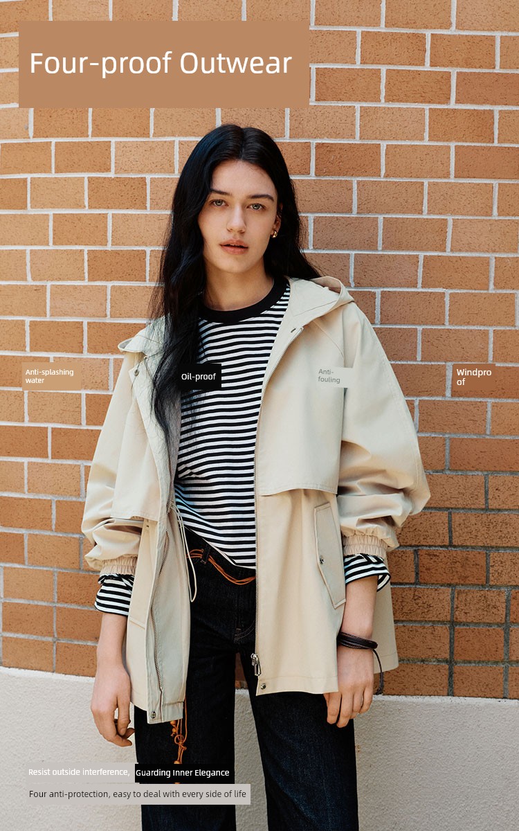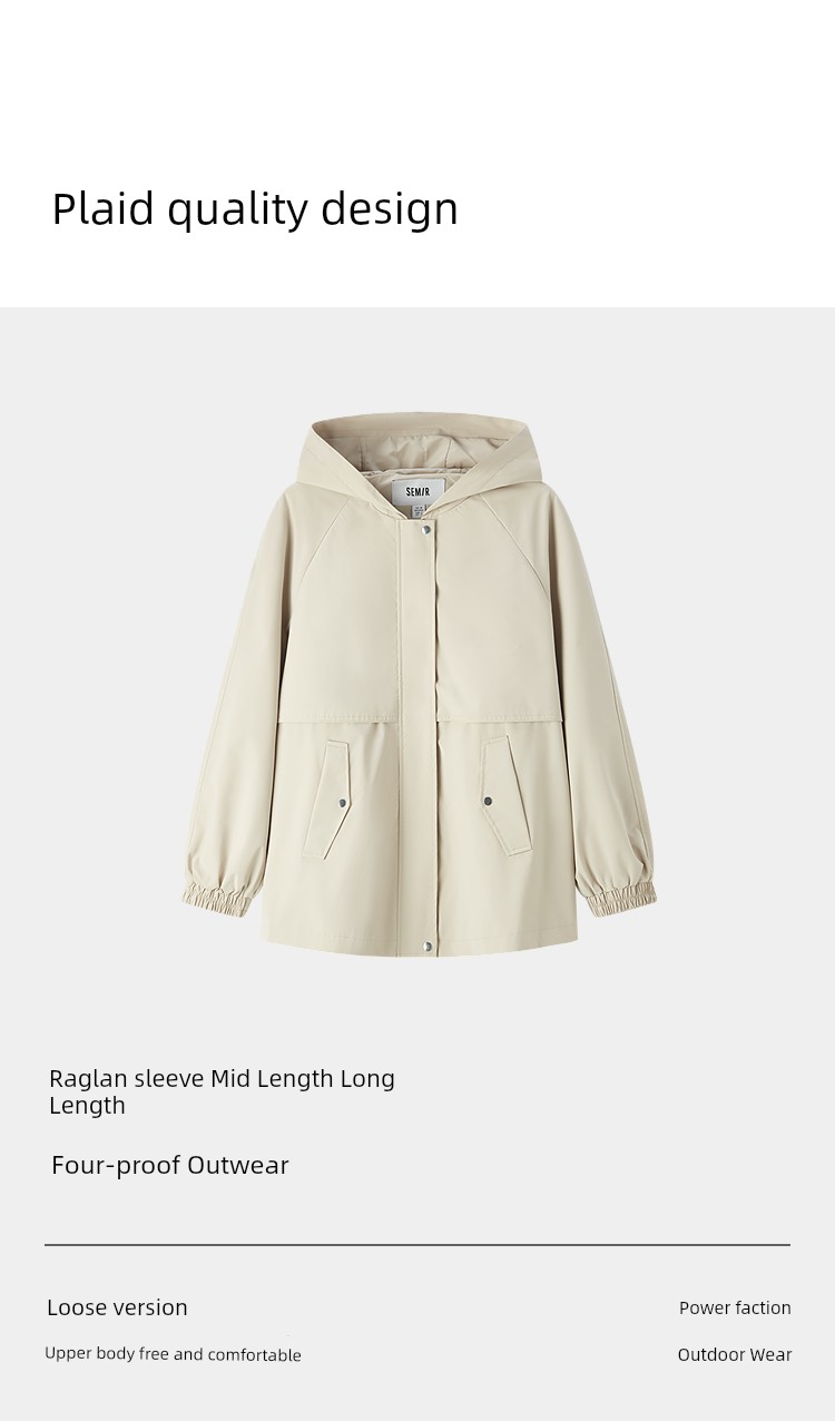 热卖防护外套|森马外套女中长款插肩袖三防秋季防风连帽衣服宽松简约