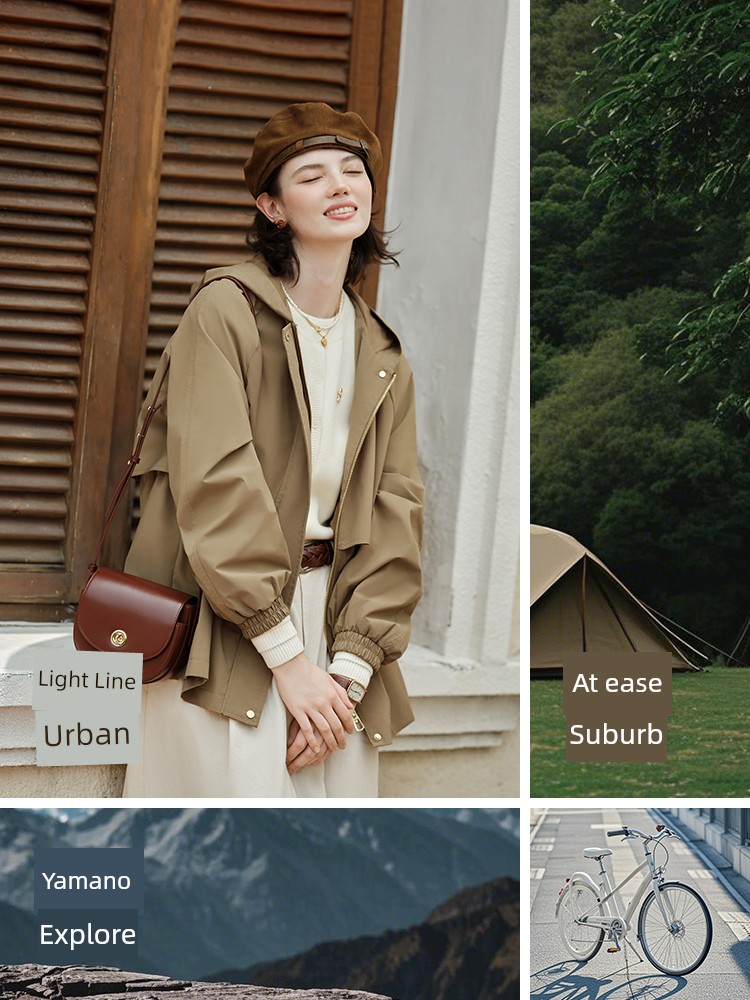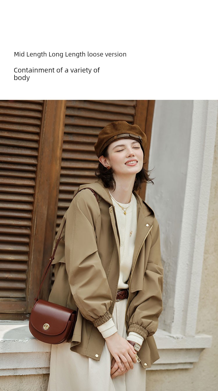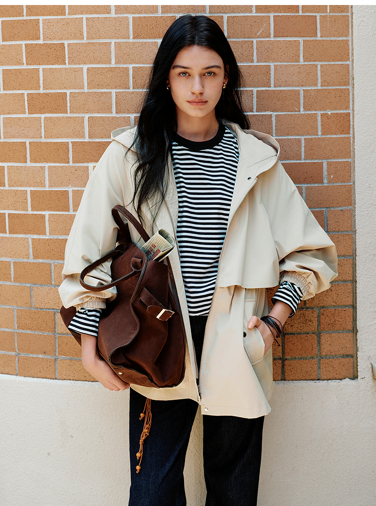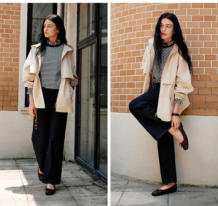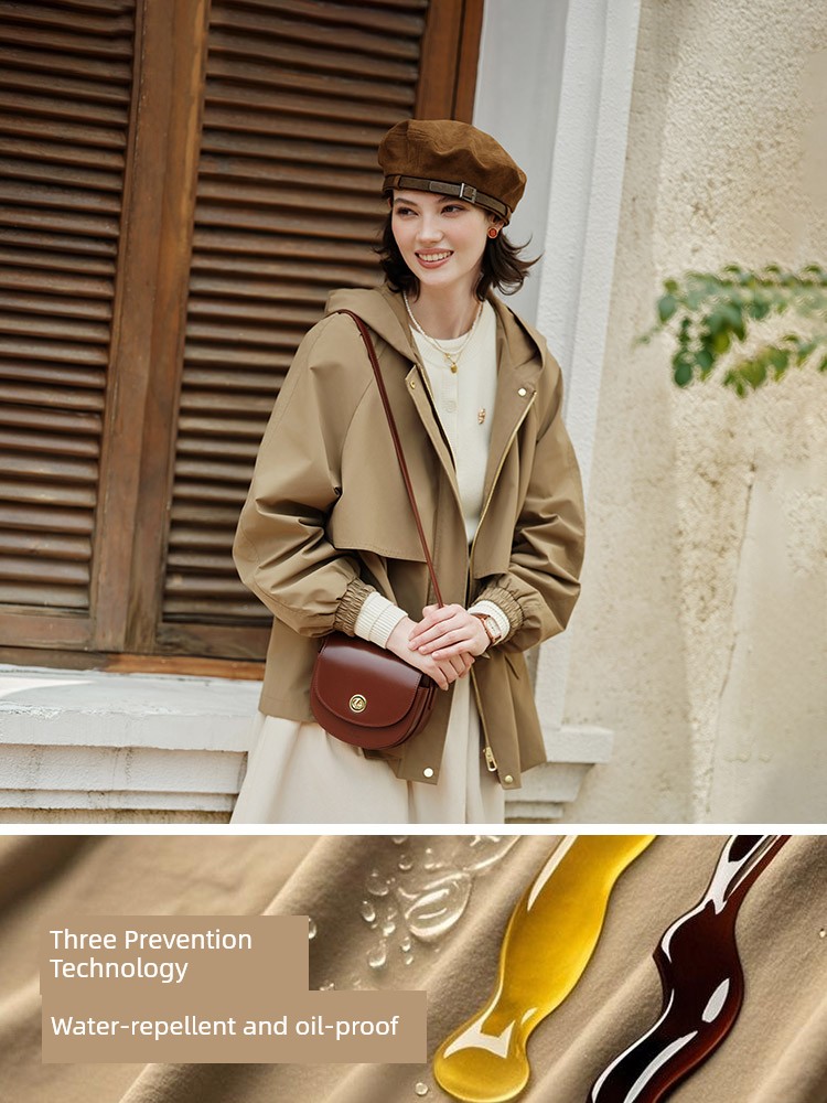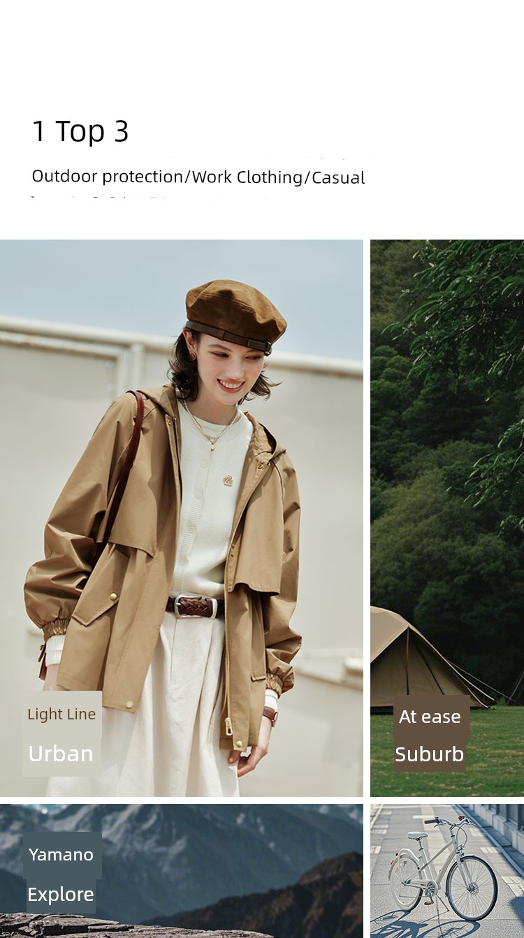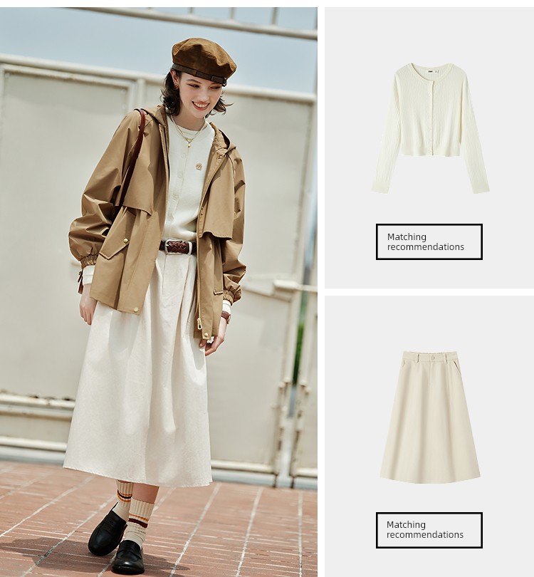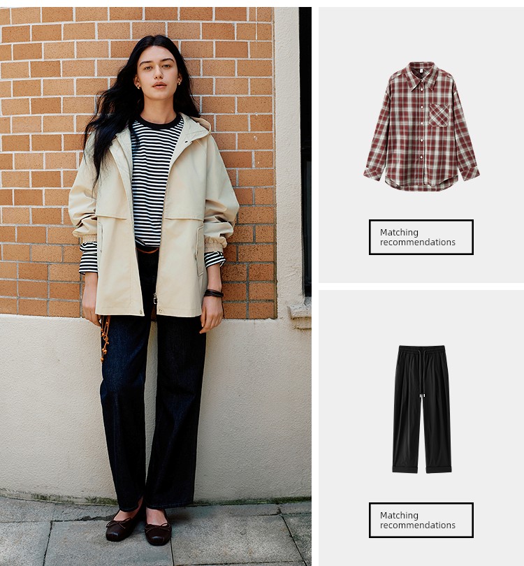 热卖防护外套|森马外套女中长款插肩袖三防秋季防风连帽衣服宽松简约