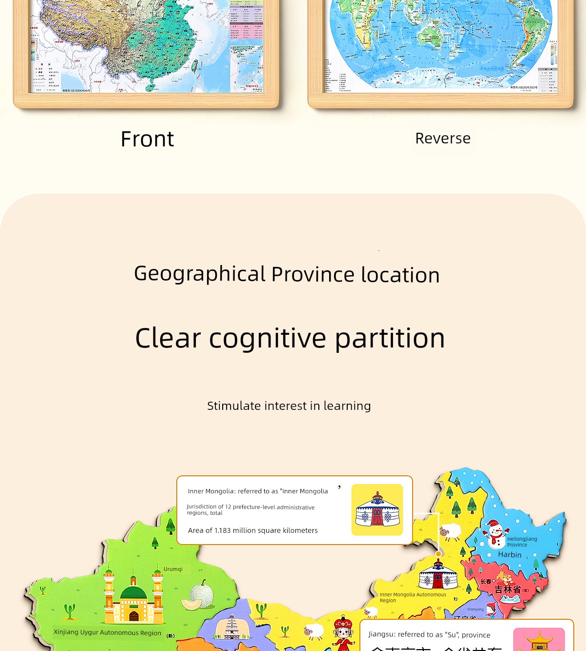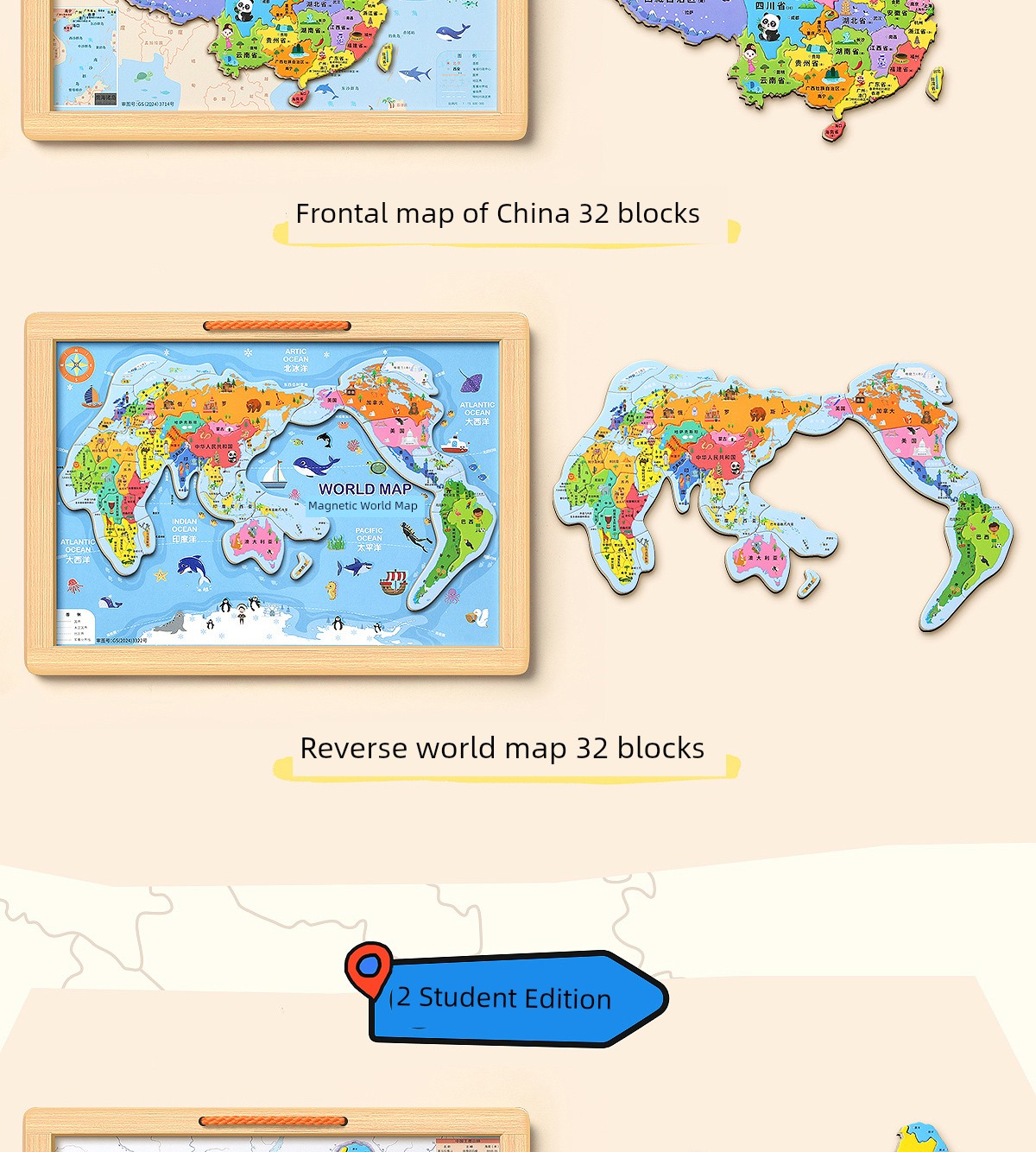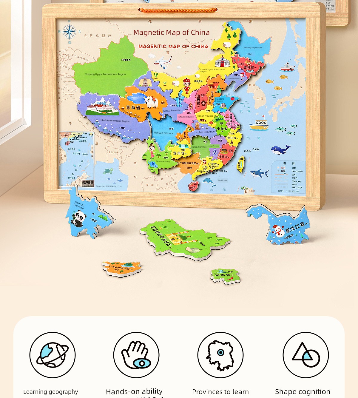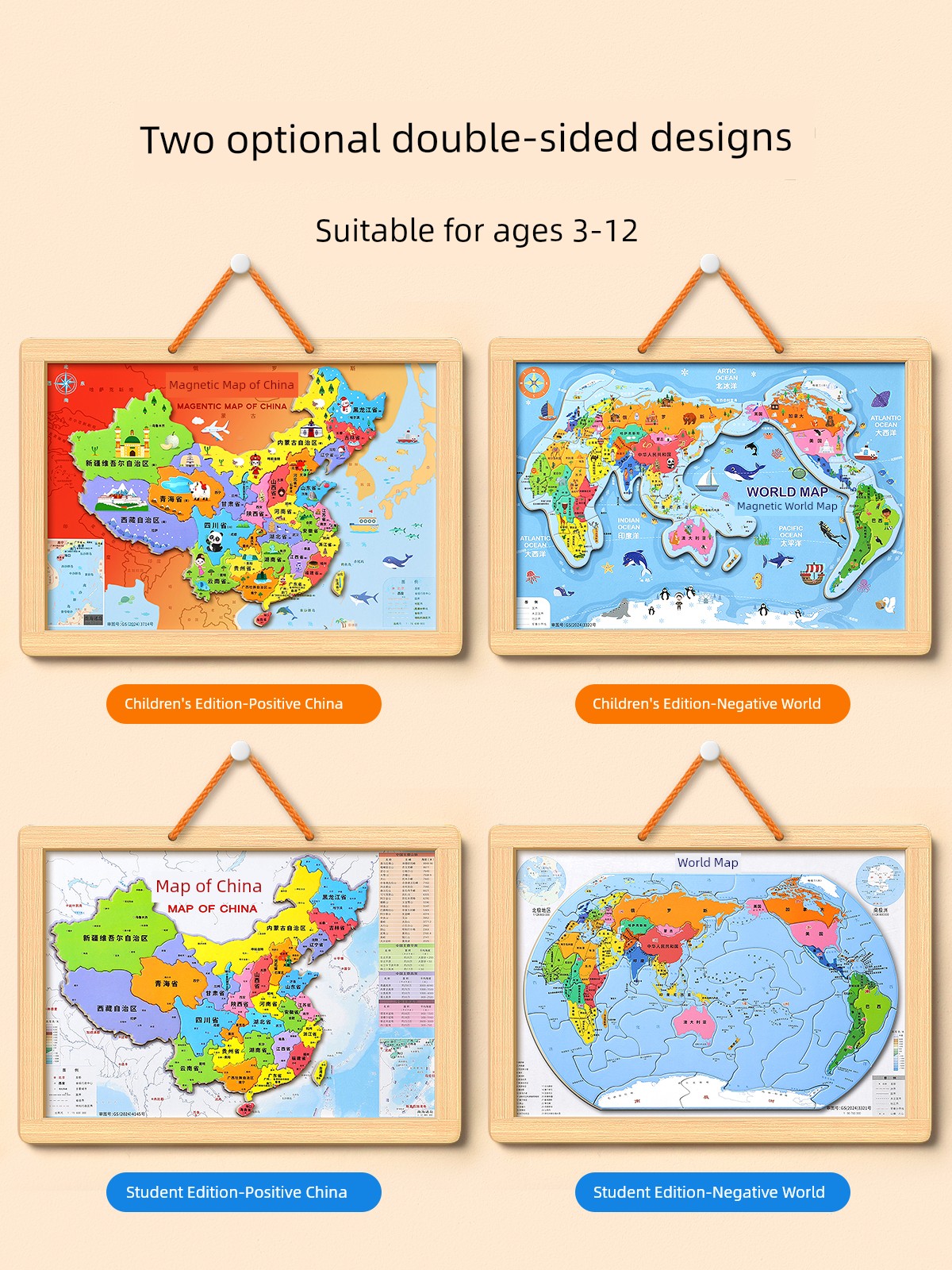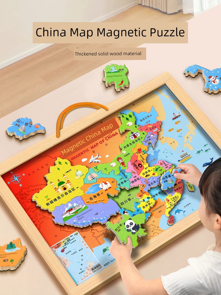 热卖中国地图拼图磁力世界儿童版3到6岁以上益智男孩女3d立体凹凸玩具