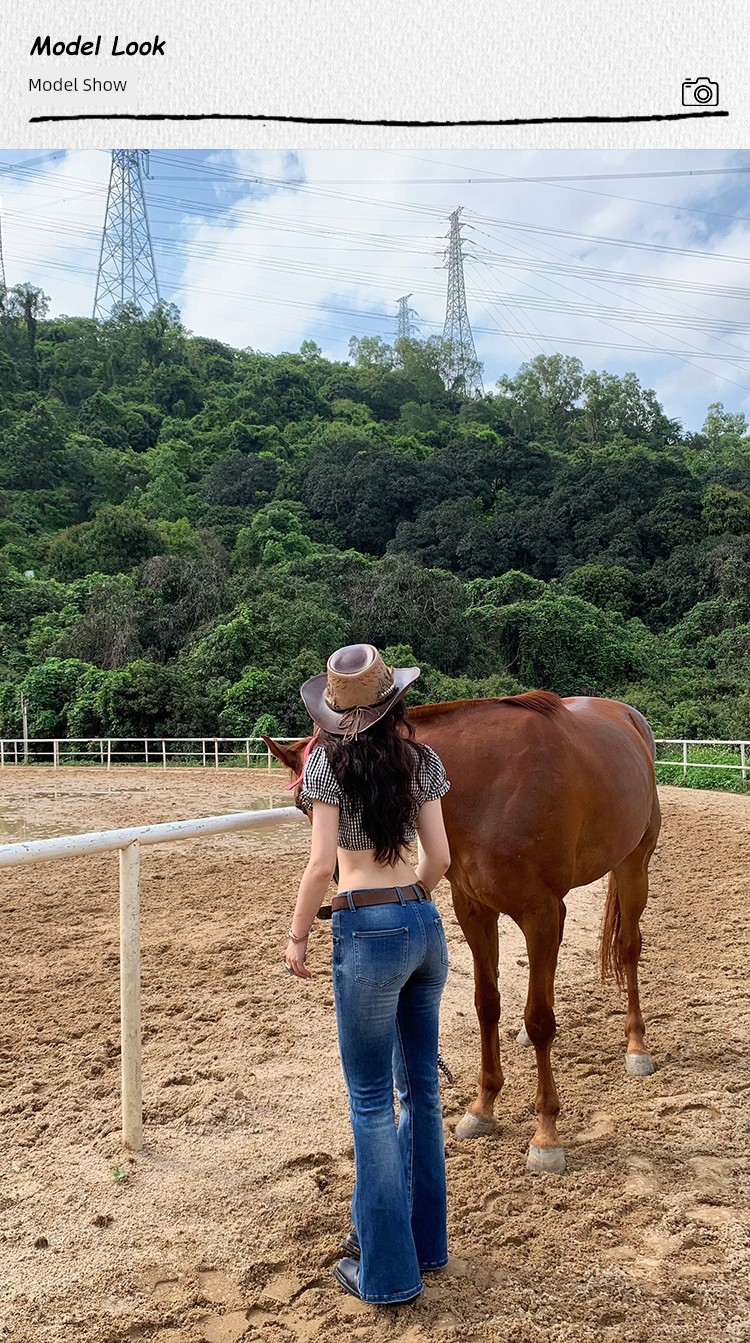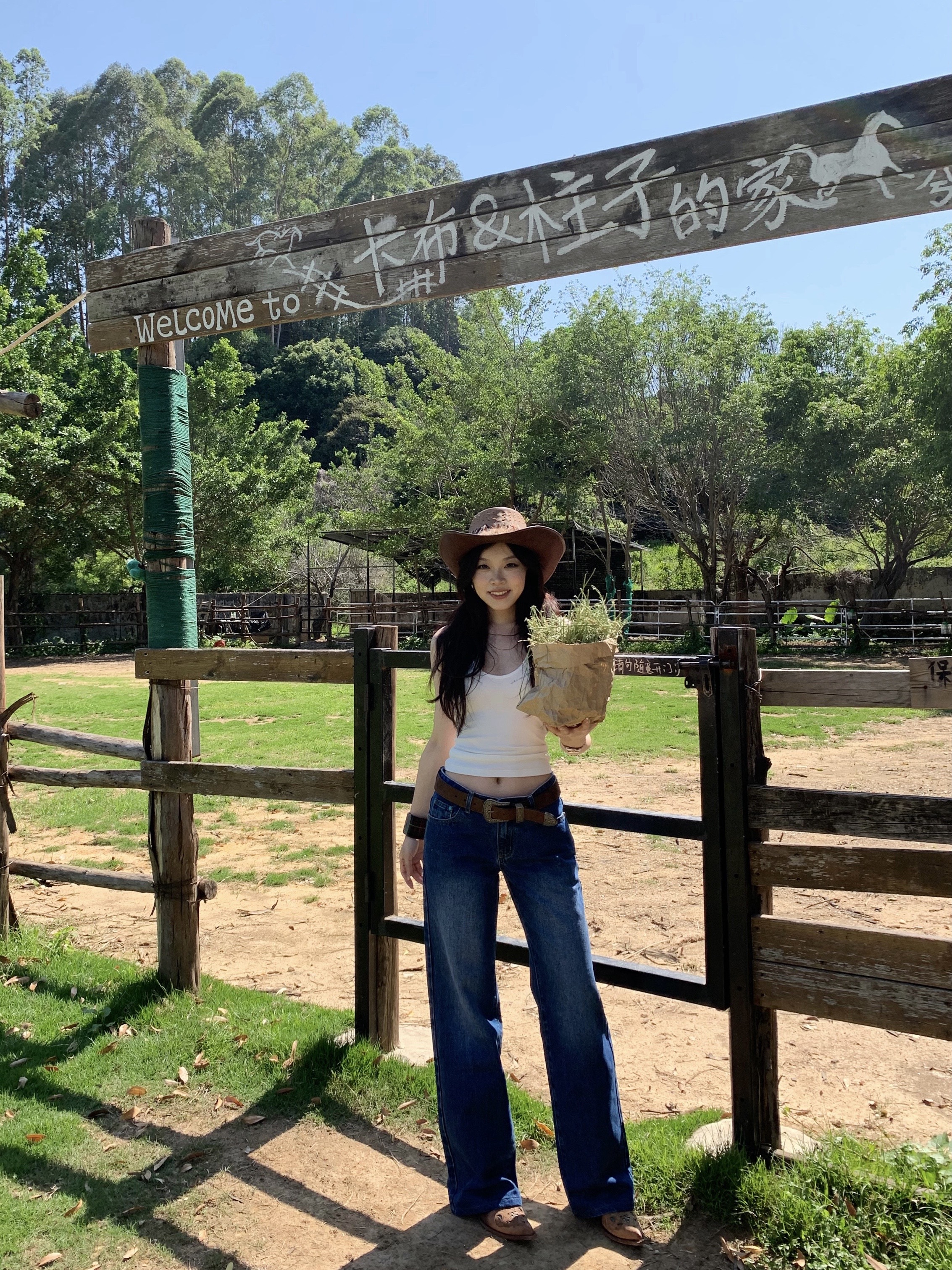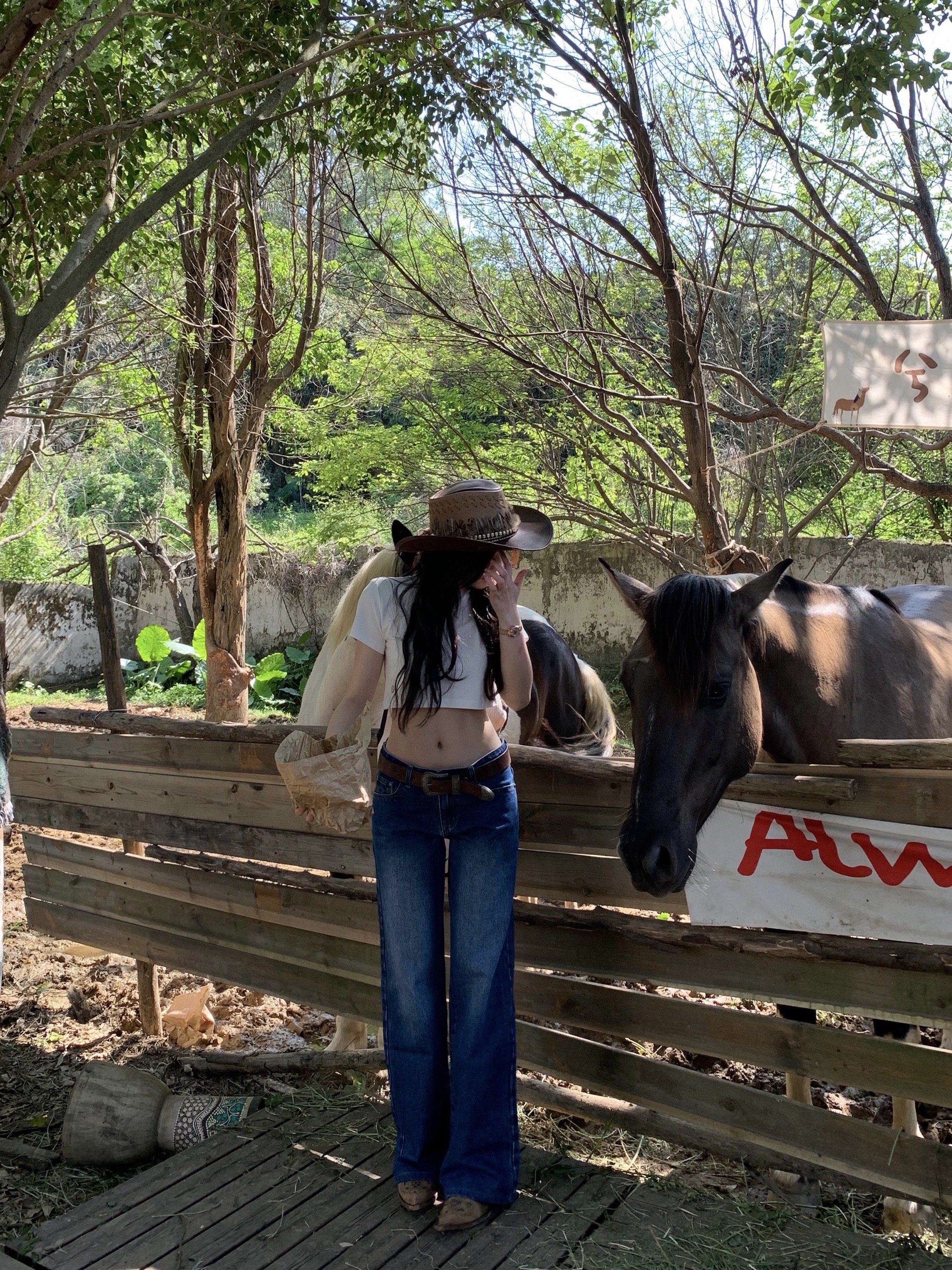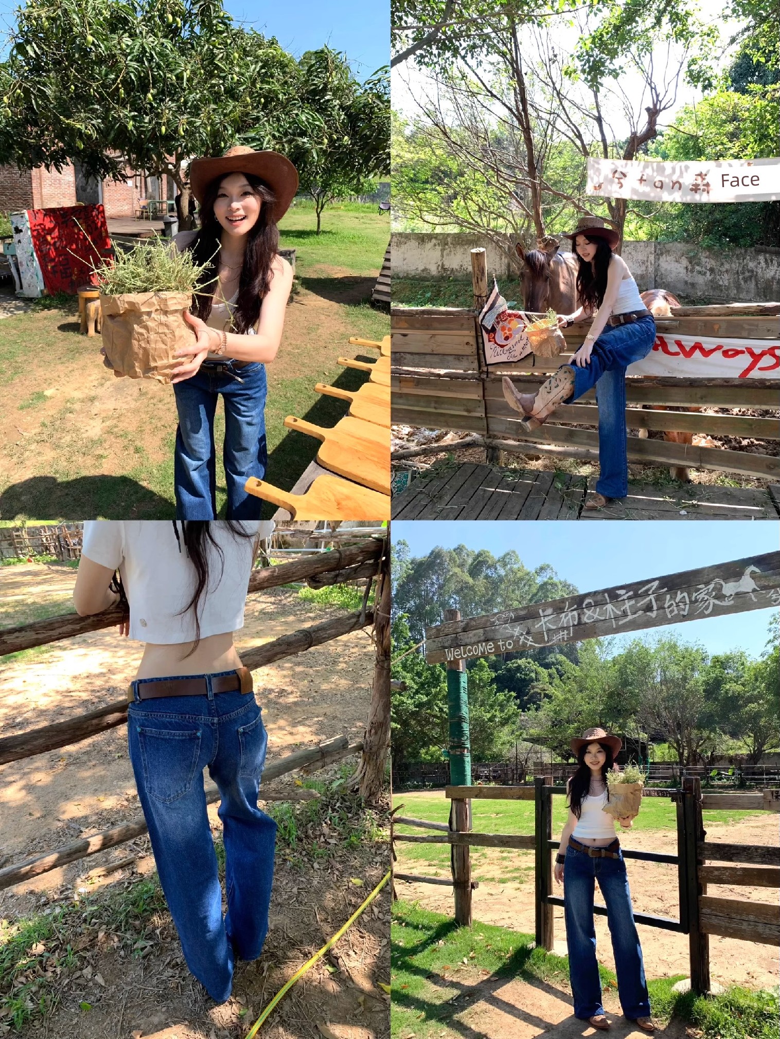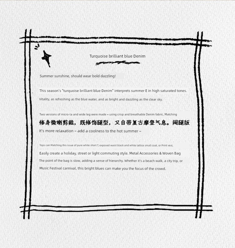热卖popchee|绿松石的记忆|微喇&阔腿版 西部牛仔艳蓝牛仔裤