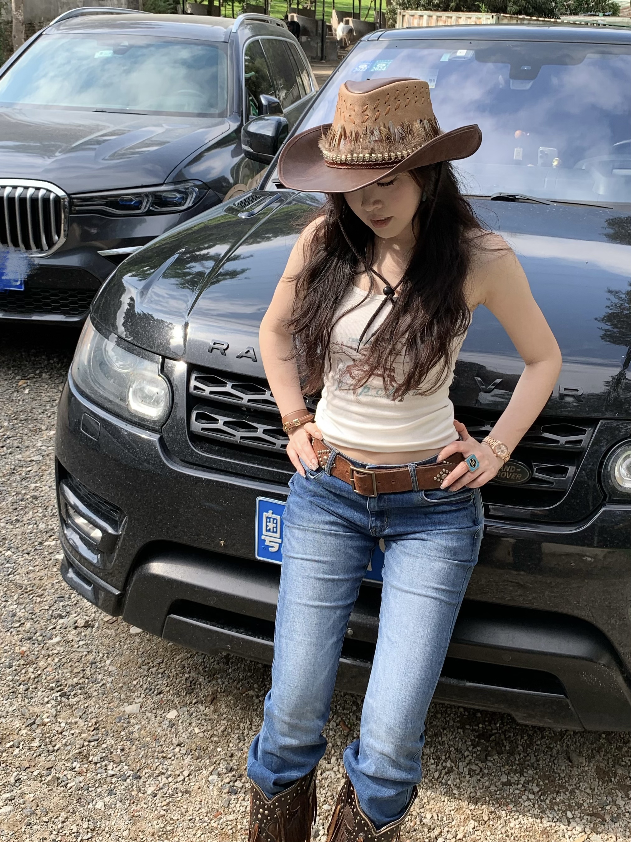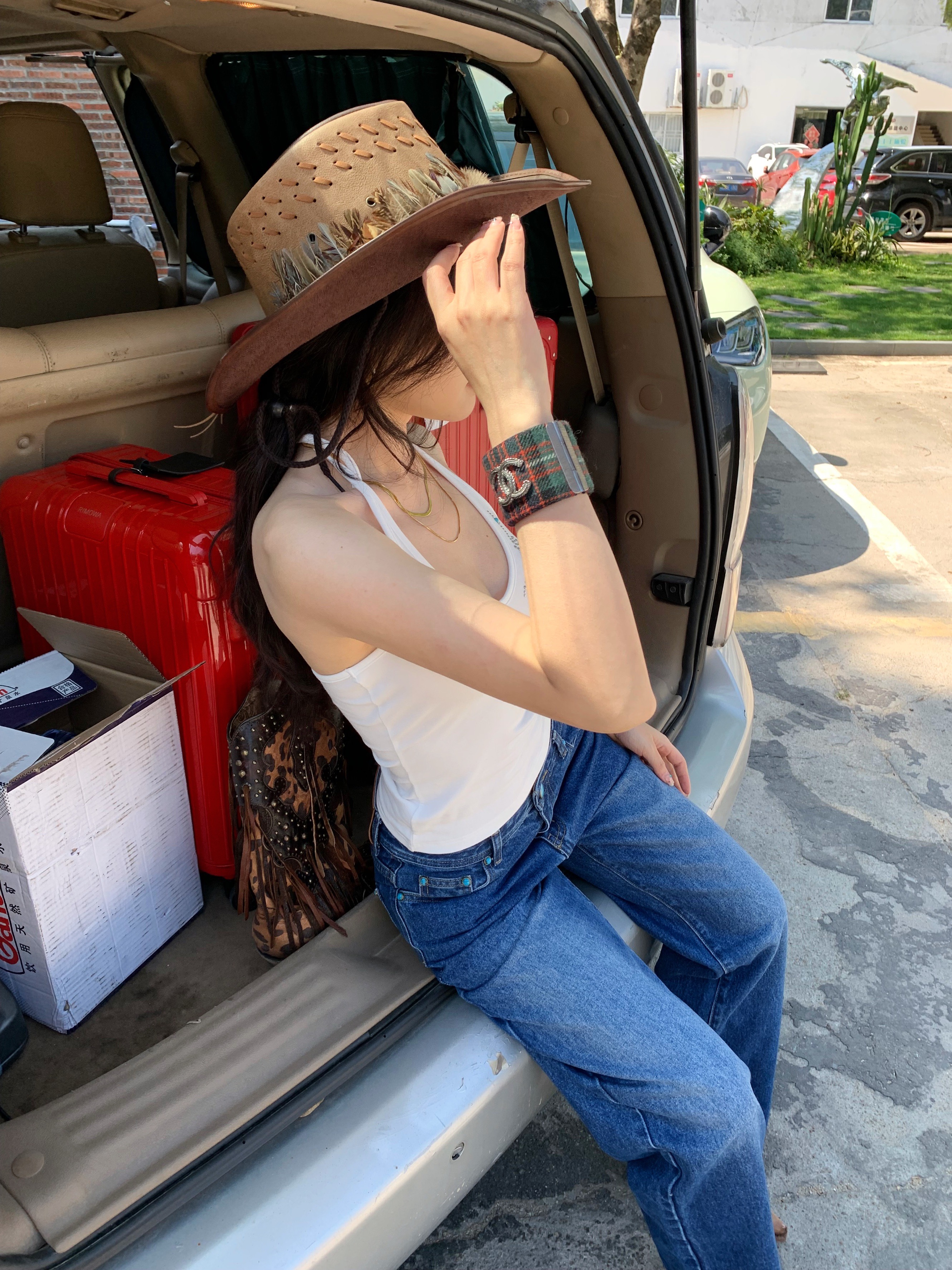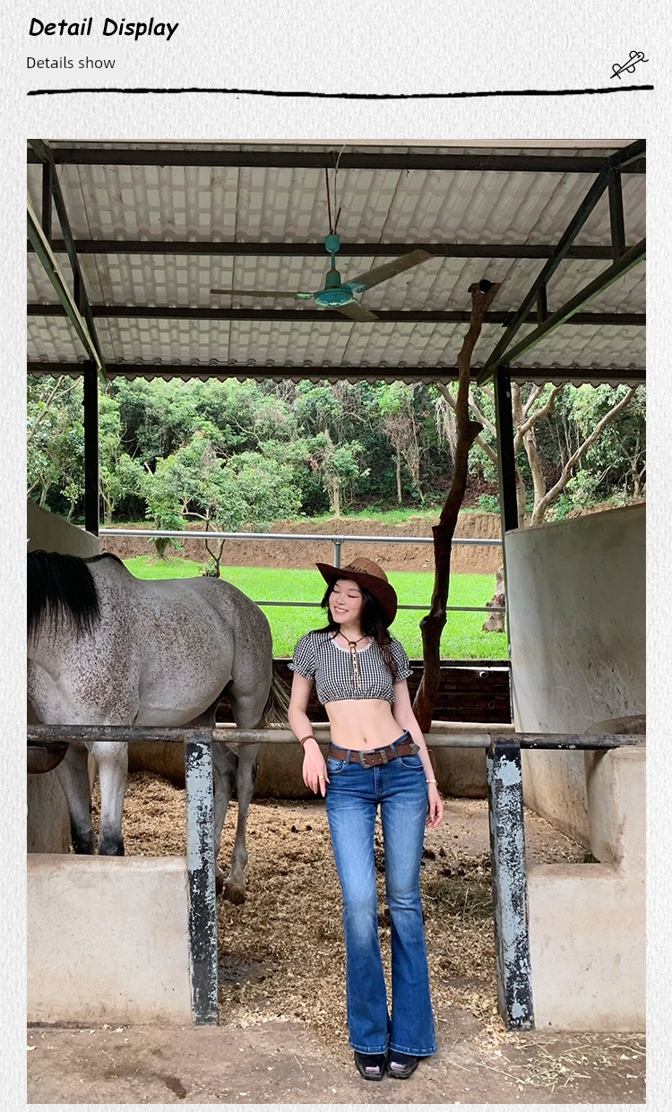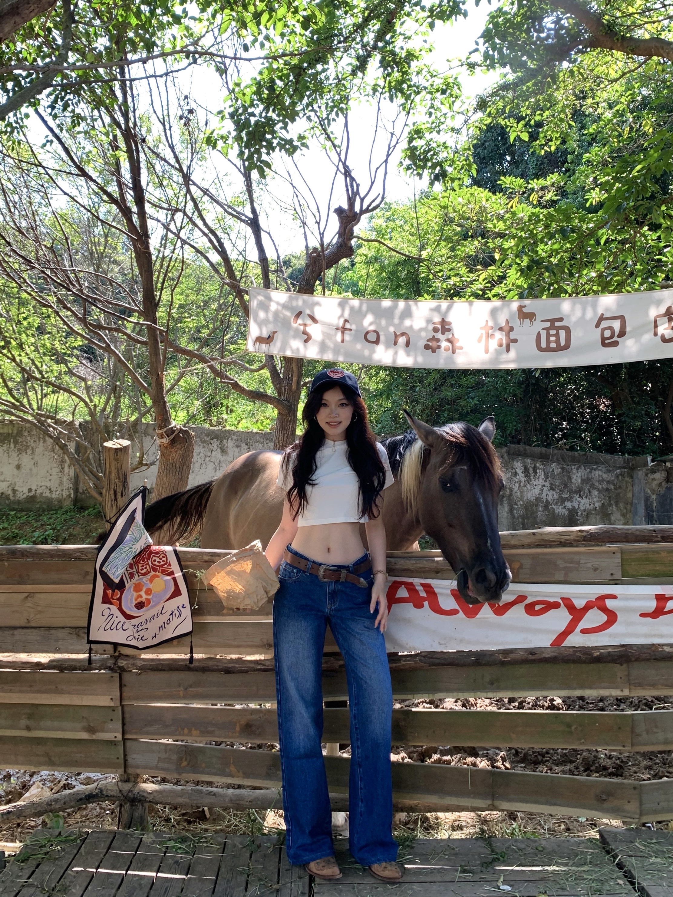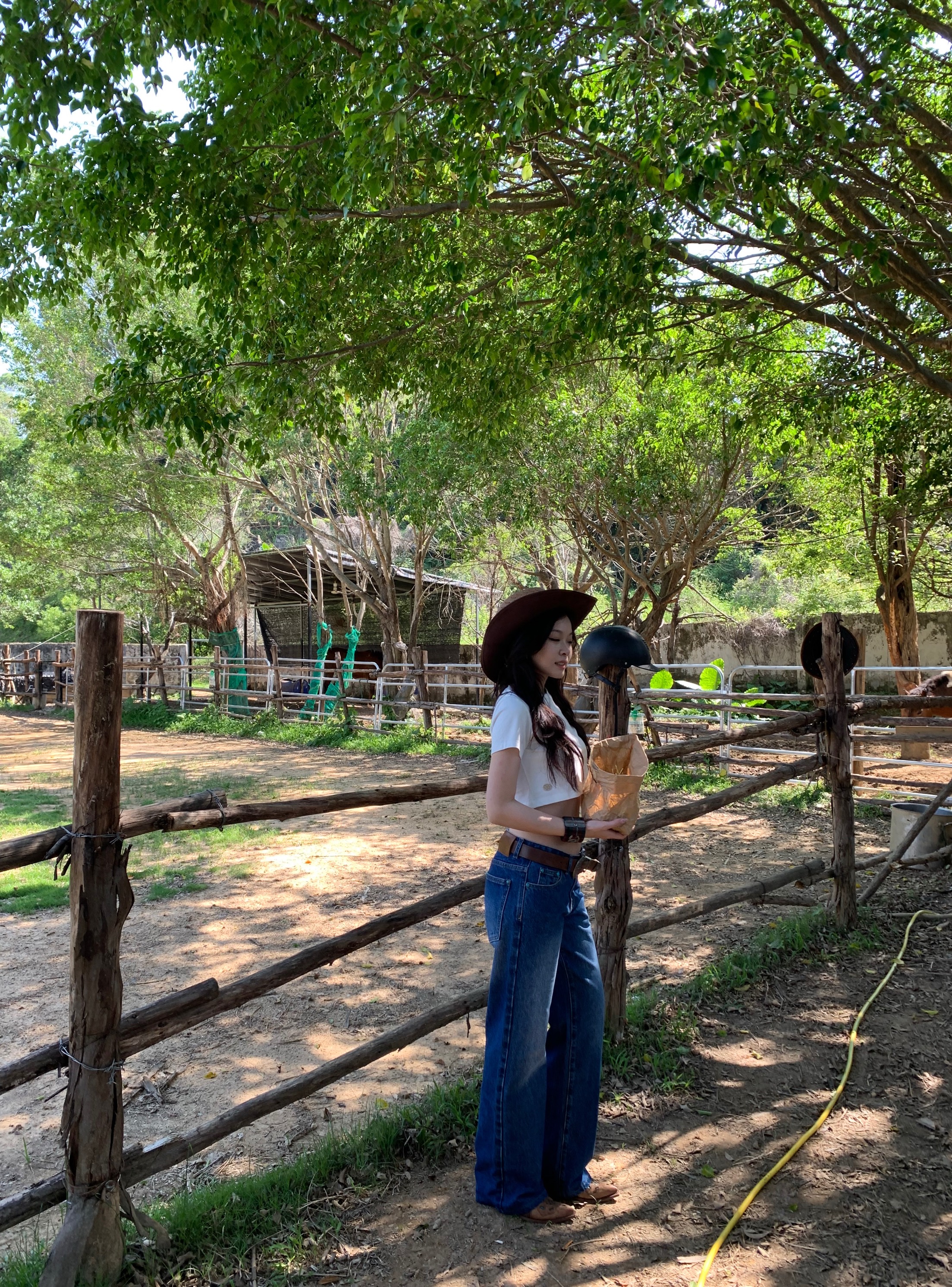 热卖popchee|绿松石的记忆|微喇&阔腿版 西部牛仔艳蓝牛仔裤