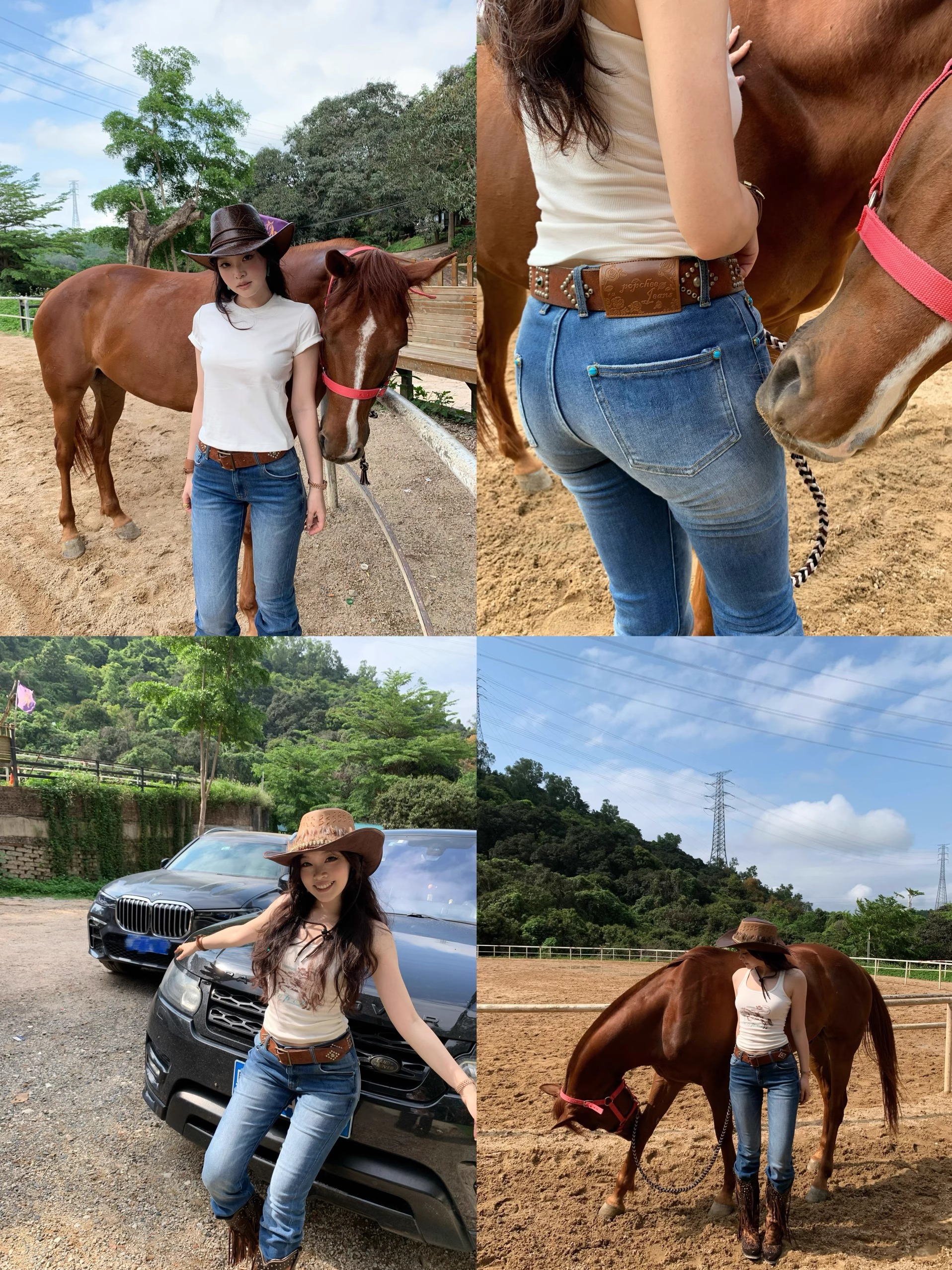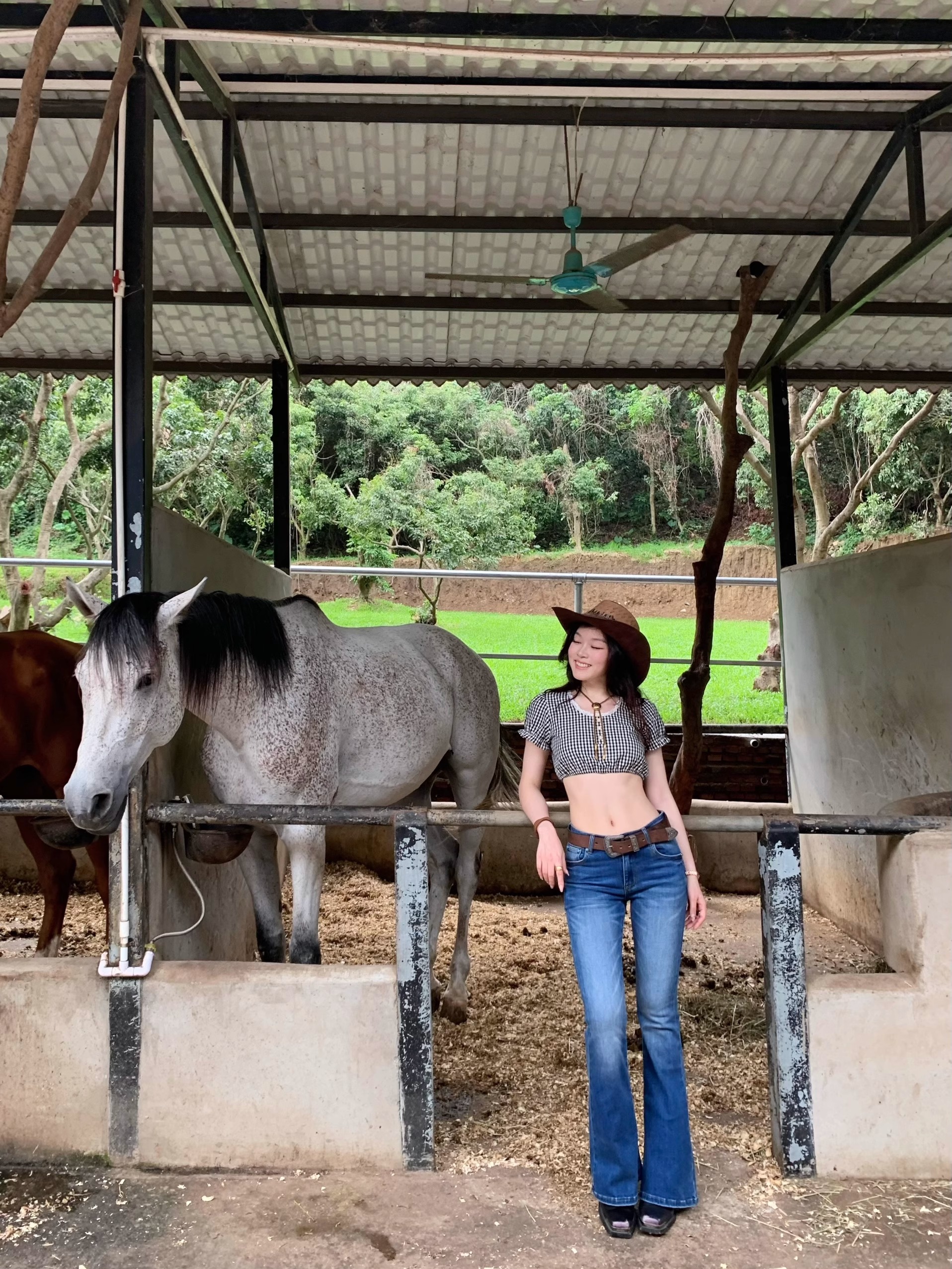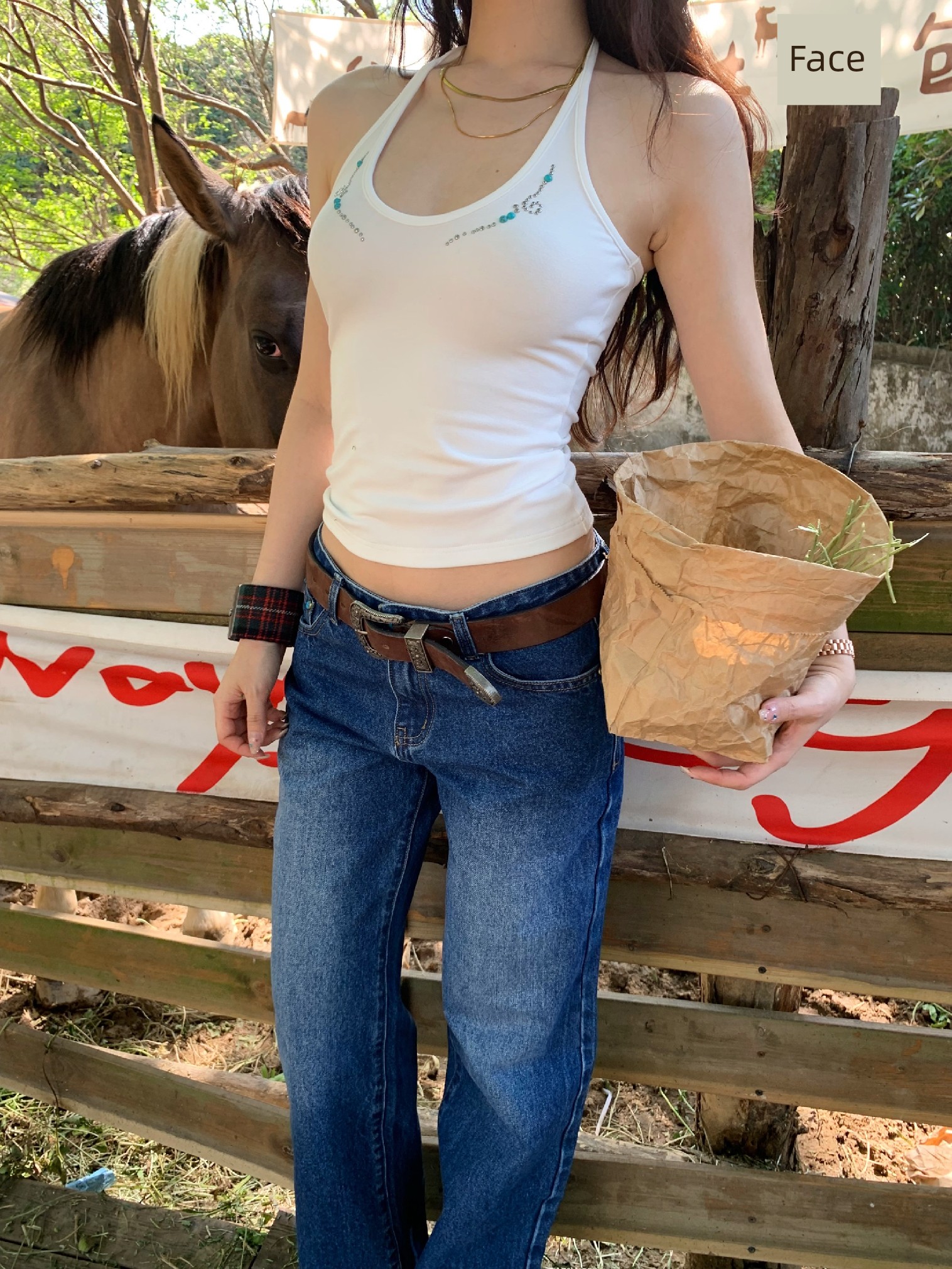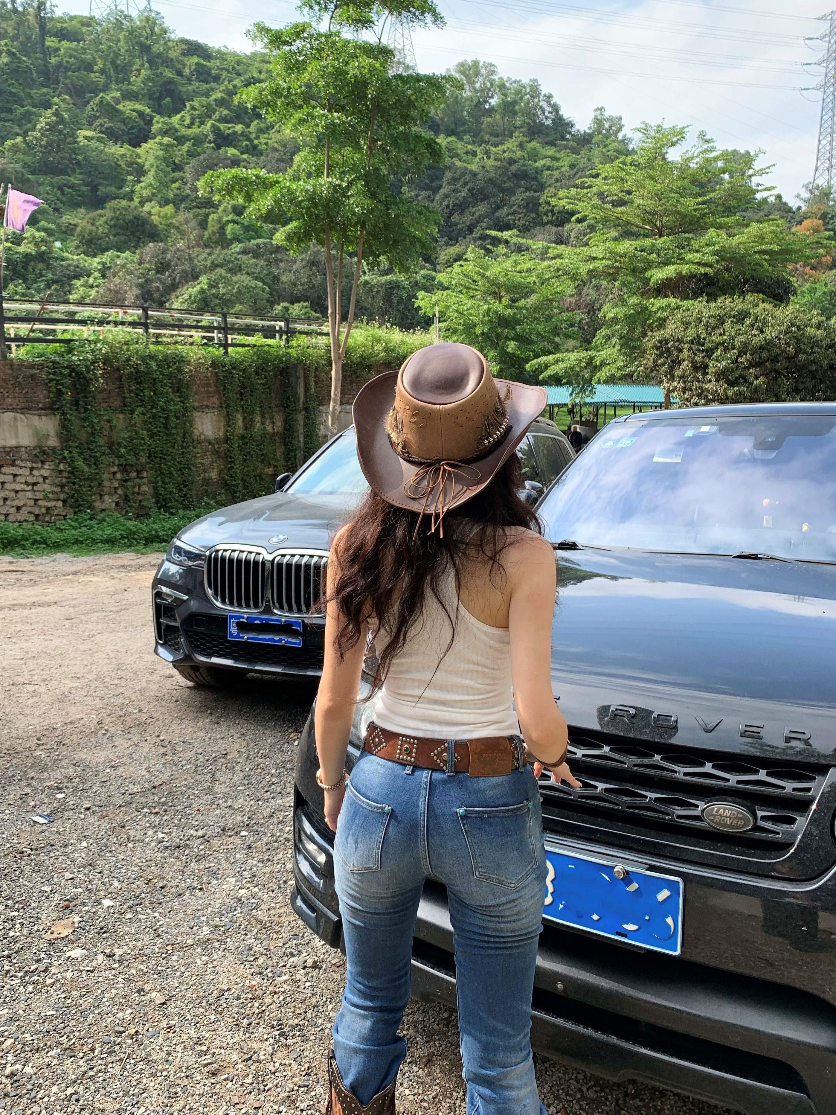 热卖popchee|绿松石的记忆|微喇&阔腿版 西部牛仔艳蓝牛仔裤