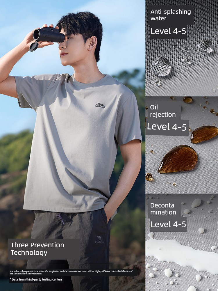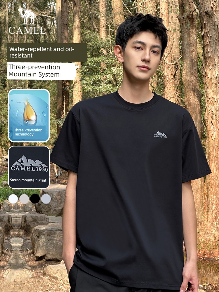 热卖骆驼男装三防短袖t恤男夏季2025新款圆领印花户外休闲半袖体恤男