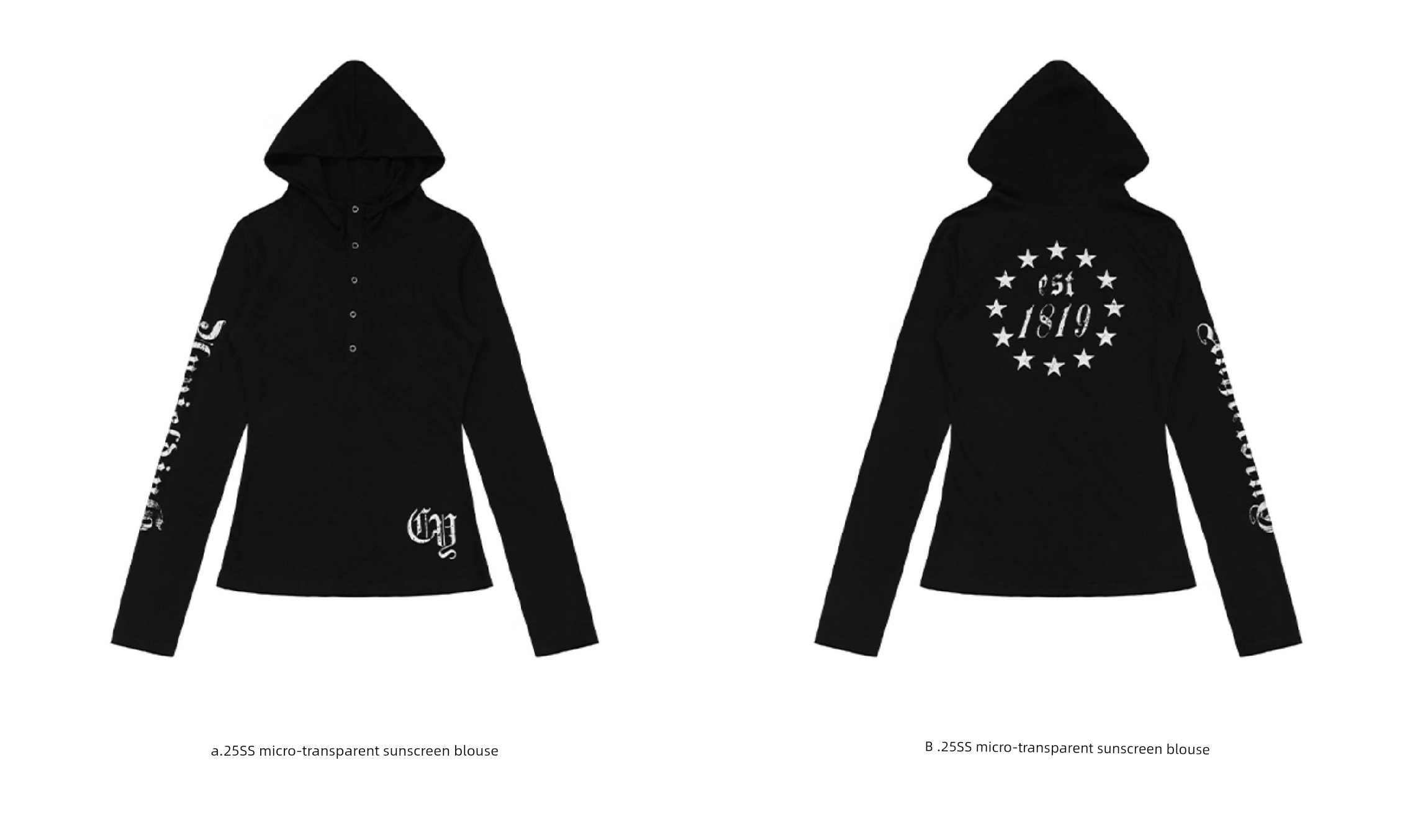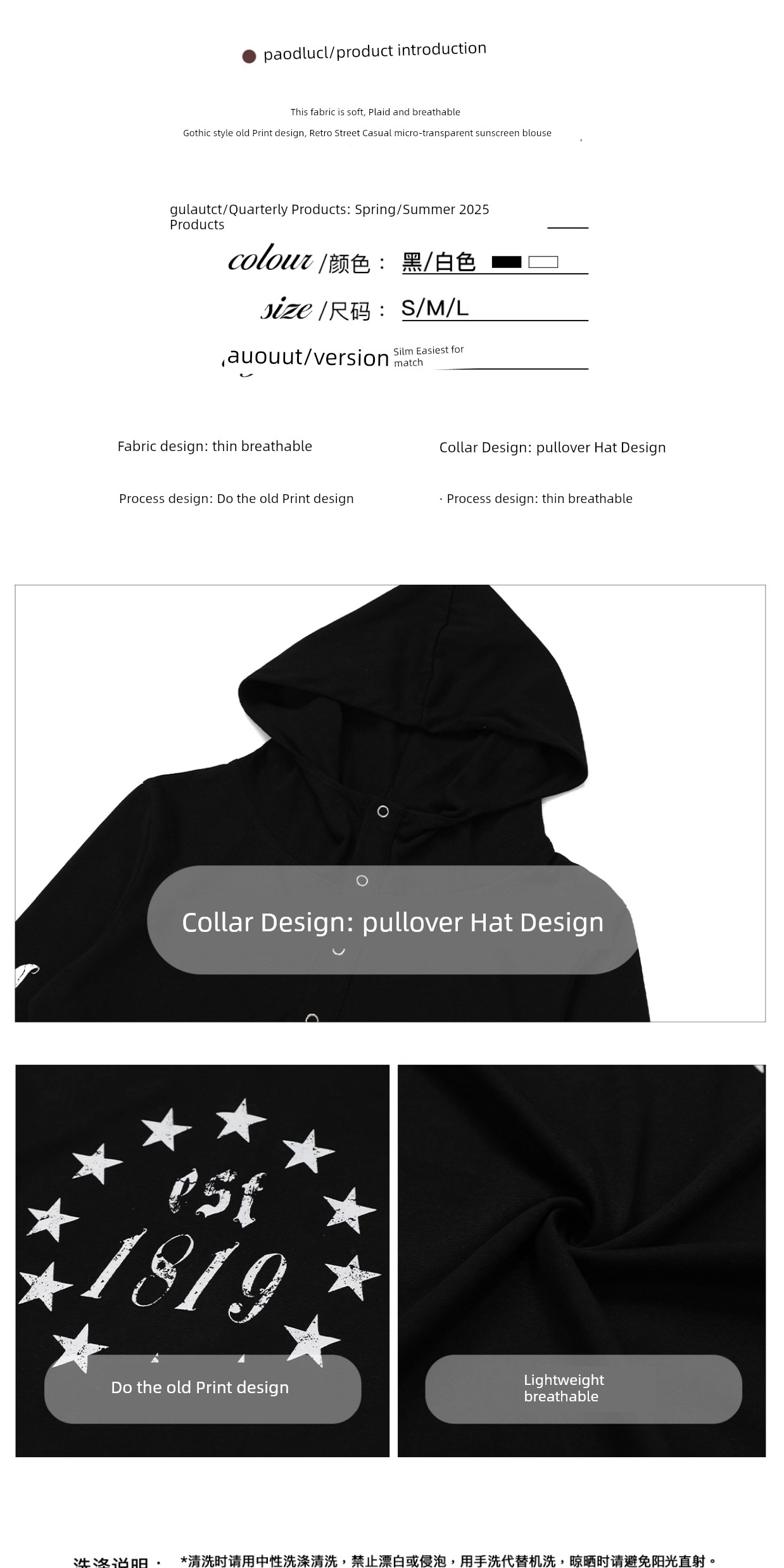 热卖0123start哥特风防晒罩衫女夏季美式朋克长袖连帽t恤修身薄纱上衣